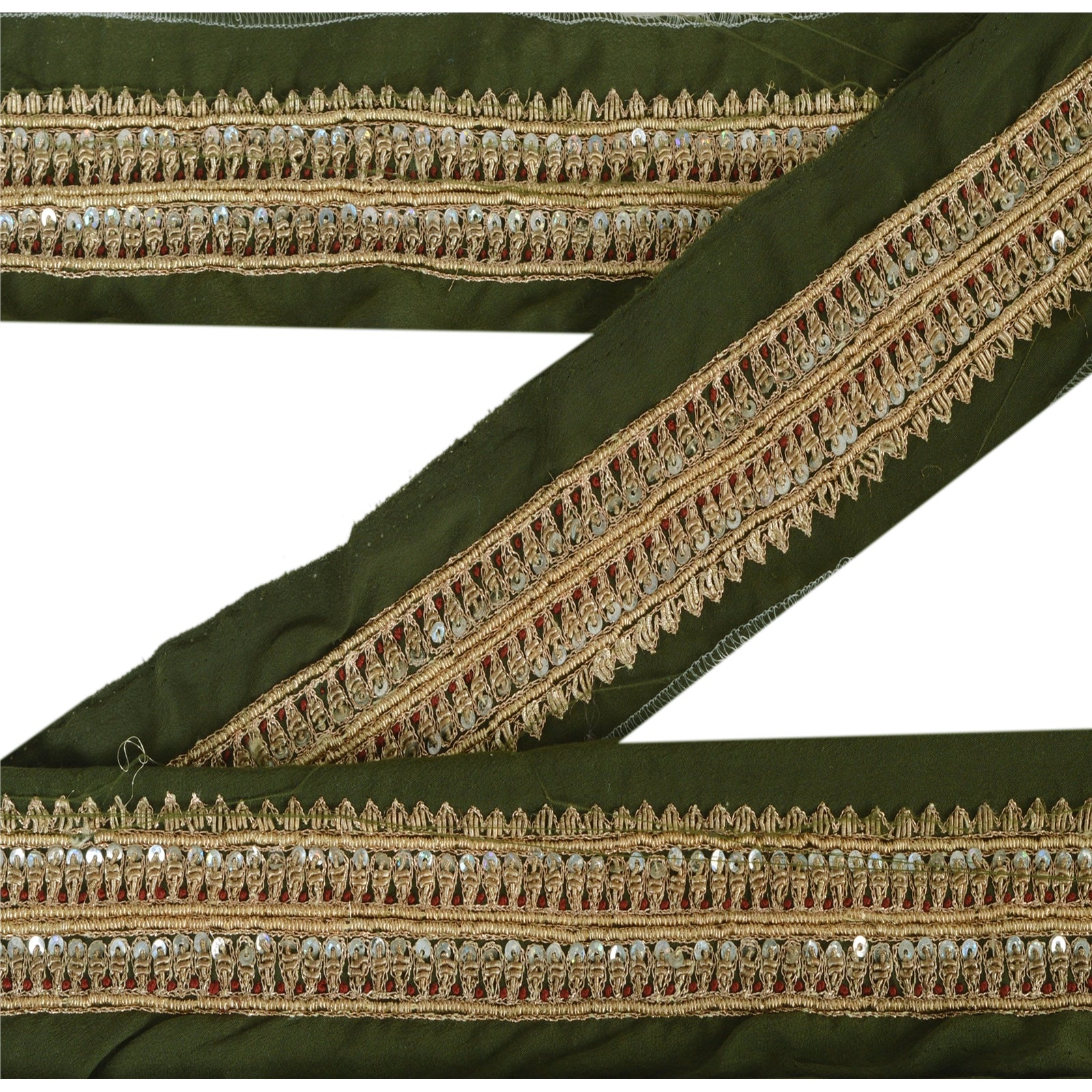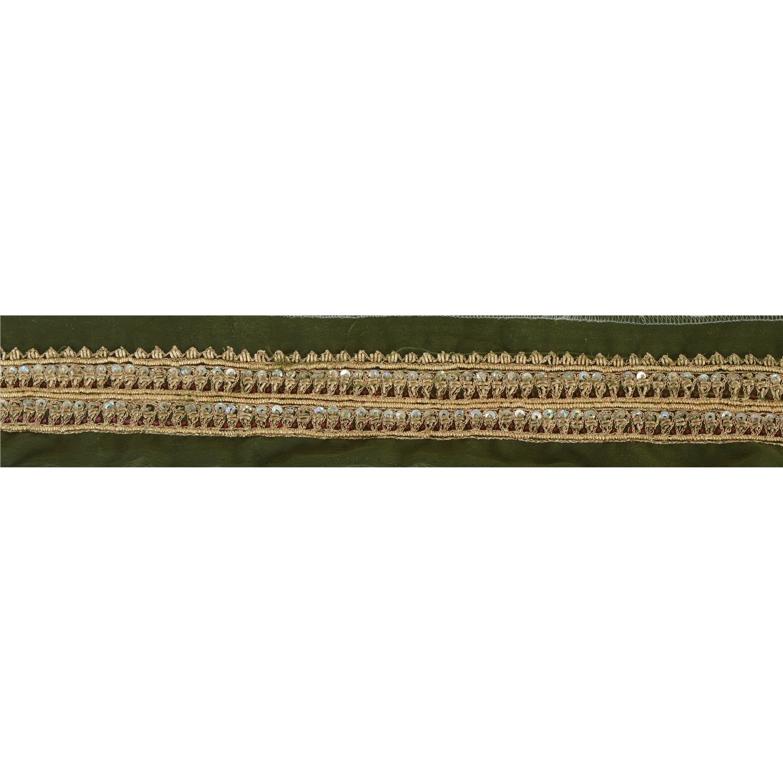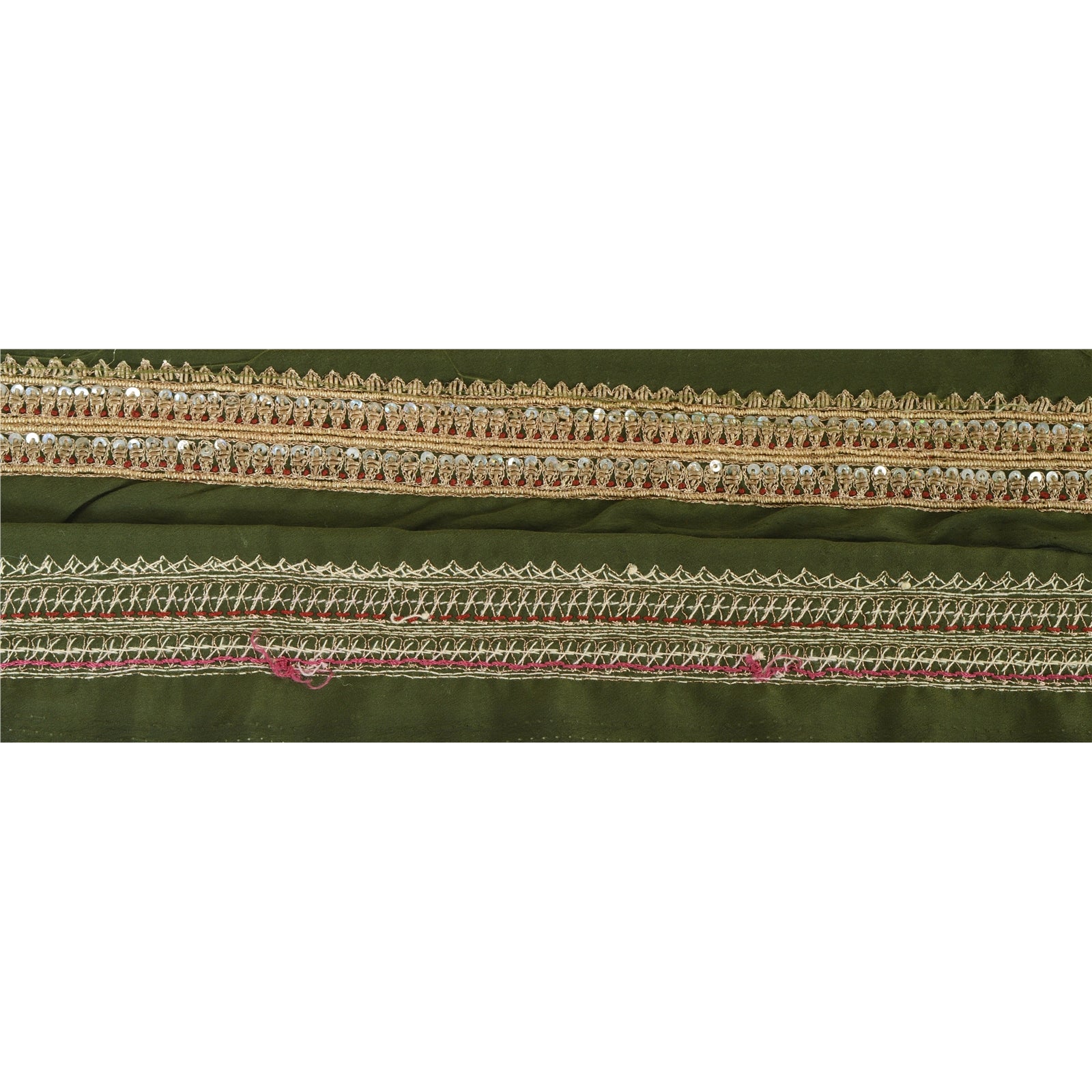 Sanskriti Vintage 1 Yd Sari Border Hand Beaded Craft Trim Ribbon Green Lace