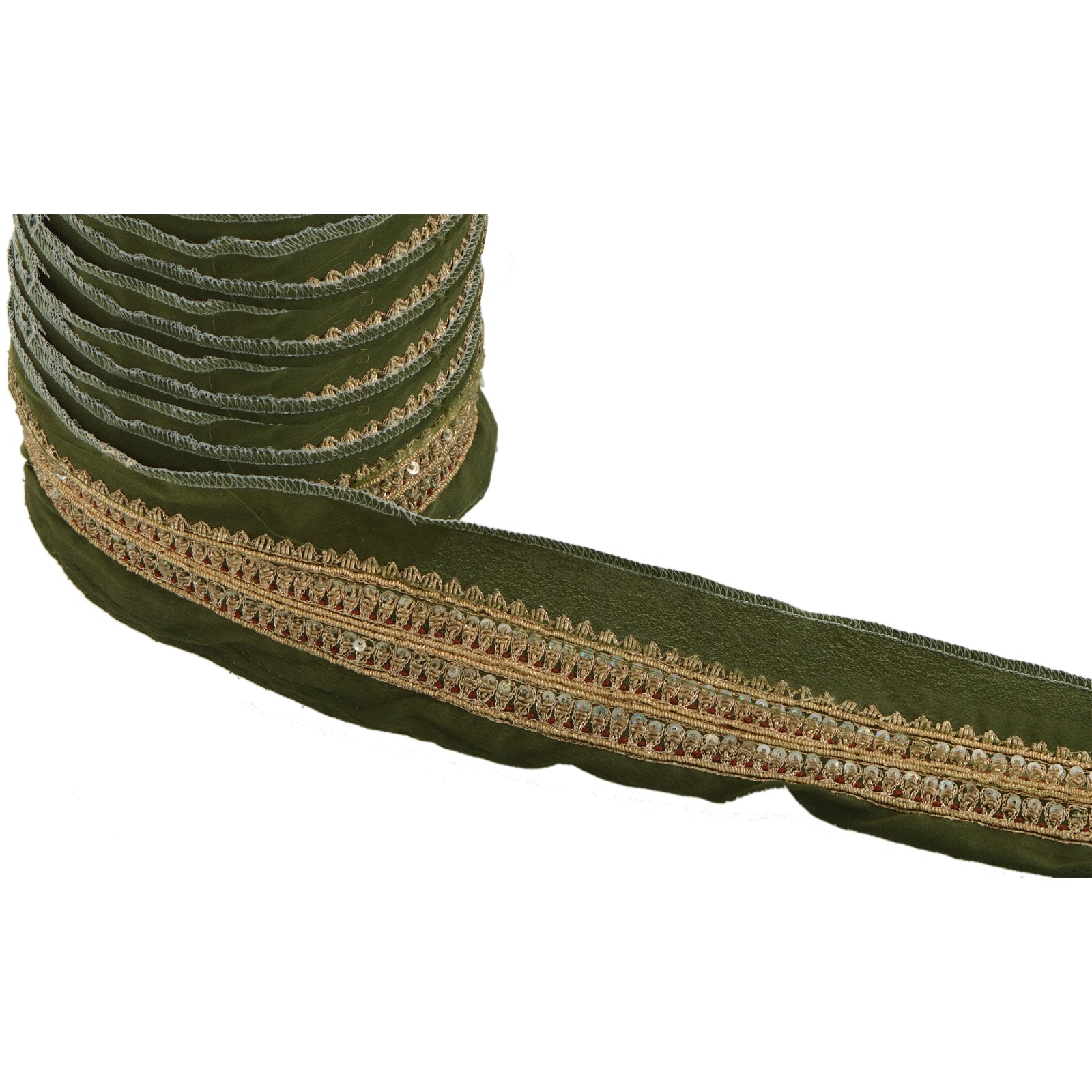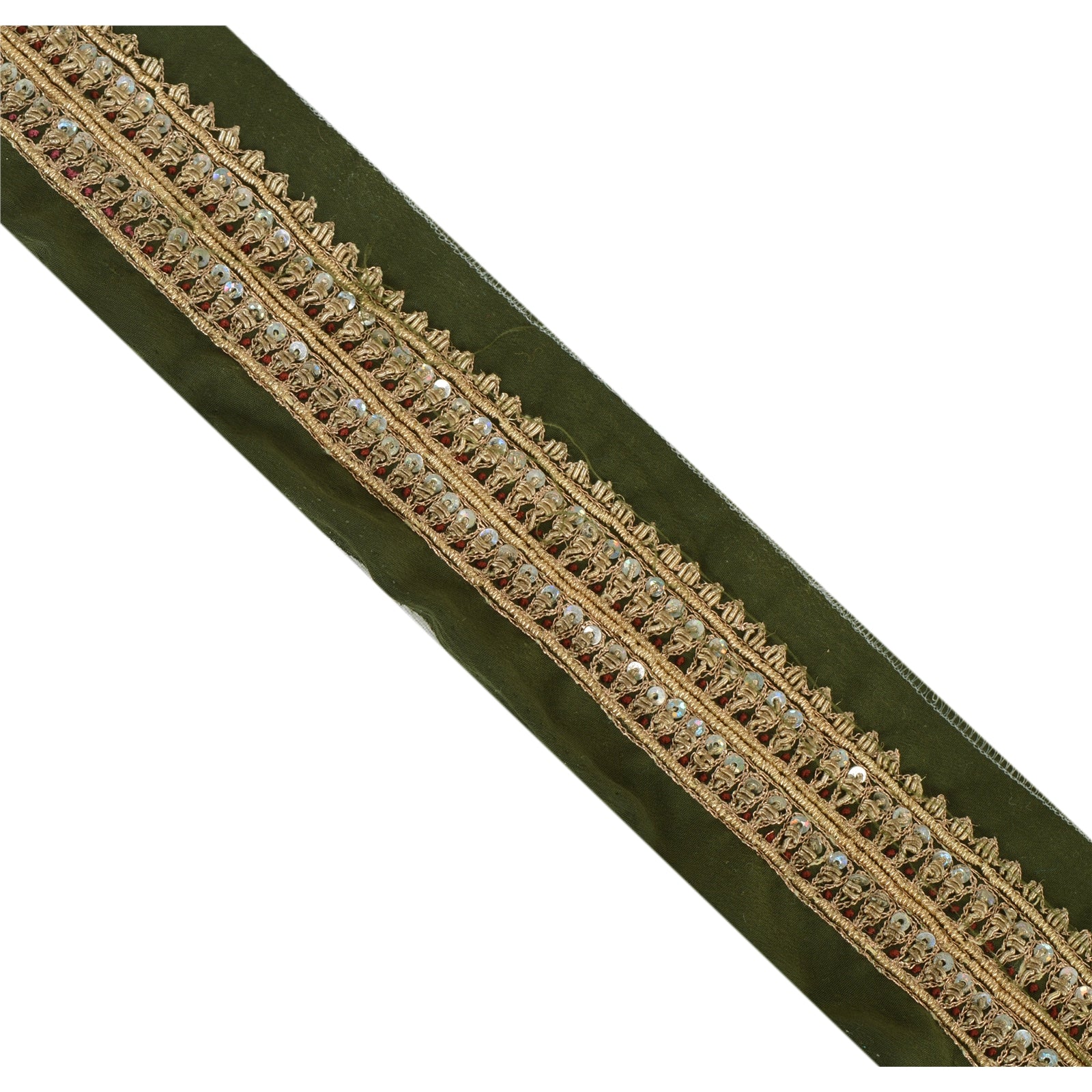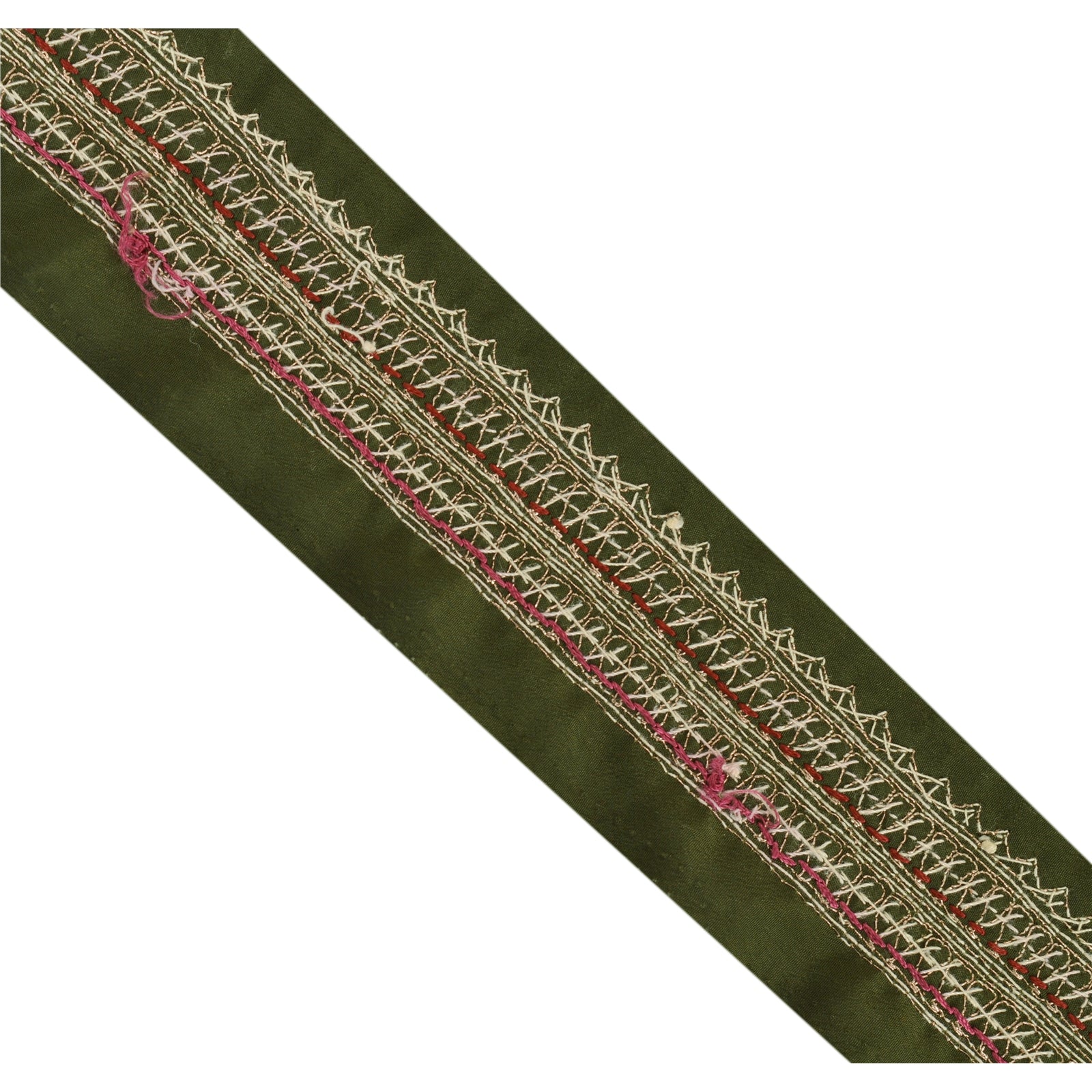 Sanskriti Vintage 1 Yd Sari Border Hand Beaded Craft Trim Ribbon Green Lace