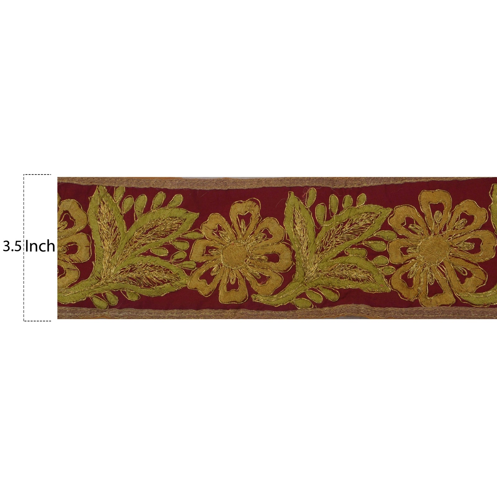 Sanskriti Vintage 1 Yd Sari Border Embroidered Sewing Craft Trims Saffron Lace