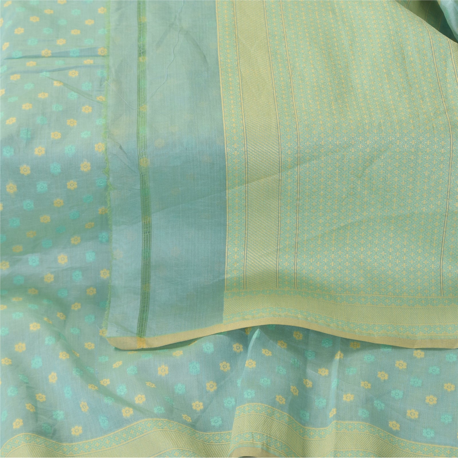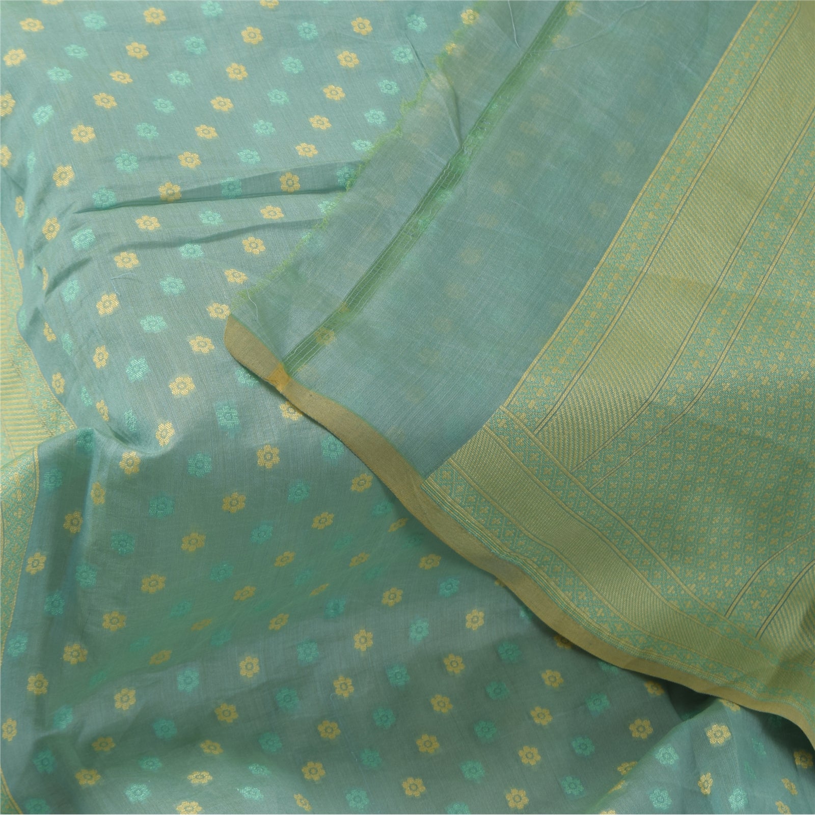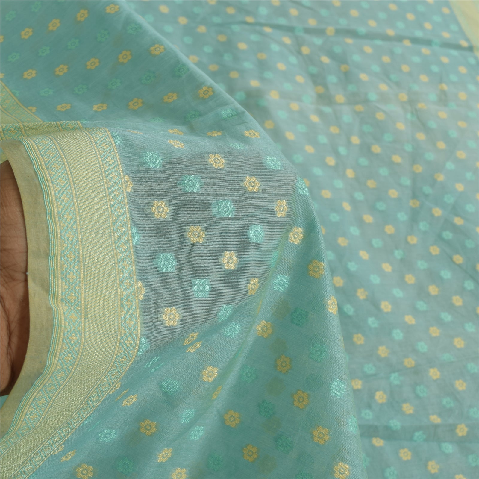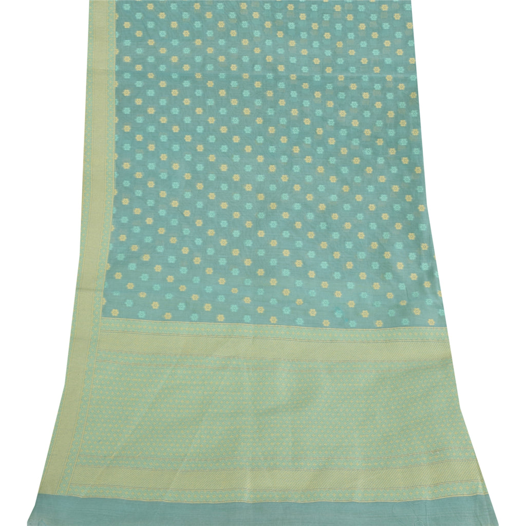 Sanskriti Vintage Aqua Blue Dupatta Long Stole Blend Cotton Woven Premium HIjab