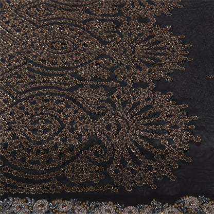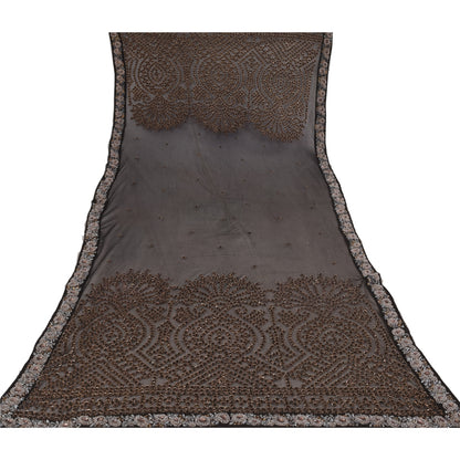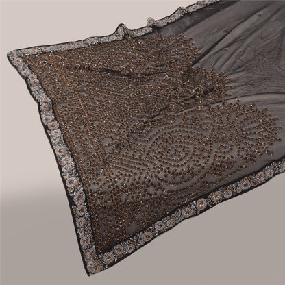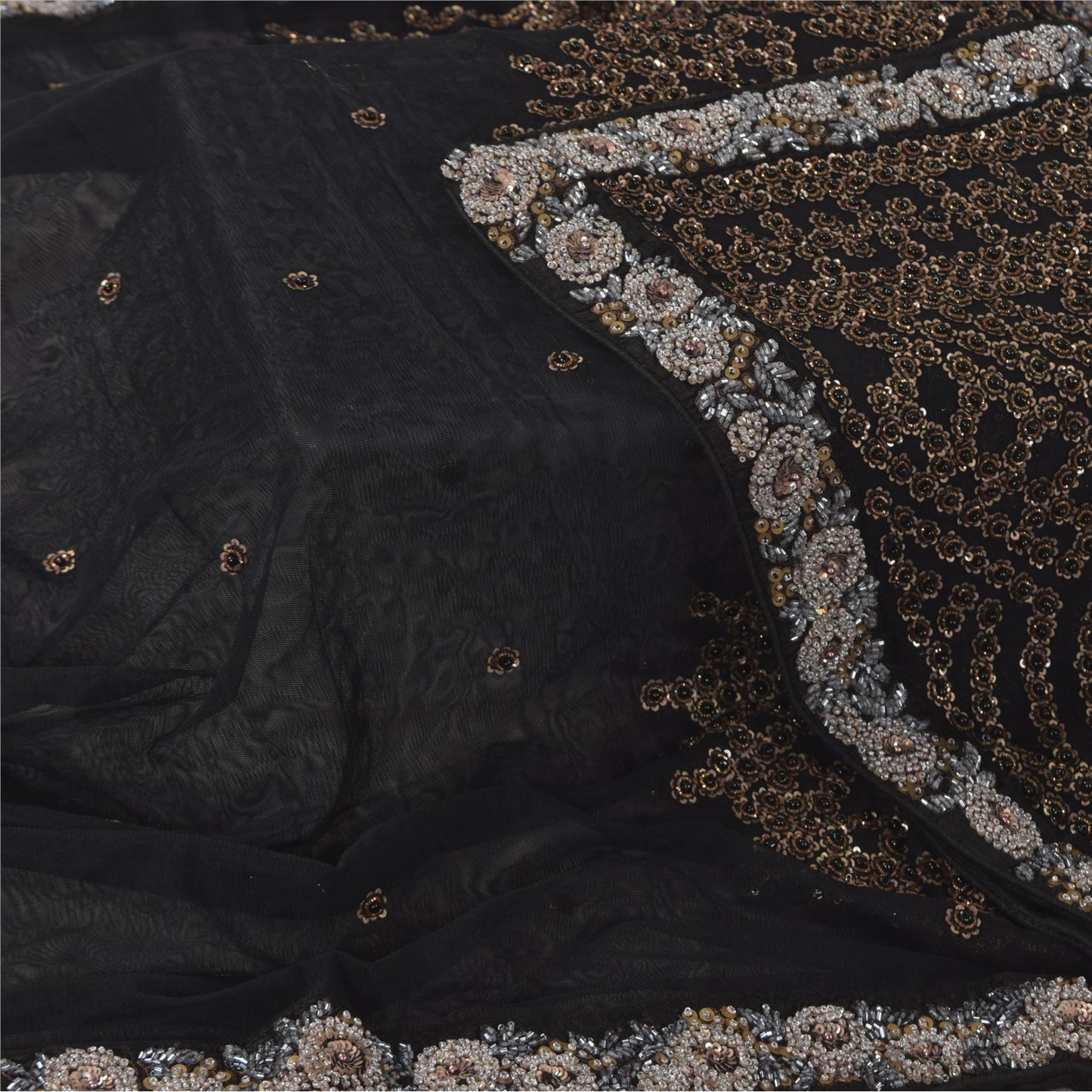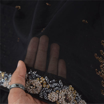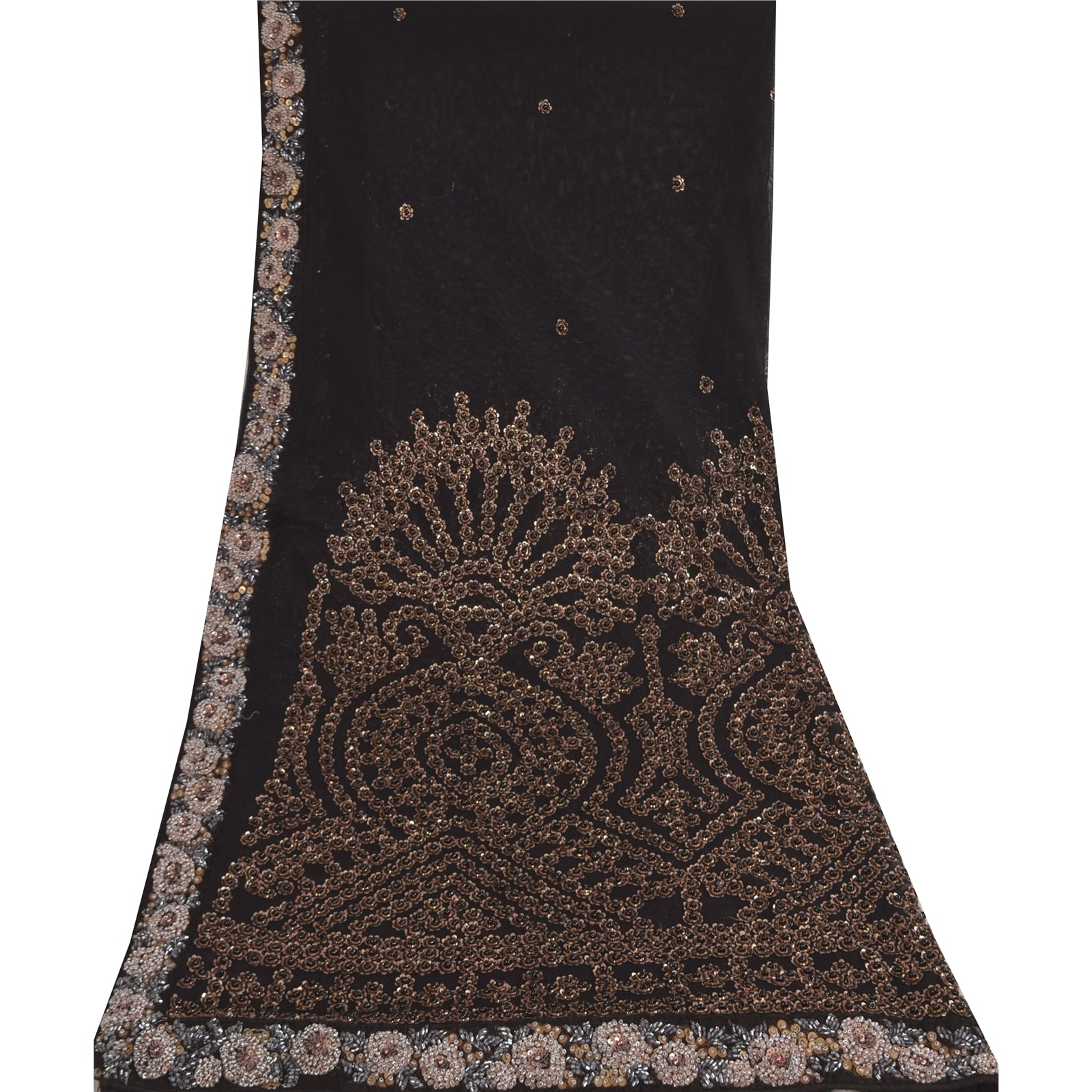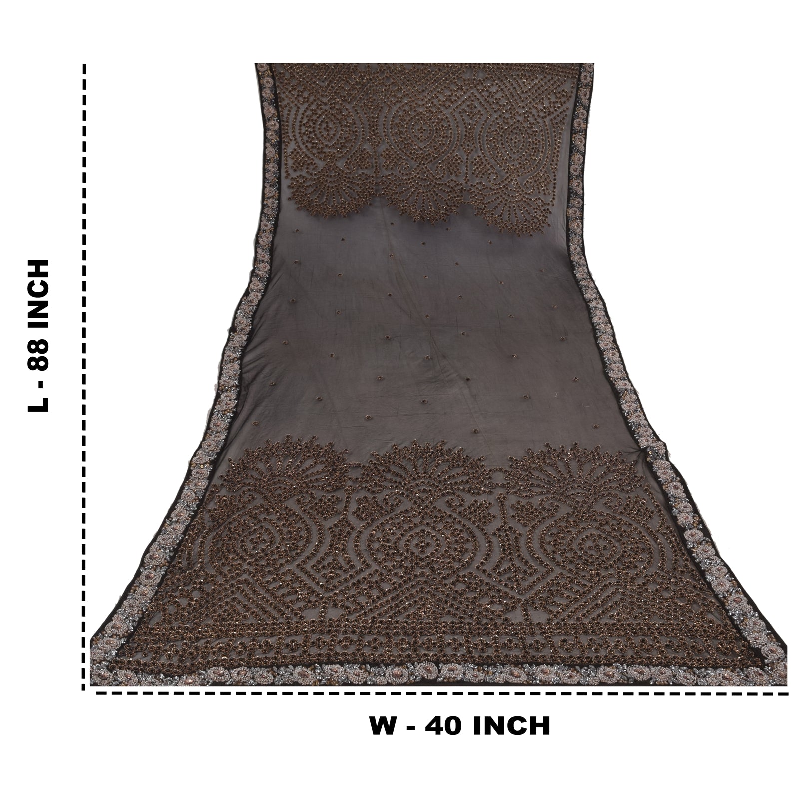 Sanskriti Vintage Black Dupatta Long Stole Net Mesh Hand Beaded Premium Scarves