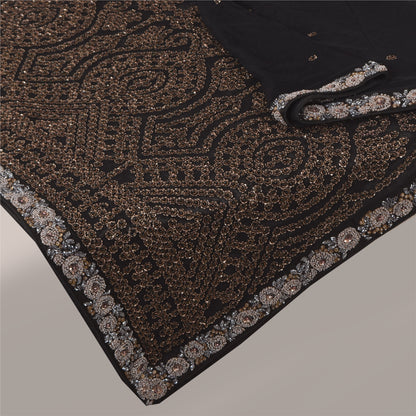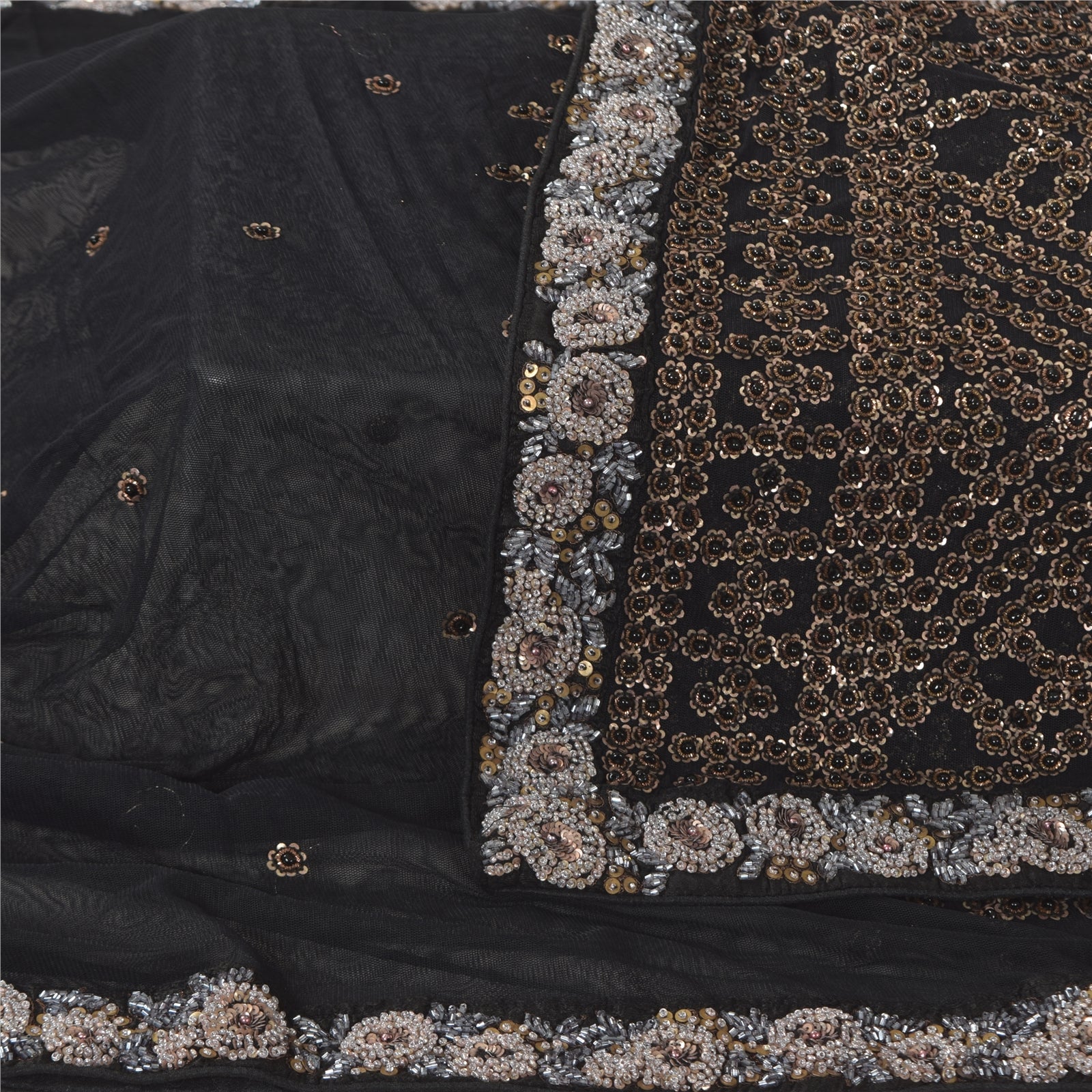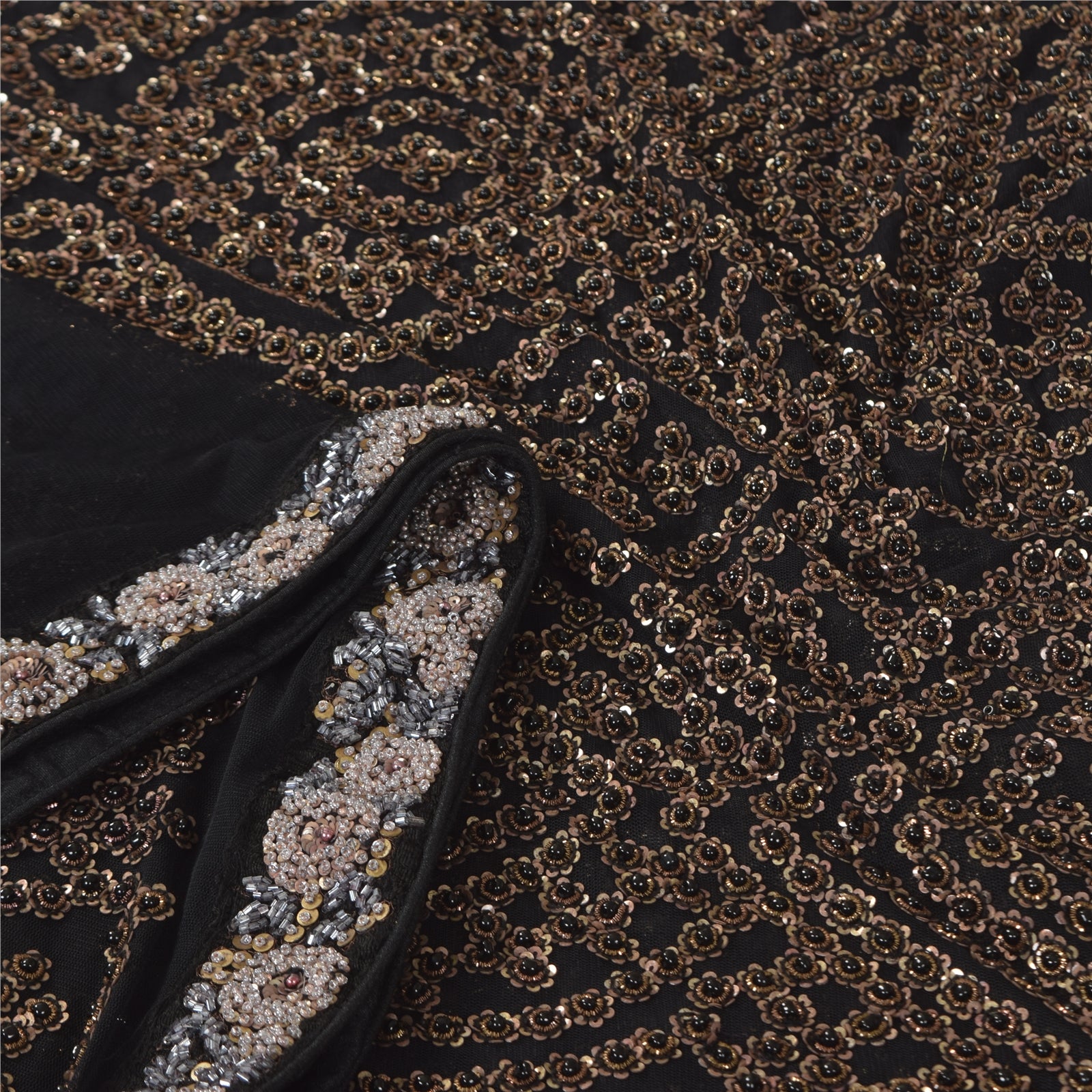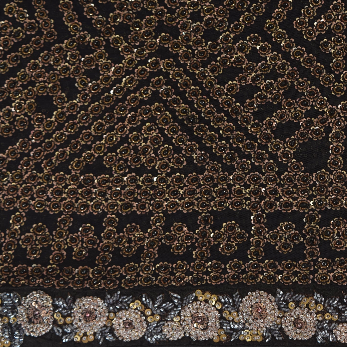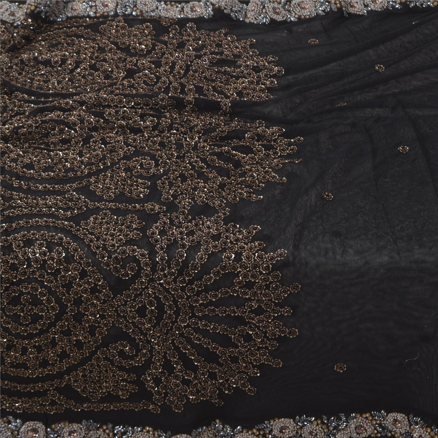 Sanskriti Vintage Black Dupatta Long Stole Net Mesh Hand Beaded Premium Scarves