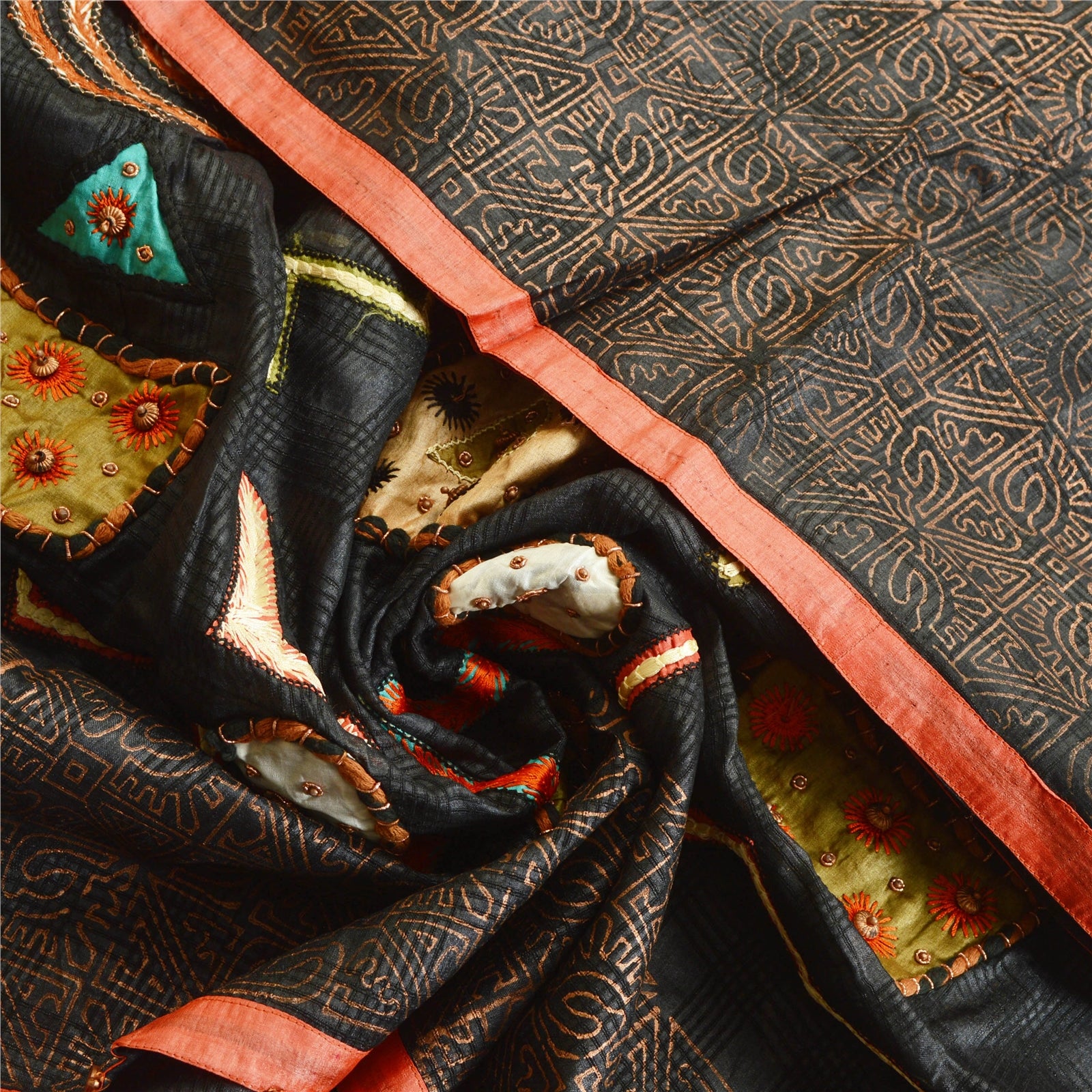'THE ITEM COLOR OR SHADE MAY BE DARKER OR LIGHTER THAN THE PICTURE.' Just see the intricacy of the work. Beautiful hand beaded dupatta with pure multi color fabric patch work. Base fabric is pure silk in black color & multi color fabric patchwork on borders. All patch work are embellished with copper zardozi, brown beads & multi color thread Allover dupatta has floral Also you can see small designs with zardozi work. It has pink fabric patch work & leaf shape copper beads work on borders. Antique piece of art great craftsmanship. 'International buyers please note: Import duties, taxes, and charges are not included in the item price or postage cost. These charges are the buyer's responsibility. Please check with your country's customs office to determine what these additional costs will be prior to bidding or buying. Buyer will pay custom duty/tax. It is calculated and charged differently by every country. As a seller I do not have any control over it. VAT or sales tax is calculated by the platform at the time of checkout. Customs charge is payable at the time of delivery.