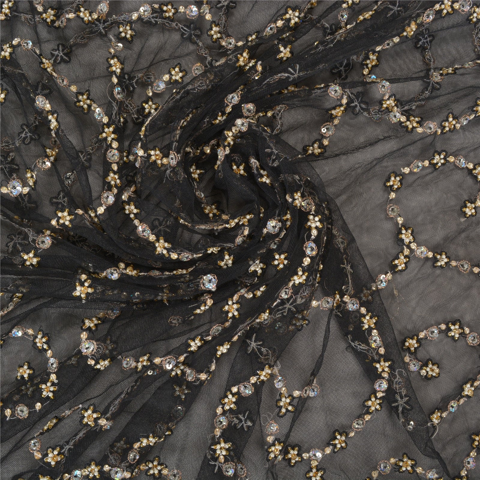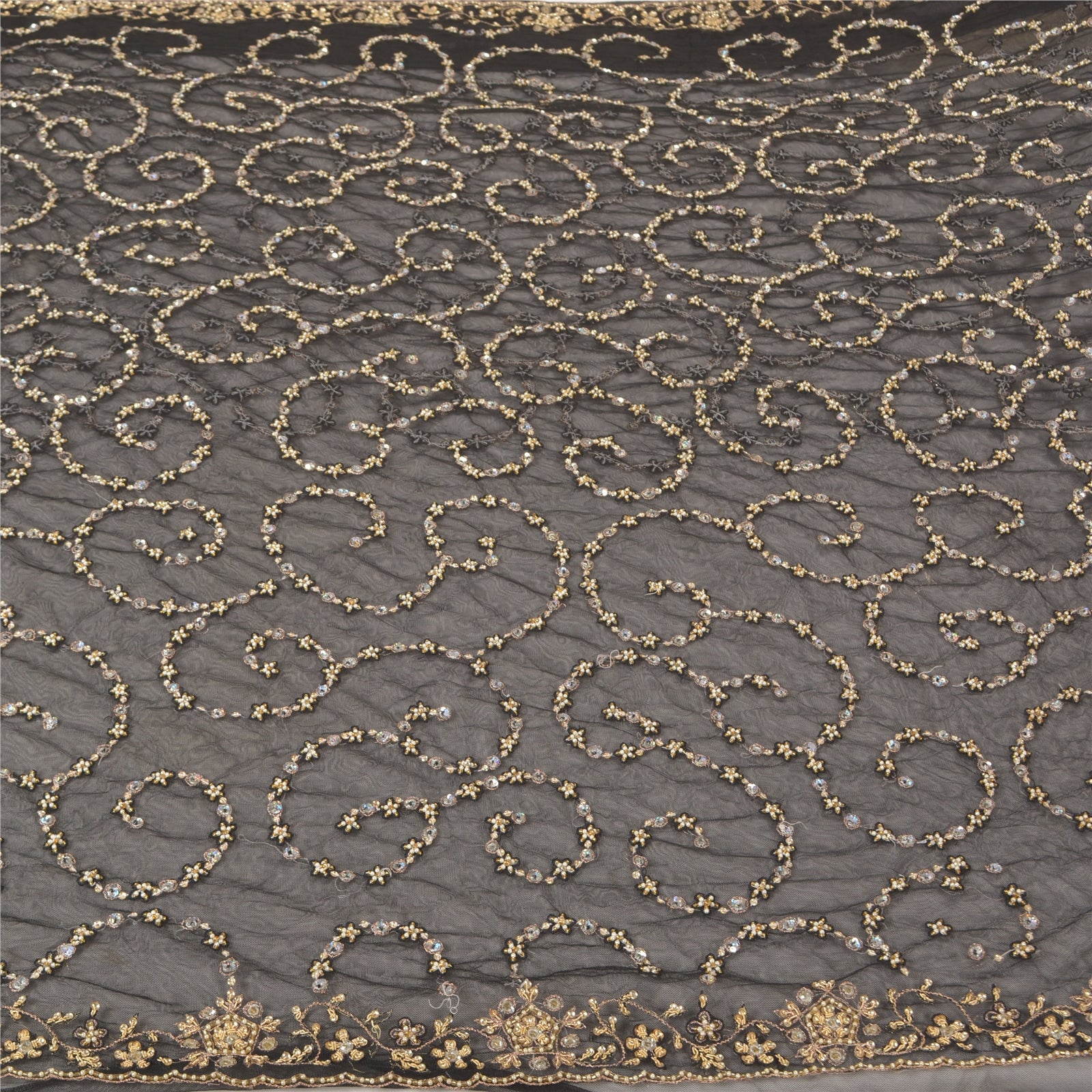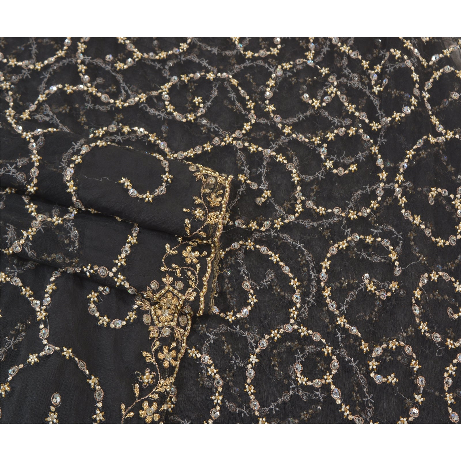 Outstanding black colored net mesh hand embroidered heavy saree. All over sari floral pattern embellished with golden zari/zardozi work, yellow glass beads, cream pearl like beads, silver/golden sequins work. This heavy saree can be used for various crafting ideas too. Use it for dress designing, as a throw, as window dressing, upholstery, table linen and much more. Let your creative juices flow! 'International buyers please note: Import duties, taxes, and charges are not included in the item price or postage cost. These charges are the buyer's responsibility. Please check with your country's customs office to determine what these additional costs will be prior to bidding or buying. Buyer will pay custom duty/tax. It is calculated and charged differently by every country. As a seller I do not have any control over it. VAT or sales tax is calculated by the platform at the time of checkout. Customs charge is payable at the time of delivery.'