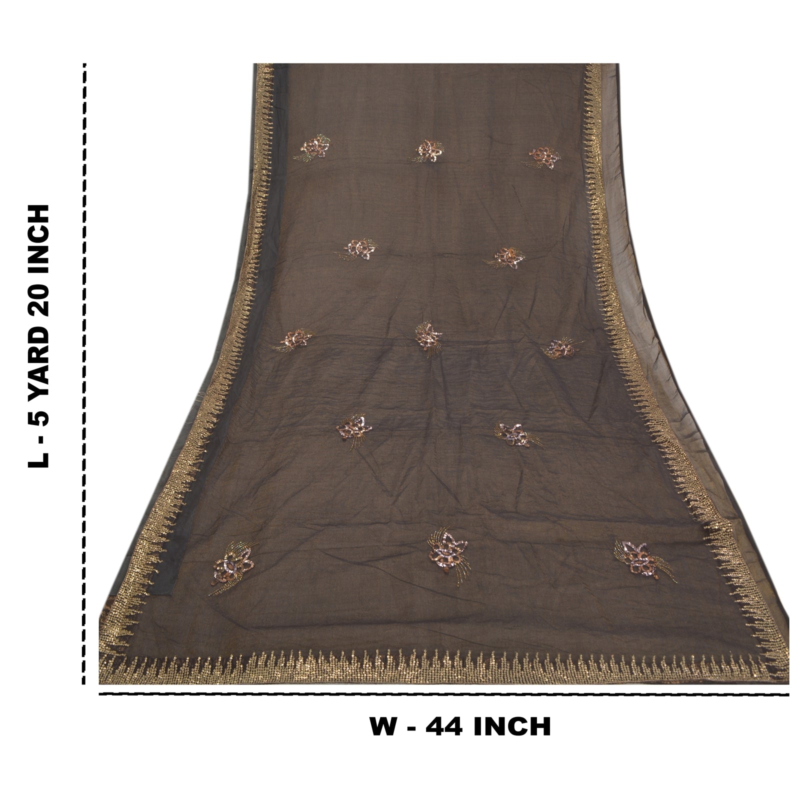 Sanskriti Vintage Black Sarees Net Mesh Black Handmade Mukesh Work Sari Sustainable Fabric
