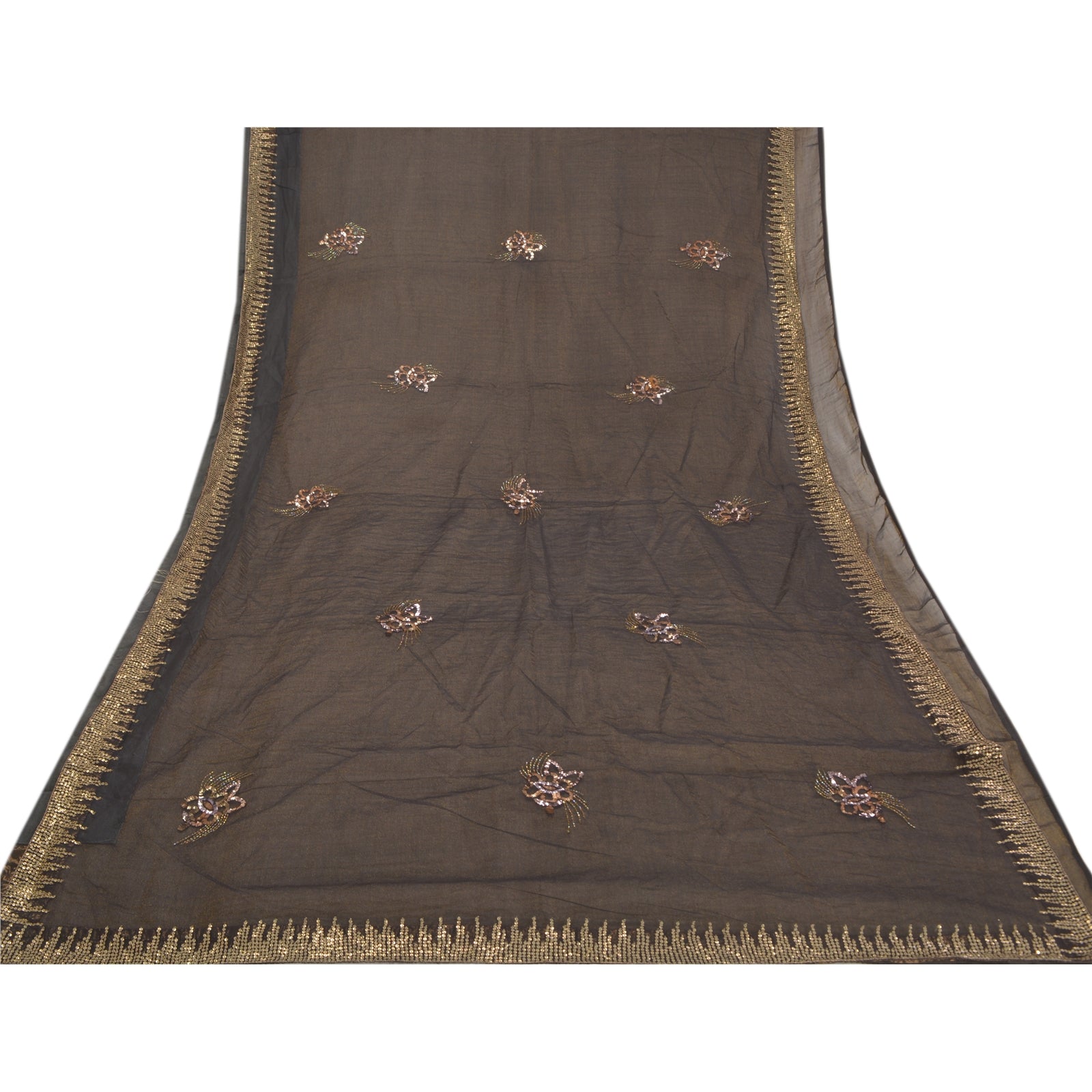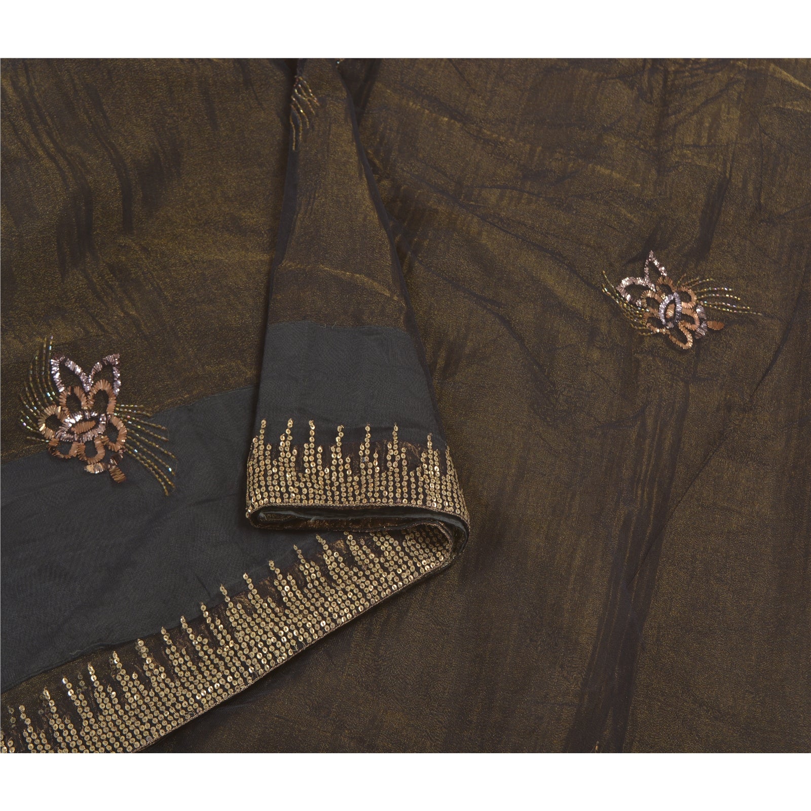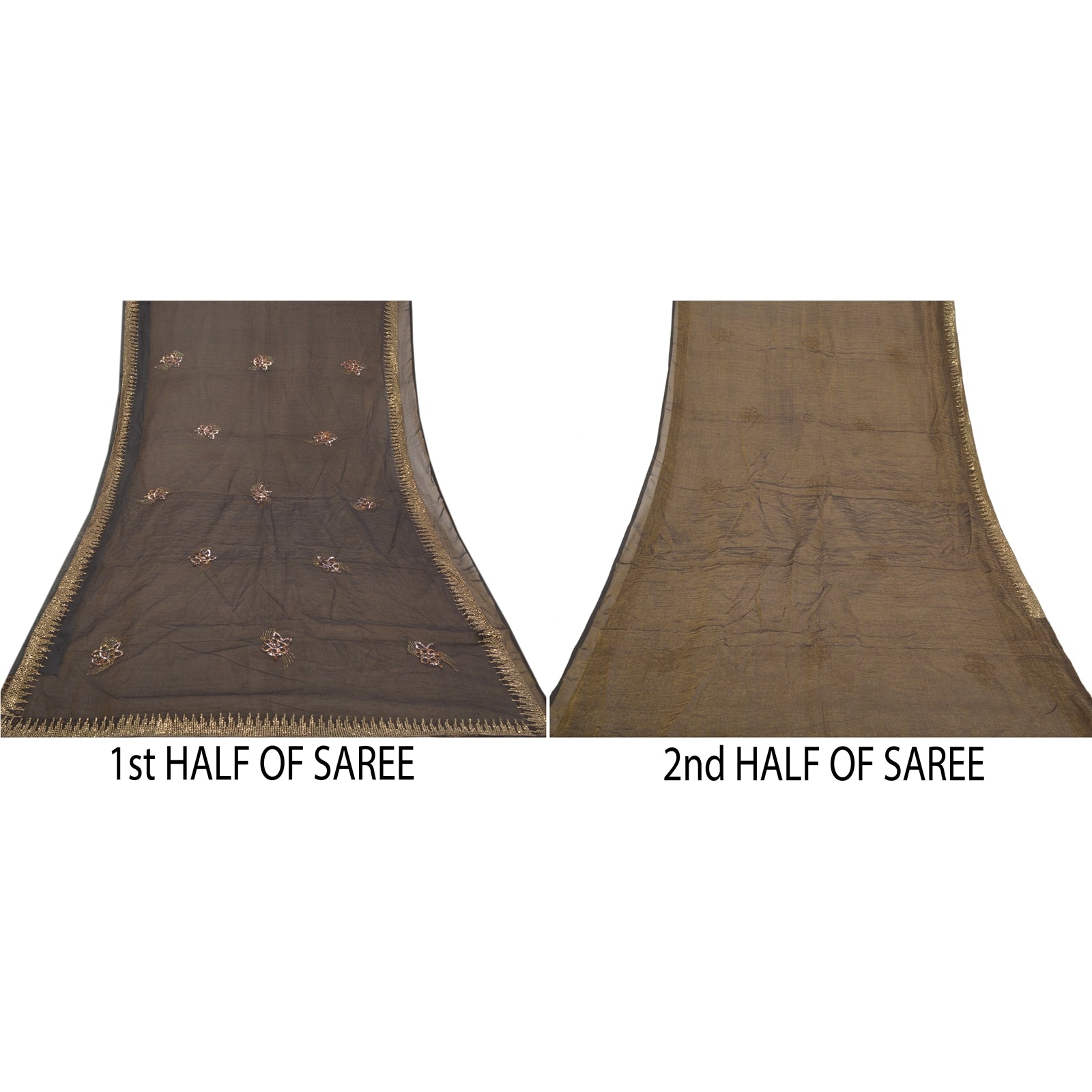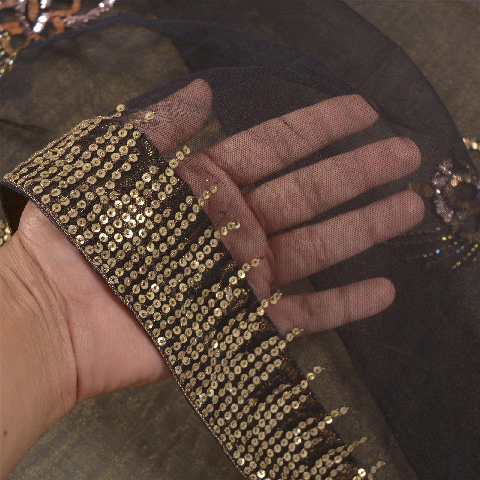Beautiful Black & Golden Colored Net Mesh & 100% Pure Silk Hand Embroidered Sari. This sari divided into two parts. First part base Sustainable Fabric is net which is embellished with golden sequins & mukesh work. And you can see second part of this sari has 100% pure silk plain golden Sustainable Fabric.. This saree can be used for various crafting ideas too. Use it for dress designing, as a throw, as window dressing, upholstery, table linen and much more. Let your creative juices flow. For USA buyers - Single item ships via registered air mail, buy 1 more to get FedEx.
