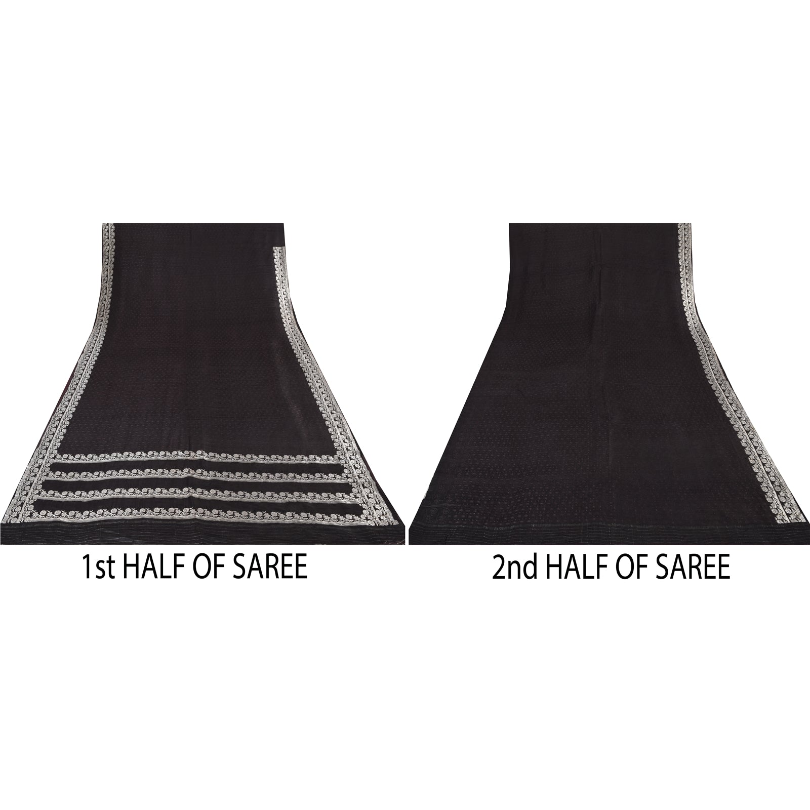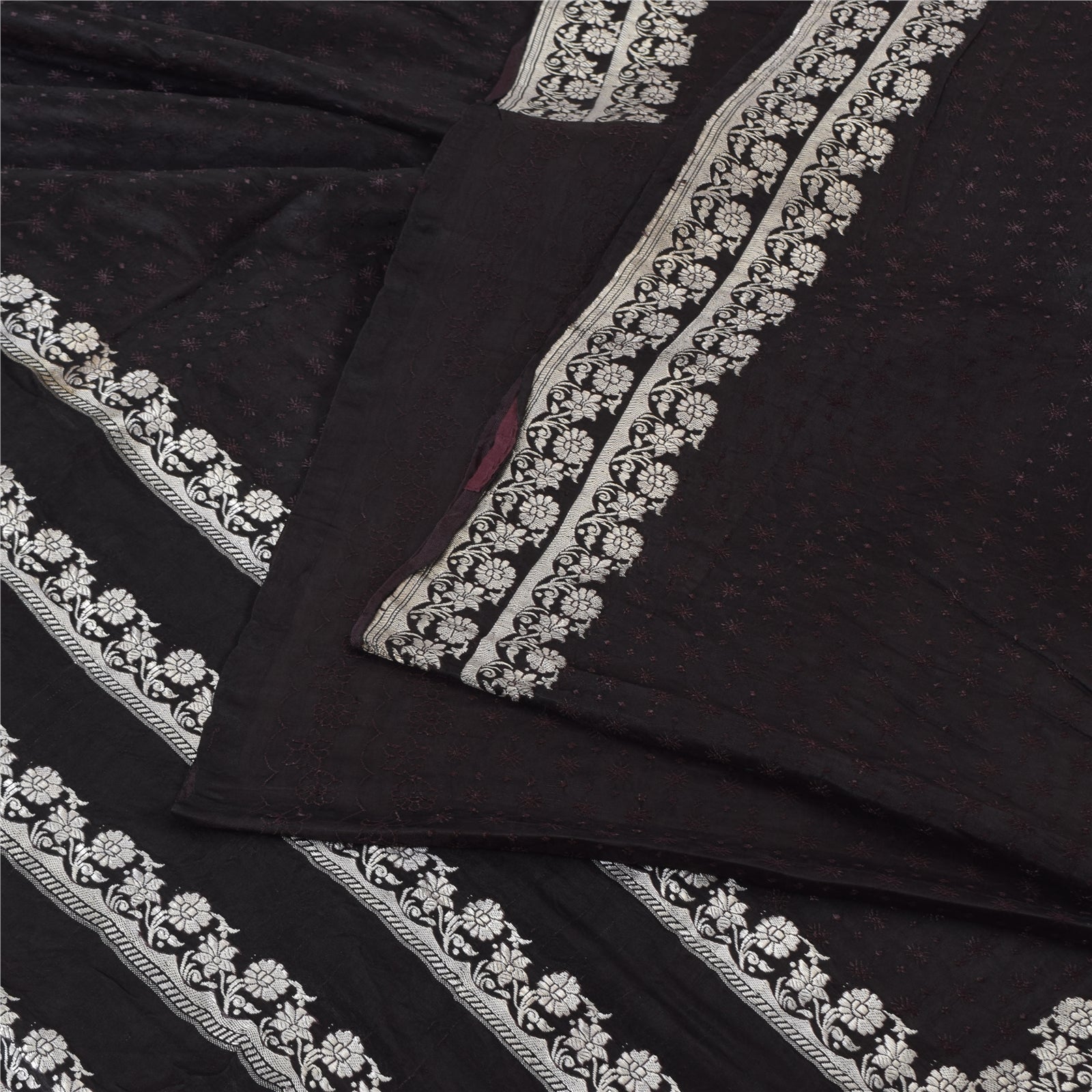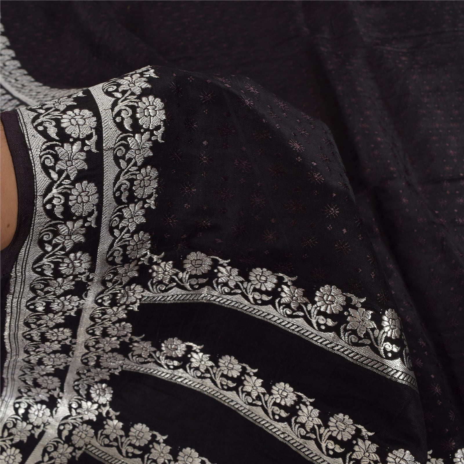 THE ITEM COLOR OR SHADE MAY BE DARKER OR LIGHTER THAN THE PICTURE.' An Awesome Sari In 100% Pure Satin Silk Black Colored Brocade Banarasi Sari/Sustainable Fabric. Pallu & Border Features floral design embellished with metallic silver zari work. You Can See Center Portion Of The Sari Has Similar Work With Floral Design This unique vintage saree can be used for various crafting ideas for example design a dress, use it as a throw, as window dressing, upholstery, table linen and much more. Let your creative juices flow and use this decorated Sustainable Fabric in multiple fashion Shipping note: International buyers please note: Import duties, taxes, and charges are not included in the item price or postage cost. These charges are the buyer's responsibility. Please check with your country's customs office to determine what these additional costs will be prior to bidding or buying. Buyer will pay custom duty/tax. It is calculated and charged differently by every country. As a seller I do not have any control over it. VAT or sales tax is calculated by the platform at the time of checkout. Customs charge is payable at the time of delivery. SKU: BHS-2686