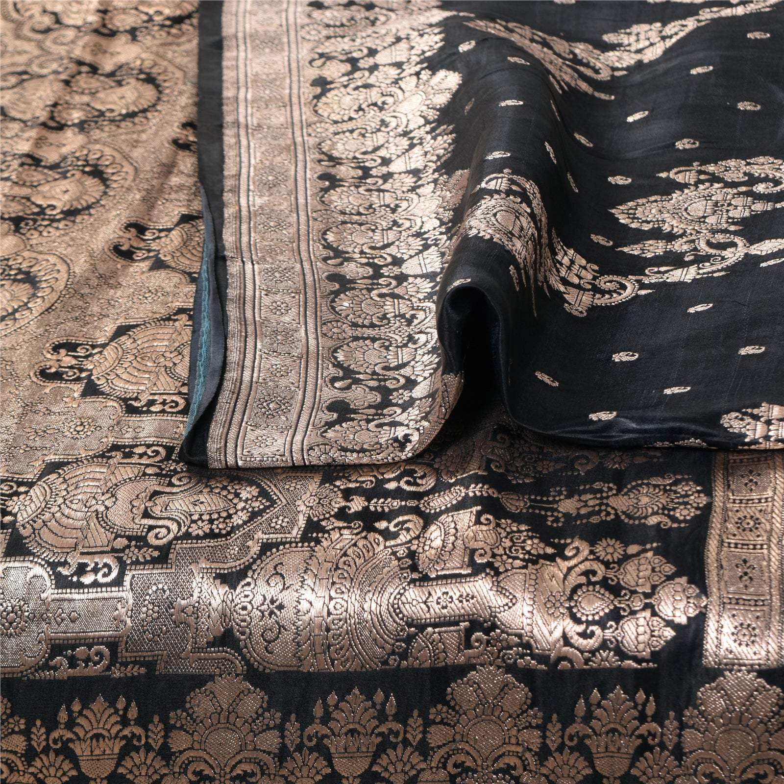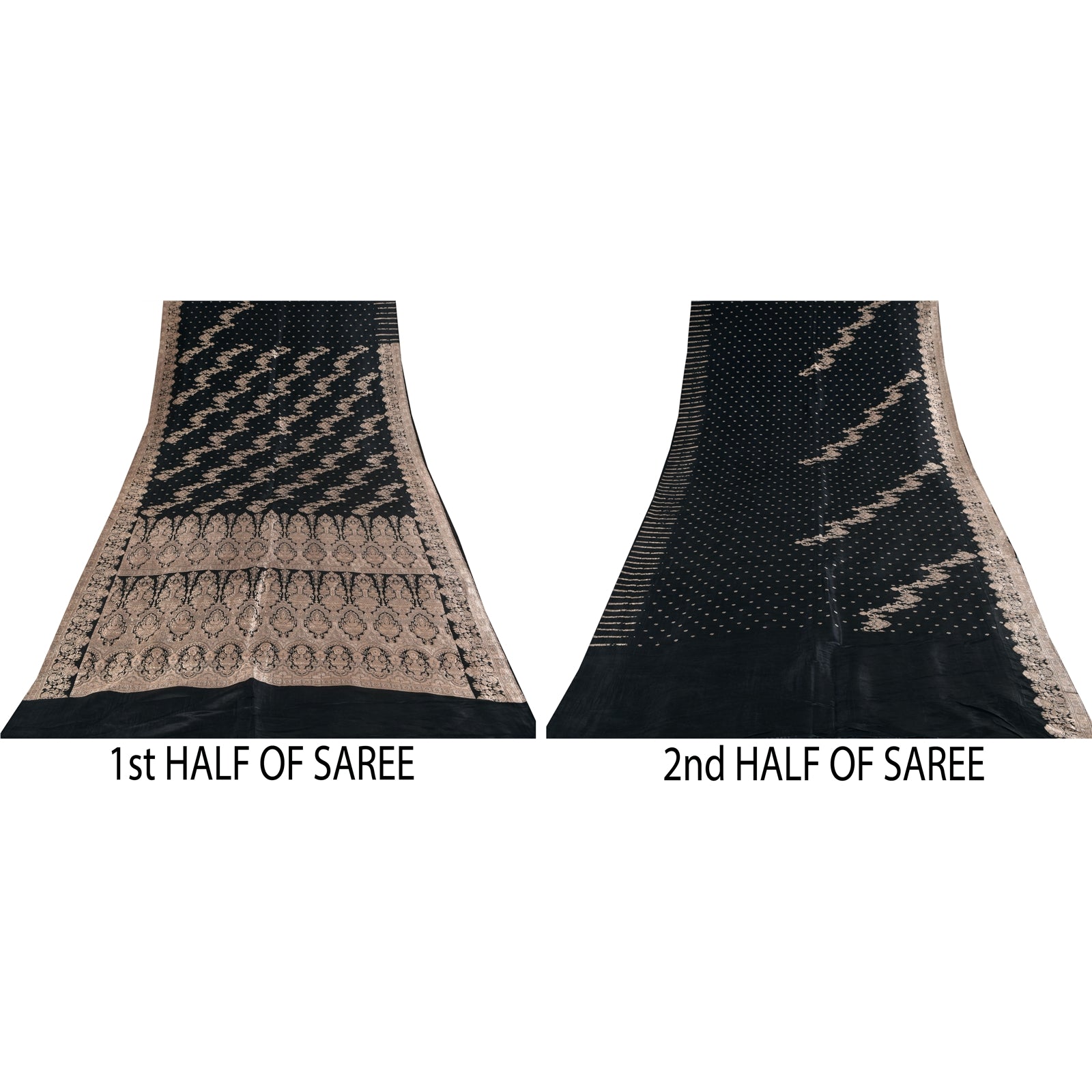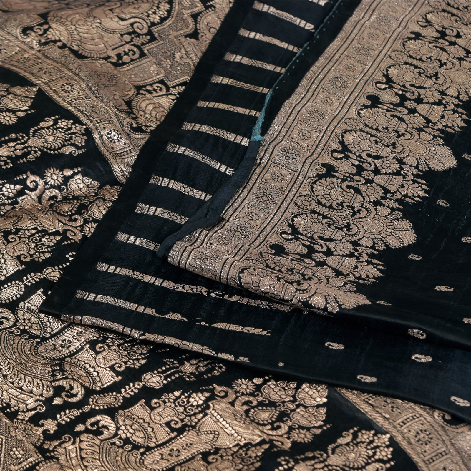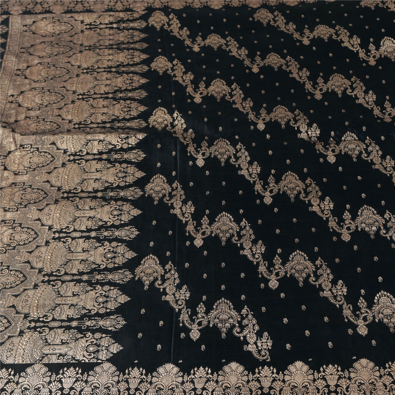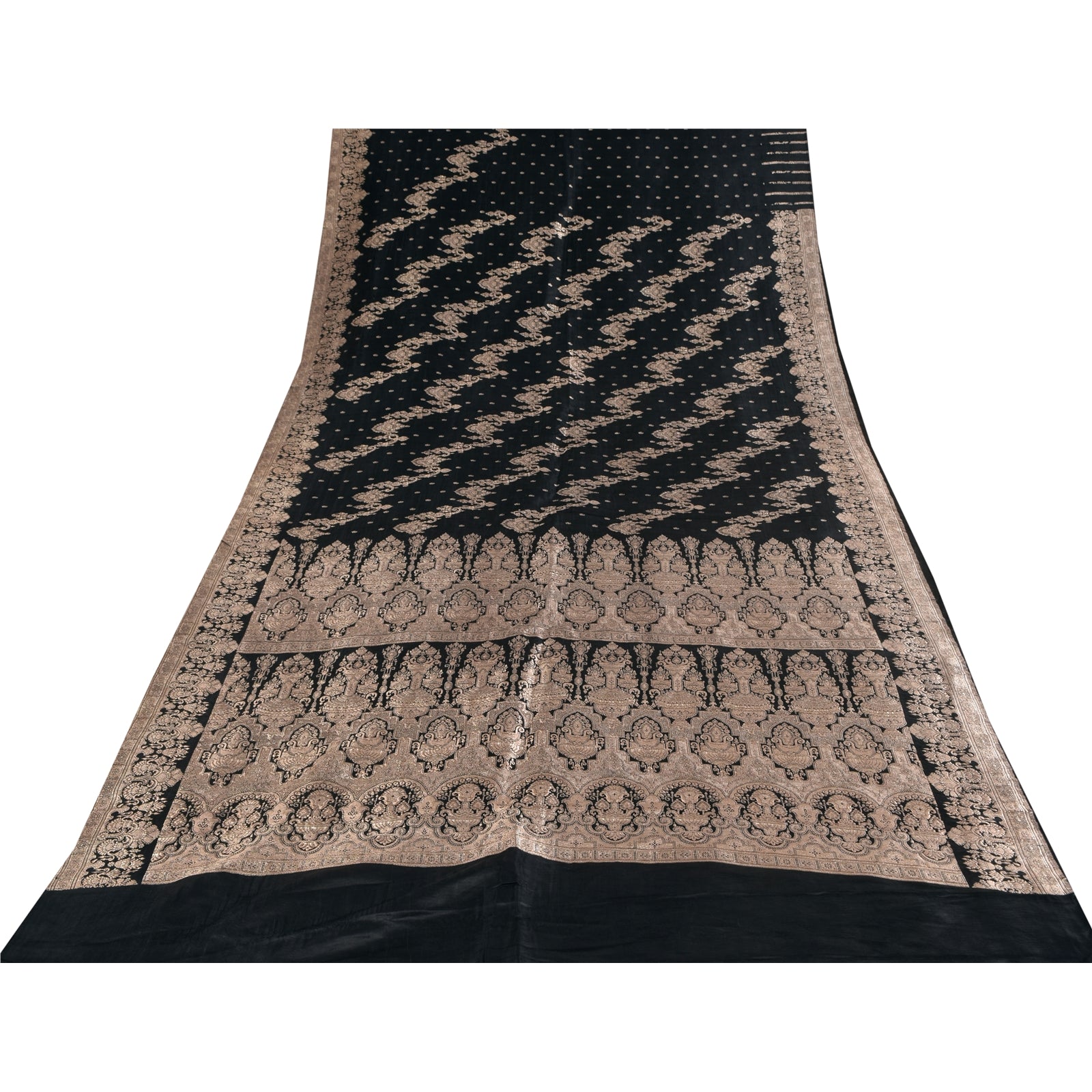 Sanskriti Vintage Black Sarees Pure Satin Silk Banarasi Brocade Zari Woven Sari Craft Sustainable Fabric