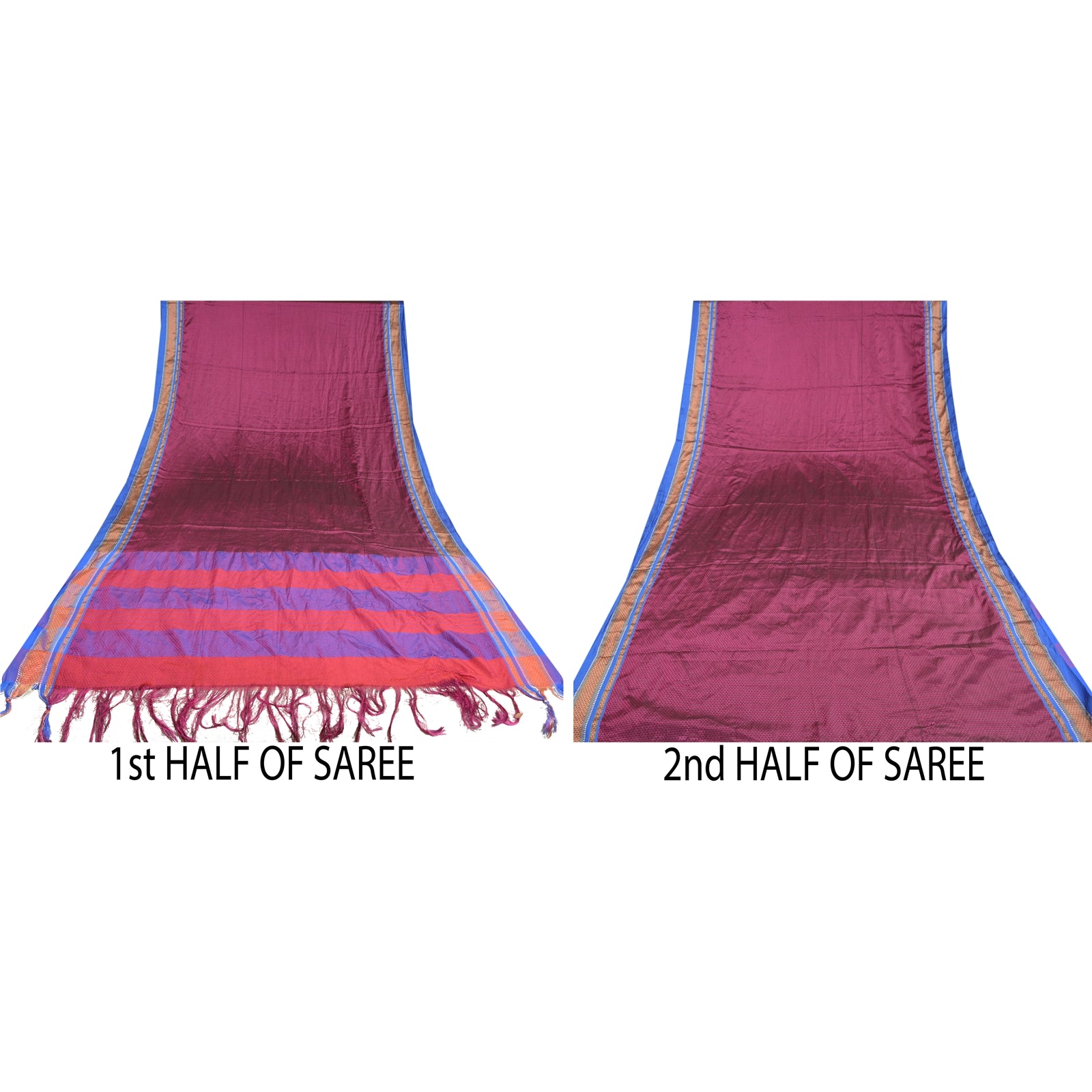 'THE ITEM COLOR OR SHADE MAY BE DARKER OR LIGHTER THAN THE PICTURE.' Beautiful purple & blue colored art (artificial) silk woven sari. Pallu & border has woven thread work with zig- zag design. You can see matching fringes on pallu. The center of the saree has woven thread work. This saree can be used for various crafting ideas too. Use it for dress designing, as a throw, as window dressing, upholstery, table linen and much more. Let your creative juices flow. 'International buyers please note: Import duties, taxes, and charges are not included in the item price or postage cost. These charges are the buyer's responsibility. Please check with your country's customs office to determine what these additional costs will be prior to bidding or buying. Buyer will pay custom duty/tax. It is calculated and charged differently by every country. As a seller I do not have any control over it. VAT or sales tax is calculated by the platform at the time of checkout. Customs charge is payable at the time of delivery.'