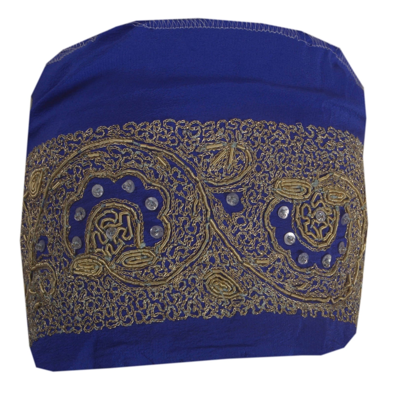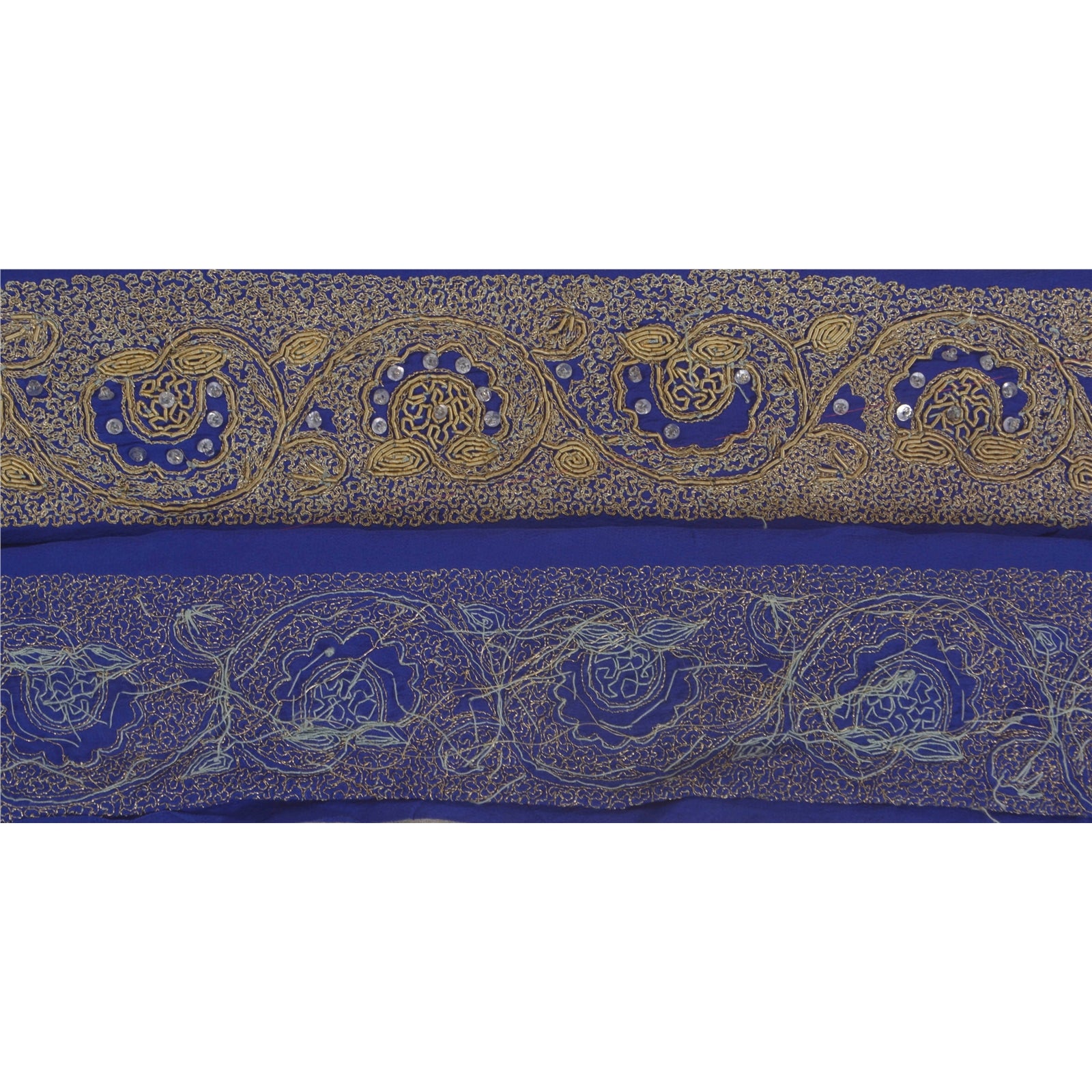 Sanskriti Vintage Blue Sari Border Hand Beaded Indian Craft Trim 1 Yd Lace