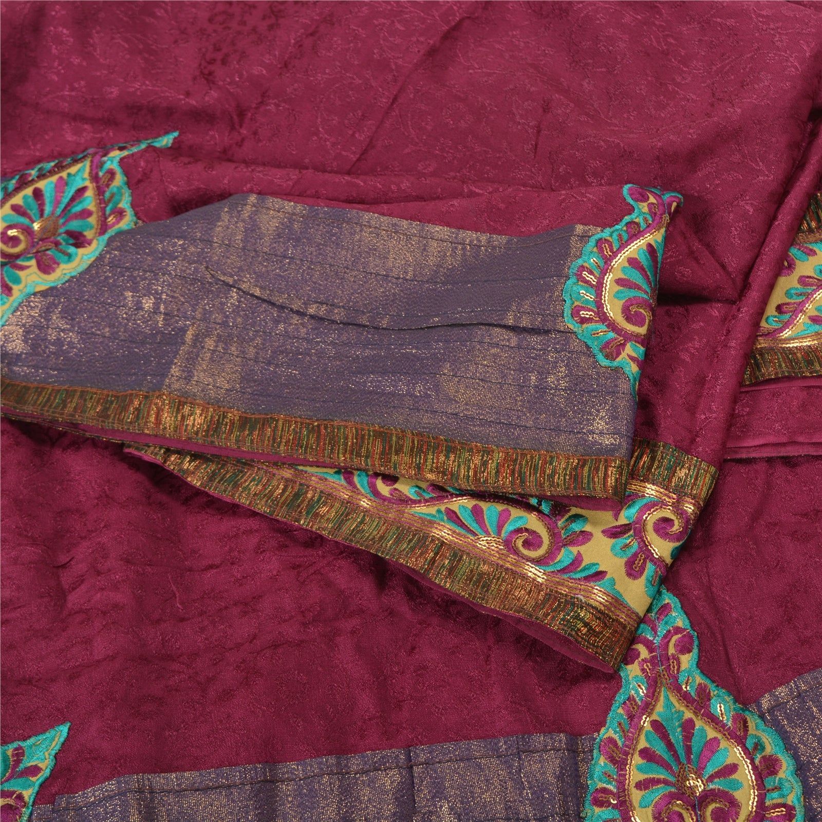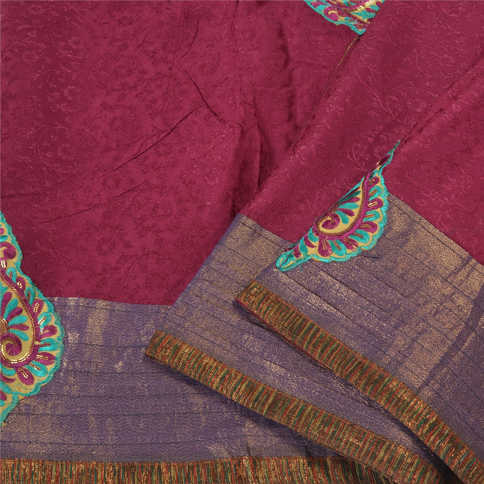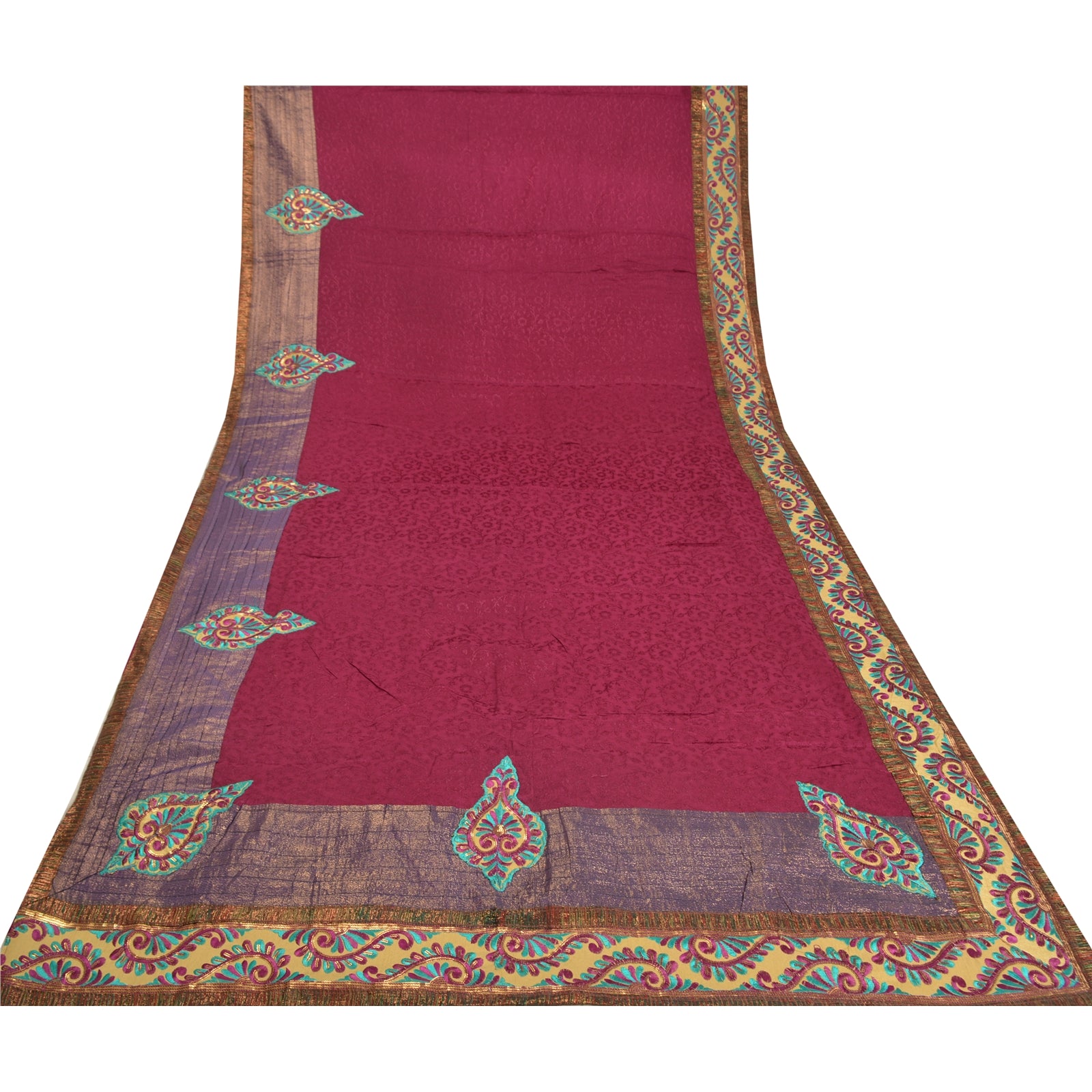 'THE ITEM COLOR OR SHADE MAY BE DARKER OR LIGHTER THAN THE PICTURE.' Beautiful purple colored pure georgette embroidered sari/Sustainable Fabric. Pallu & border features multi color Sustainable Fabric patch work embroidered with thread & sequins work in floral design. The center of the saree has purple woven floral design. This saree can be used for various crafting ideas too. Use it for dress designing, as a throw, as window dressing, upholstery, table linen and much more. Let your creative juices flow. 'International buyers please note: Import duties, taxes, and charges are not included in the item price or postage cost. These charges are the buyer's responsibility. Please check with your country's customs office to determine what these additional costs will be prior to bidding or buying. Buyer will pay custom duty/tax. It is calculated and charged differently by every country. As a seller I do not have any control over it. VAT or sales tax is calculated by the platform at the time of checkout. Customs charge is payable at the time of delivery.'