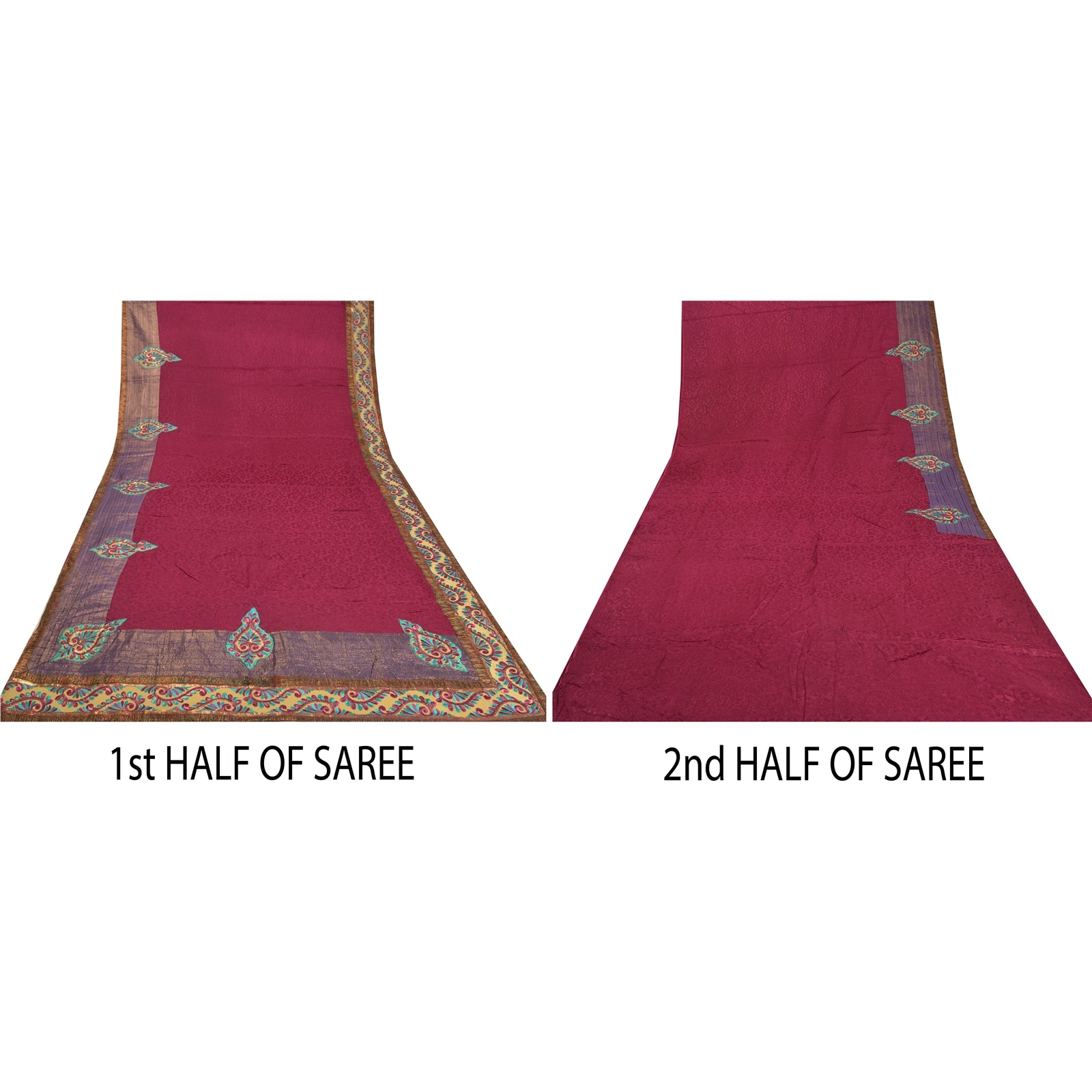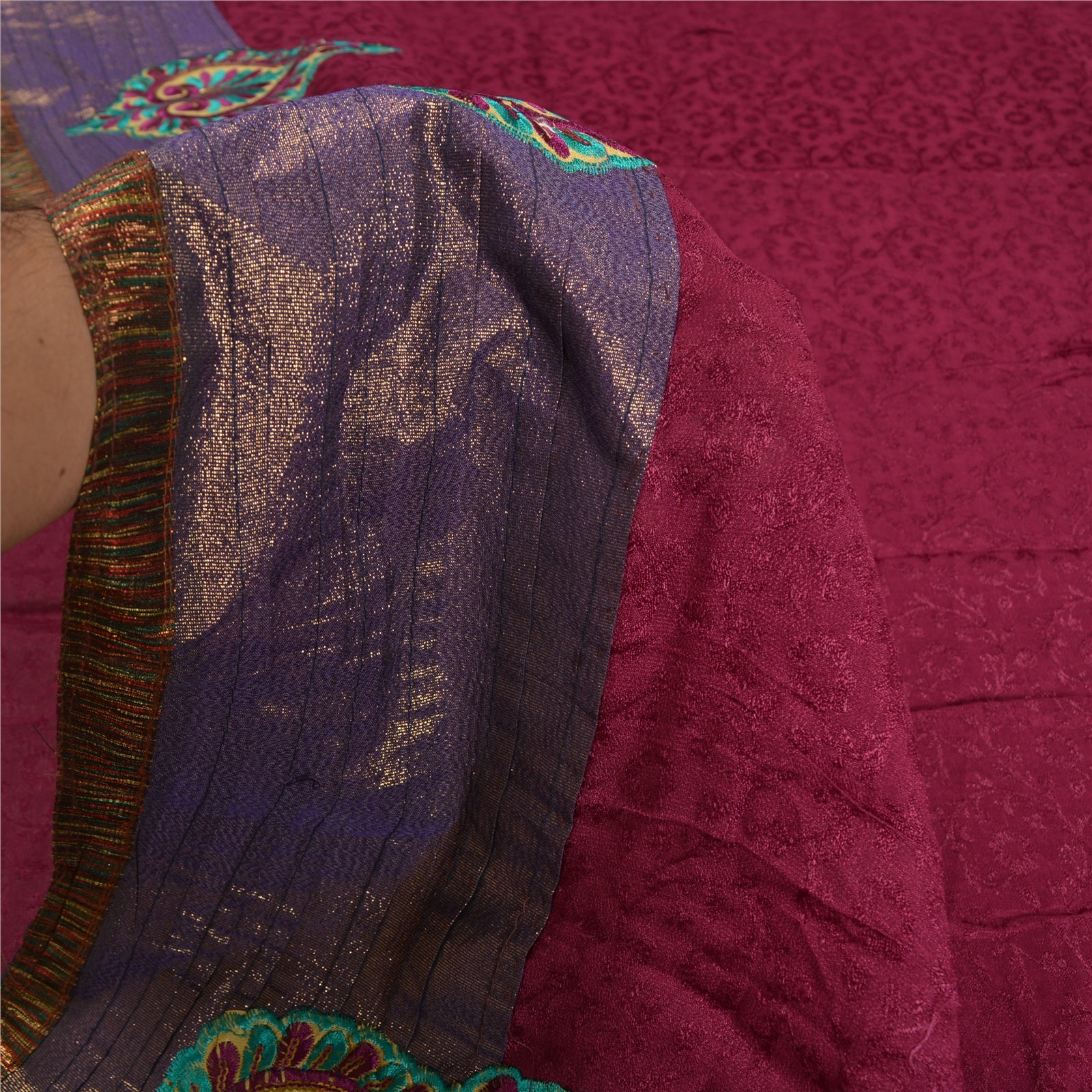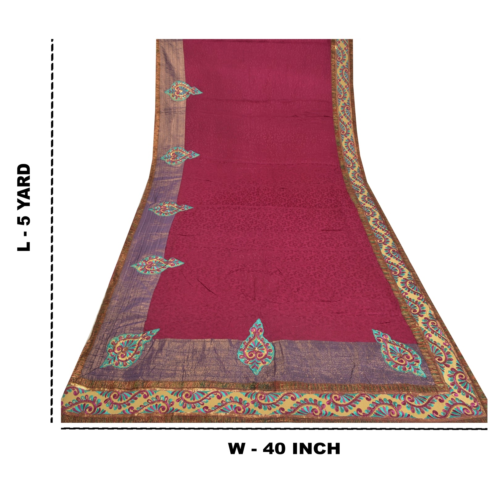 'THE ITEM COLOR OR SHADE MAY BE DARKER OR LIGHTER THAN THE PICTURE.' Beautiful purple colored pure georgette embroidered sari/Sustainable Fabric. Pallu & border features multi color Sustainable Fabric patch work embroidered with thread & sequins work in floral design. The center of the saree has purple woven floral design. This saree can be used for various crafting ideas too. Use it for dress designing, as a throw, as window dressing, upholstery, table linen and much more. Let your creative juices flow. 'International buyers please note: Import duties, taxes, and charges are not included in the item price or postage cost. These charges are the buyer's responsibility. Please check with your country's customs office to determine what these additional costs will be prior to bidding or buying. Buyer will pay custom duty/tax. It is calculated and charged differently by every country. As a seller I do not have any control over it. VAT or sales tax is calculated by the platform at the time of checkout. Customs charge is payable at the time of delivery.'