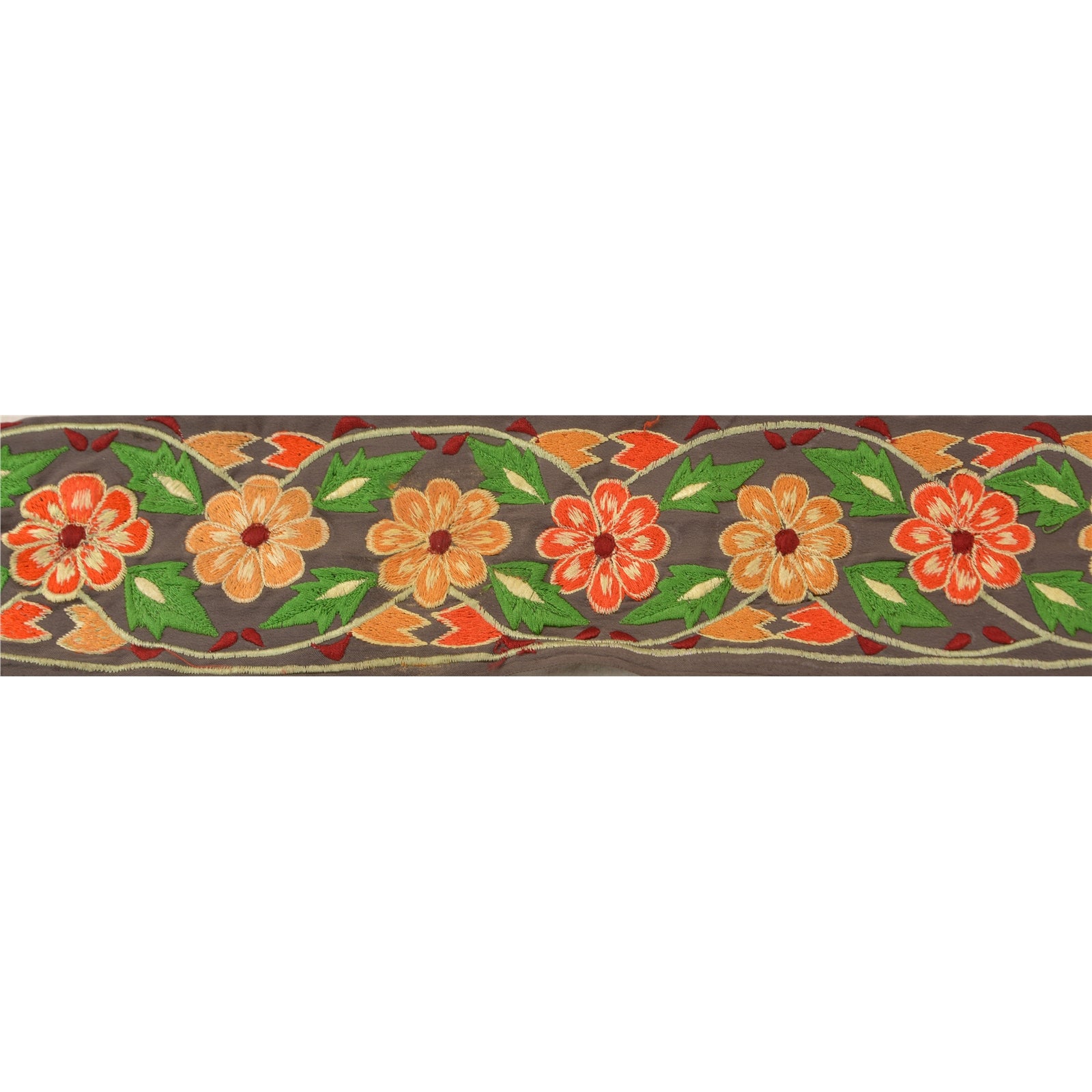 Sanskriti Vintage Border Embroidered Thread 1 YD Trim Sewing Grey Silk Lace 3"W