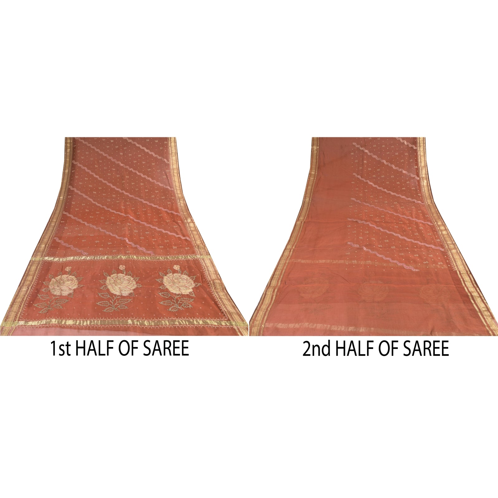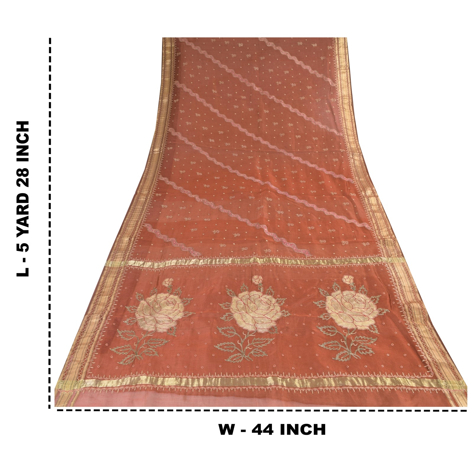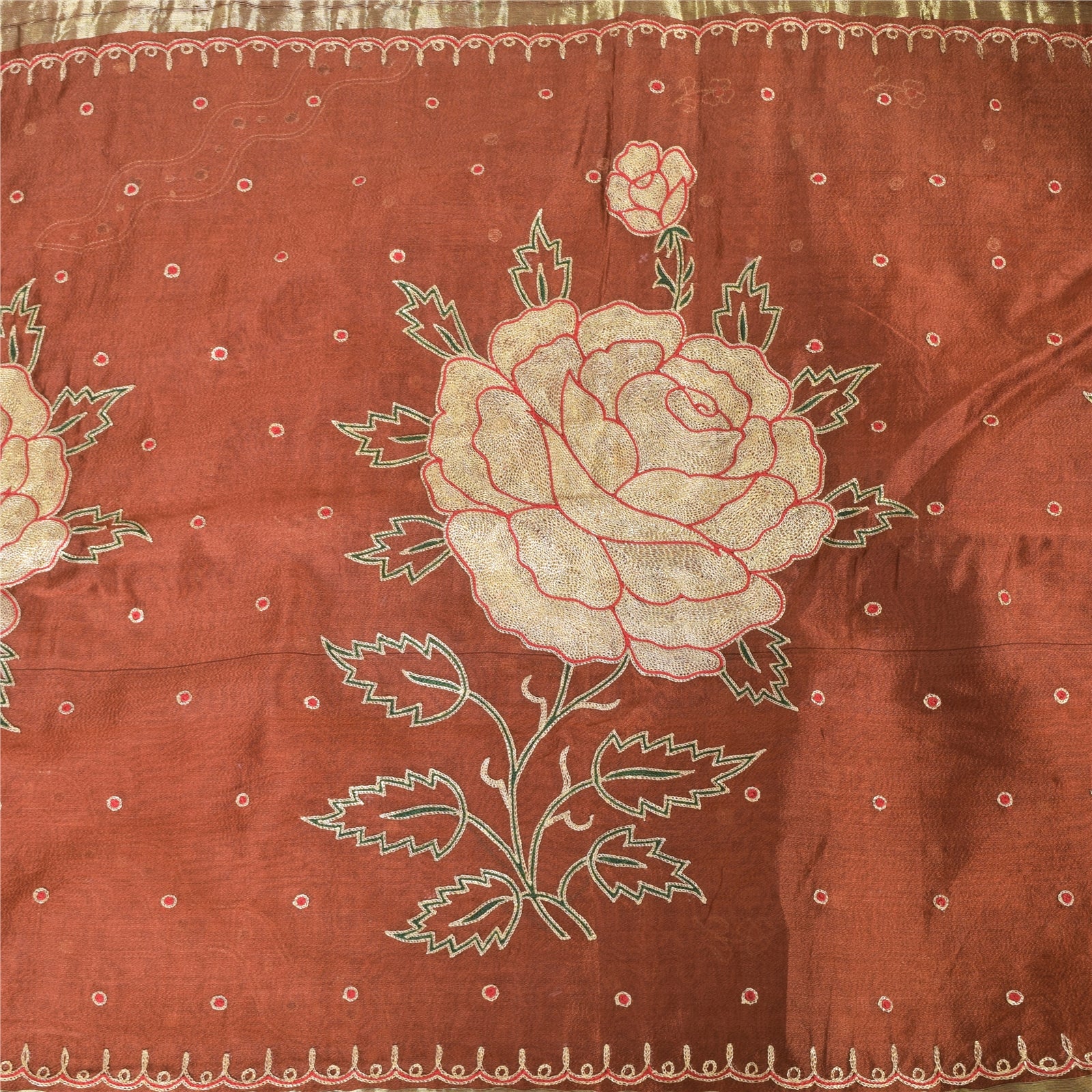 THE ITEM COLOR OR SHADE MAY BE DARKER OR LIGHTER THAN THE PICTURE.' An Awesome Sari In 100% Pure Silk Brick Red Colored Woven Sari/Sustainable Fabric. Pallu & Border Features floral design embellished with golden zari work & red/green thread woven work. You Can See Center Portion Of The Sari Has Similar Thread Work With Floral Design. This unique vintage saree can be used for various crafting ideas for example design a dress, use it as a throw, as window dressing, upholstery, table linen and much more. Let your creative juices flow and use this decorated Sustainable Fabric in multiple fashion Shipping note: International buyers please note: Import duties, taxes, and charges are not included in the item price or postage cost. These charges are the buyer's responsibility. Please check with your country's customs office to determine what these additional costs will be prior to bidding or buying. Buyer will pay custom duty/tax. It is calculated and charged differently by every country. As a seller I do not have any control over it. VAT or sales tax is calculated by the platform at the time of checkout. Customs charge is payable at the time of delivery. SKU: PS-64172