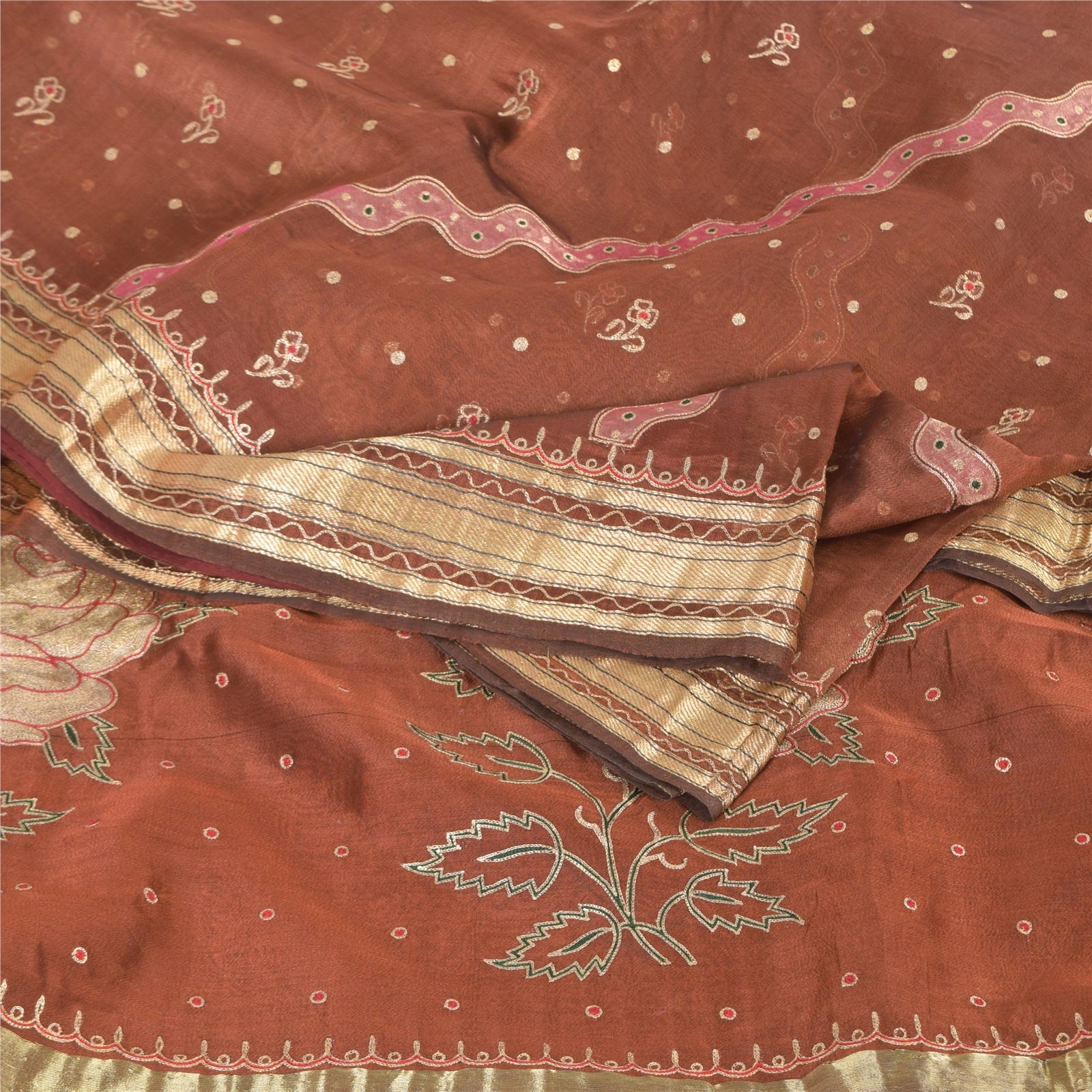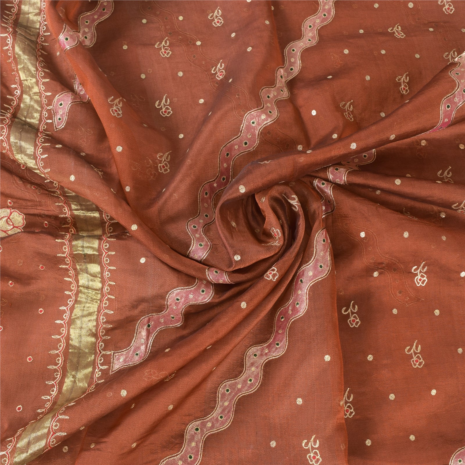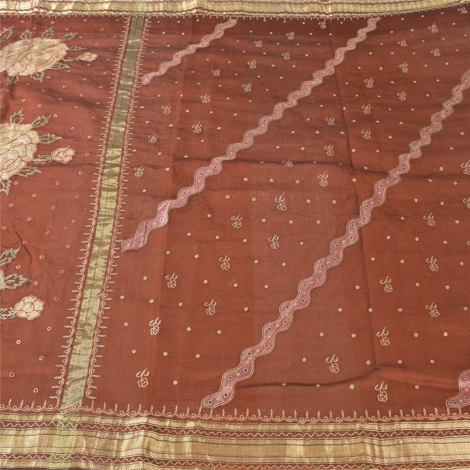 THE ITEM COLOR OR SHADE MAY BE DARKER OR LIGHTER THAN THE PICTURE.' An Awesome Sari In 100% Pure Silk Brick Red Colored Woven Sari/Sustainable Fabric. Pallu & Border Features floral design embellished with golden zari work & red/green thread woven work. You Can See Center Portion Of The Sari Has Similar Thread Work With Floral Design. This unique vintage saree can be used for various crafting ideas for example design a dress, use it as a throw, as window dressing, upholstery, table linen and much more. Let your creative juices flow and use this decorated Sustainable Fabric in multiple fashion Shipping note: International buyers please note: Import duties, taxes, and charges are not included in the item price or postage cost. These charges are the buyer's responsibility. Please check with your country's customs office to determine what these additional costs will be prior to bidding or buying. Buyer will pay custom duty/tax. It is calculated and charged differently by every country. As a seller I do not have any control over it. VAT or sales tax is calculated by the platform at the time of checkout. Customs charge is payable at the time of delivery. SKU: PS-64172