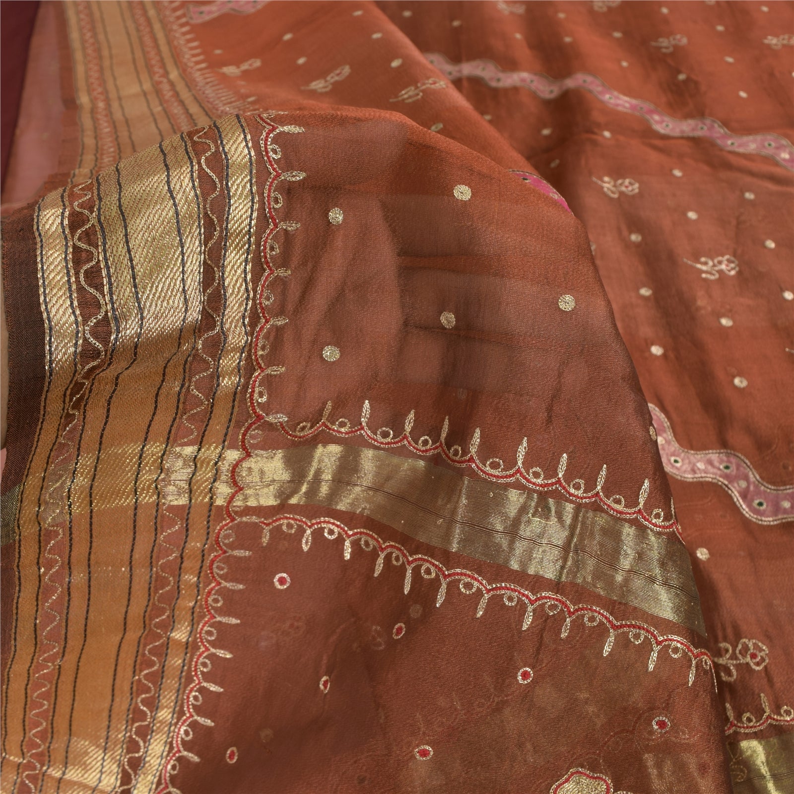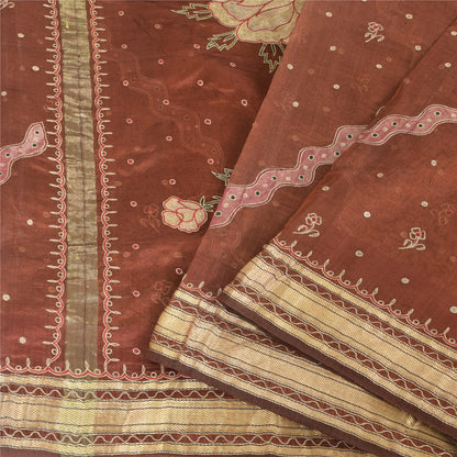 Sanskriti Vintage Brick Red Sarees Pure Silk Woven Premium Sari 5yd Craft Sustainable Fabric