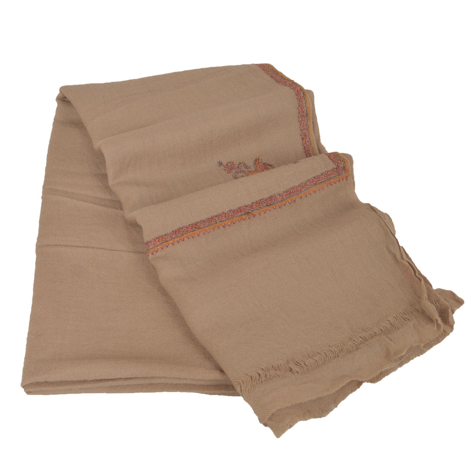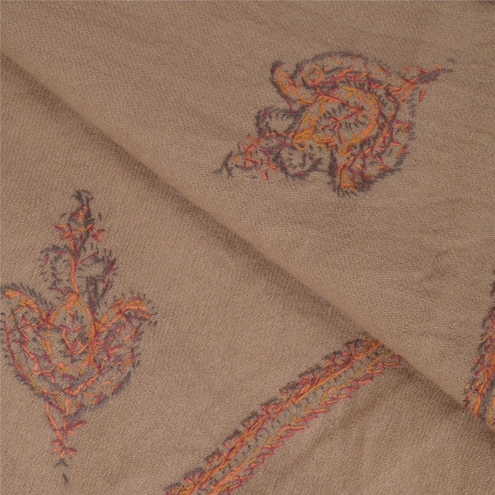 Sanskriti Vintage Brown 100% Pure Woolen Shawl Handmade Suzani Long Stole Scarf