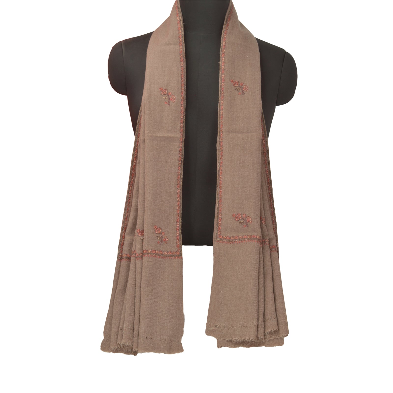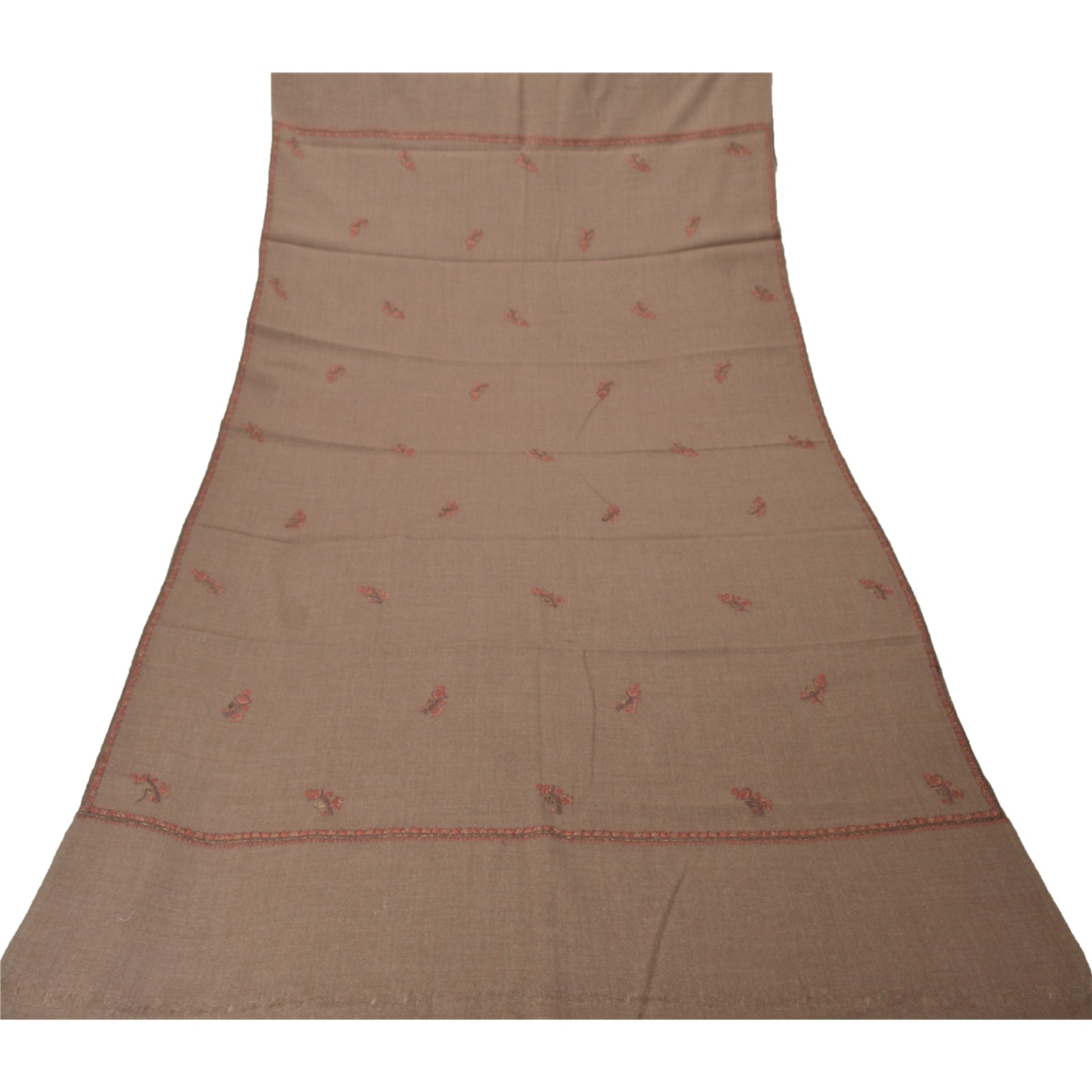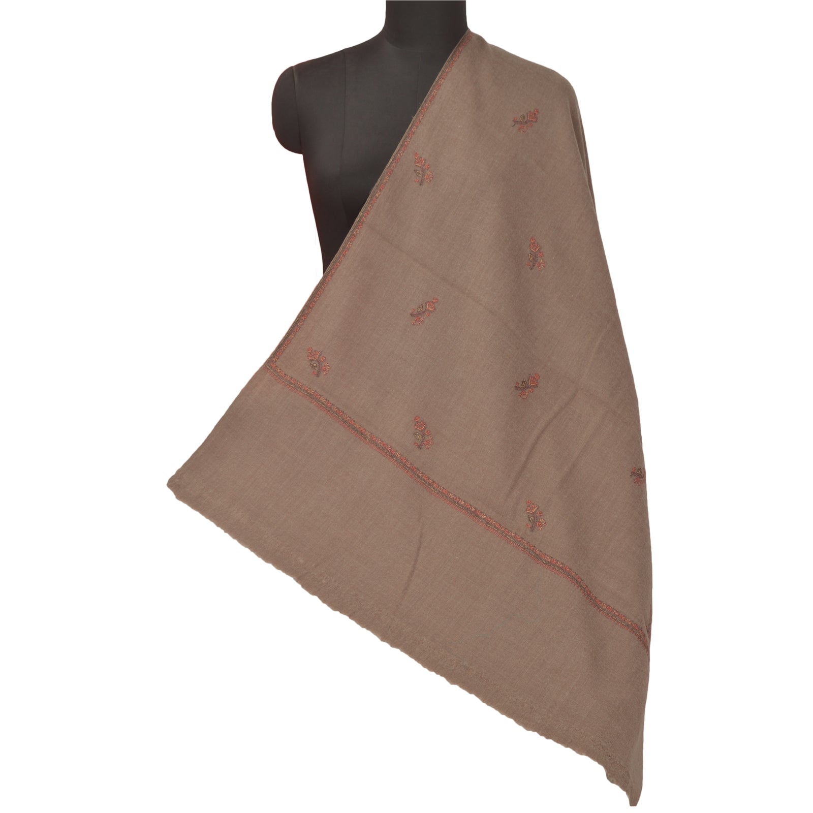 Sanskriti Vintage Brown 100% Pure Woolen Shawl Handmade Suzani Long Throw Stole