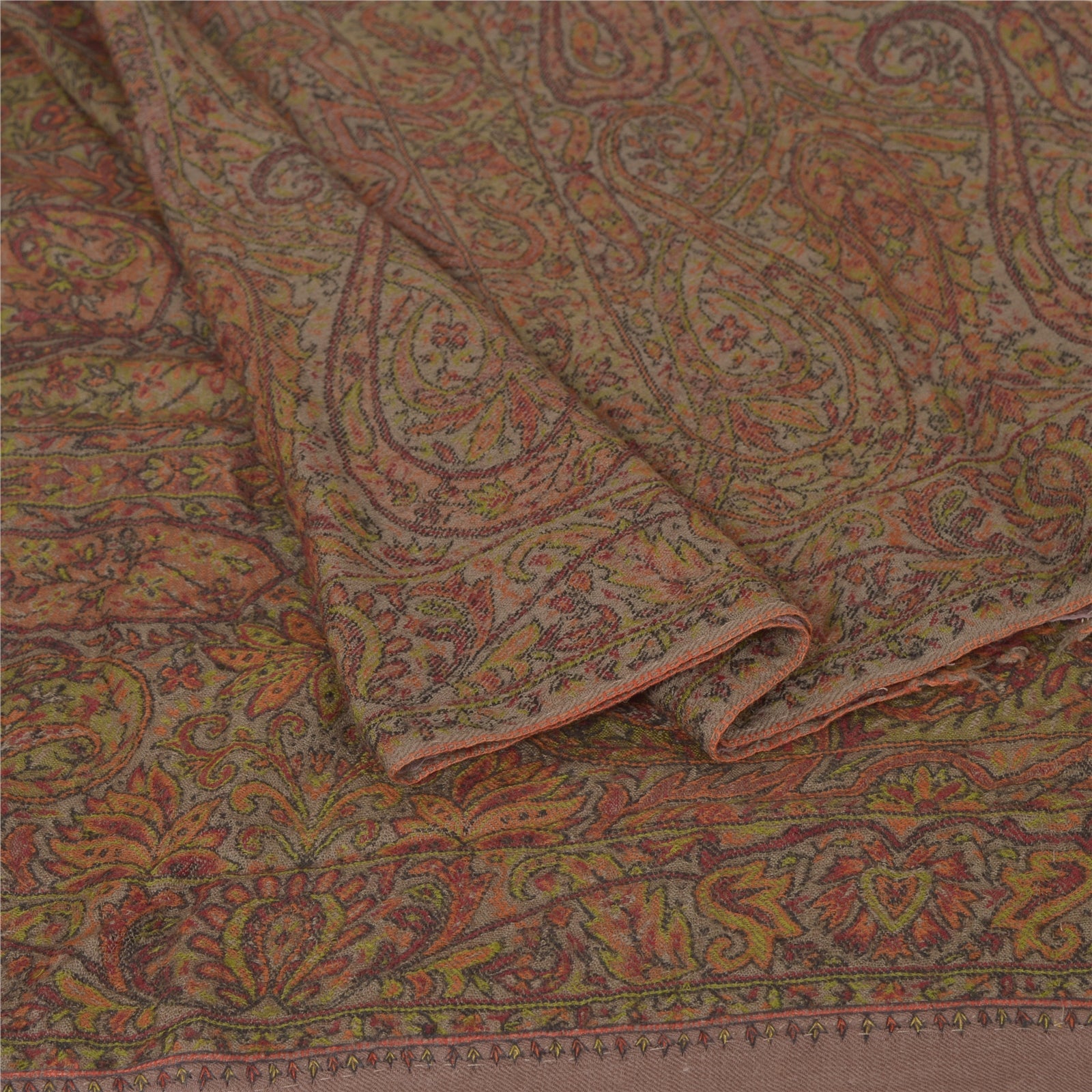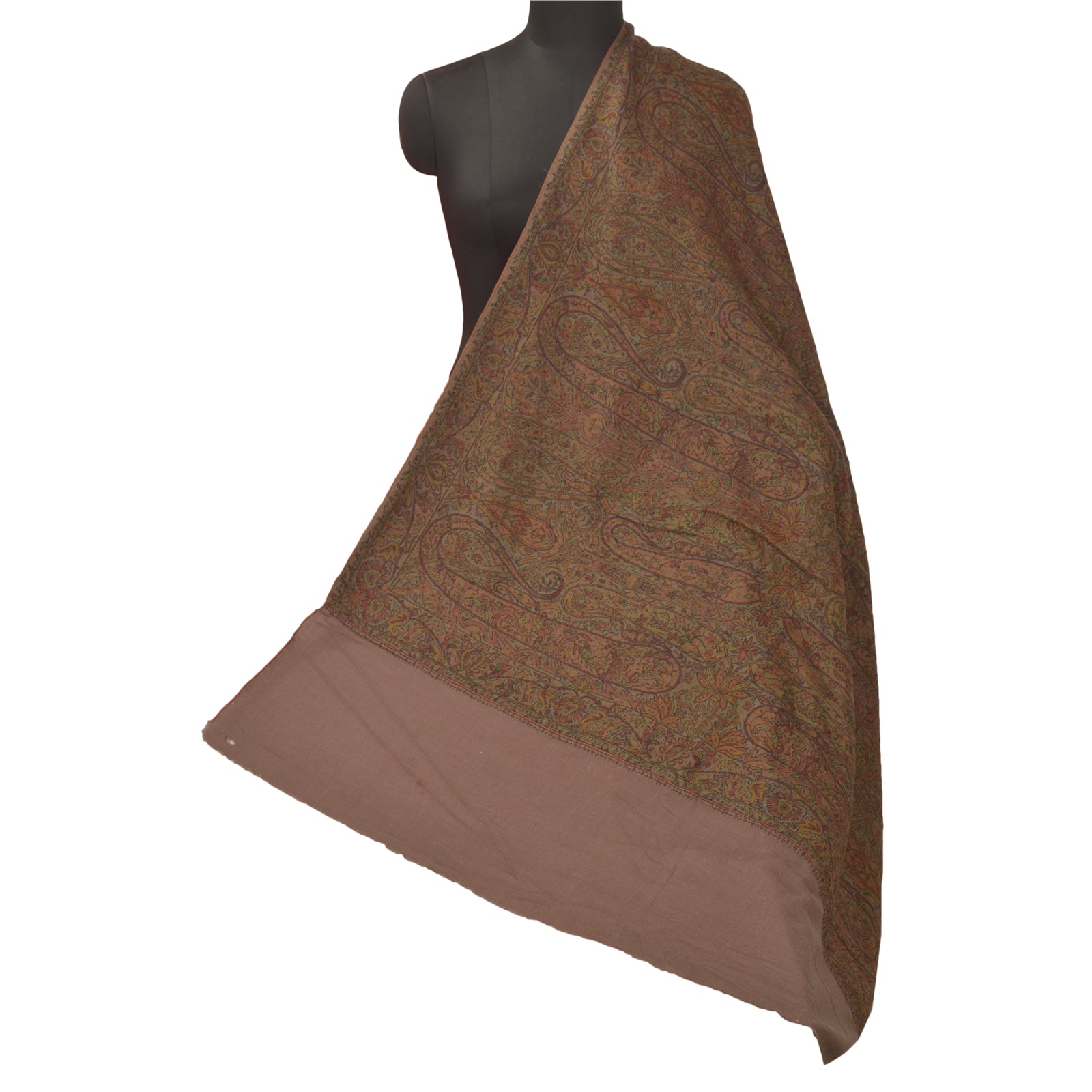 Sanskriti Vintage Brown 100% Pure Woolen Shawl Long Woven Scarf Throw Stole