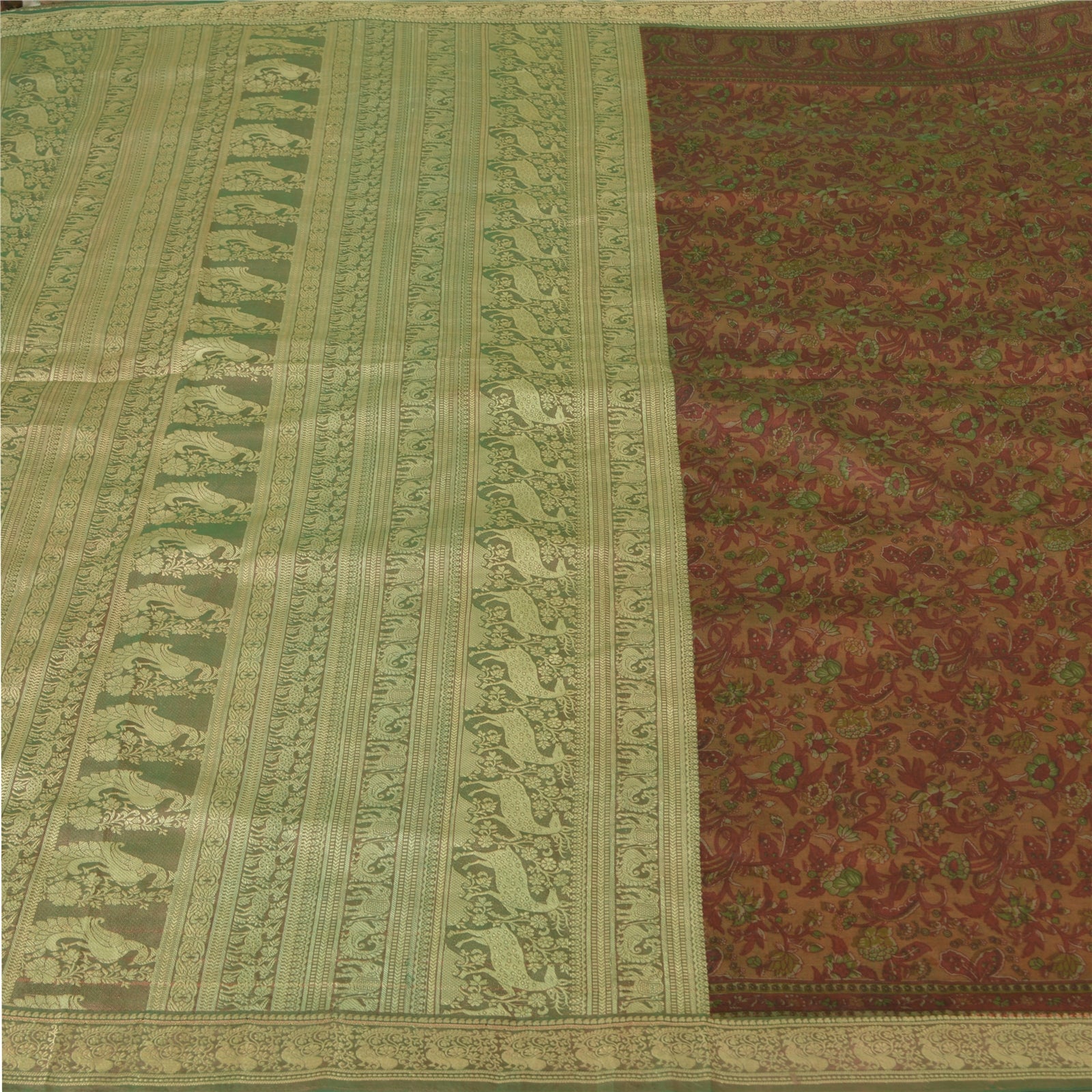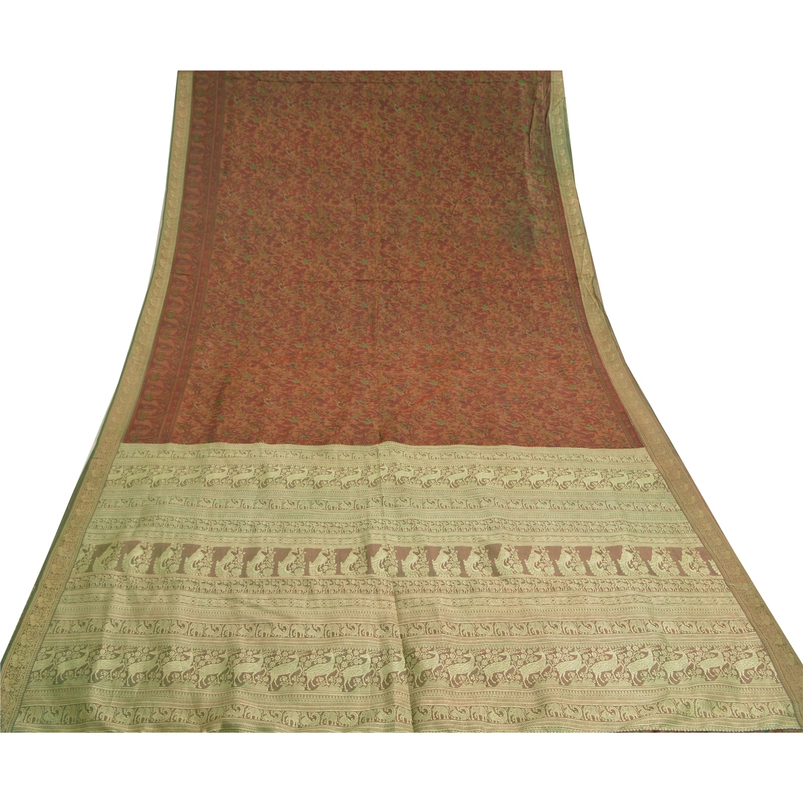Sanskriti Vintage Brown Sarees 100% Pure Silk Woven Baluchari Human Sari Sustainable Fabric