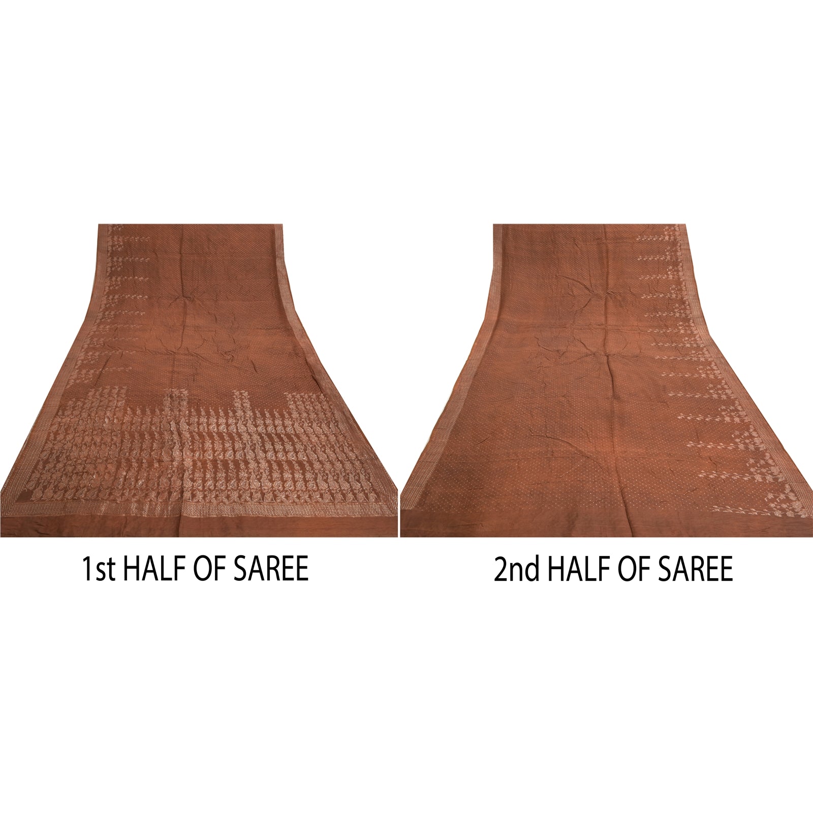 Sanskriti Vintage Brown Sarees 100% Pure Silk Woven Premium Sari Craft Sustainable Fabric