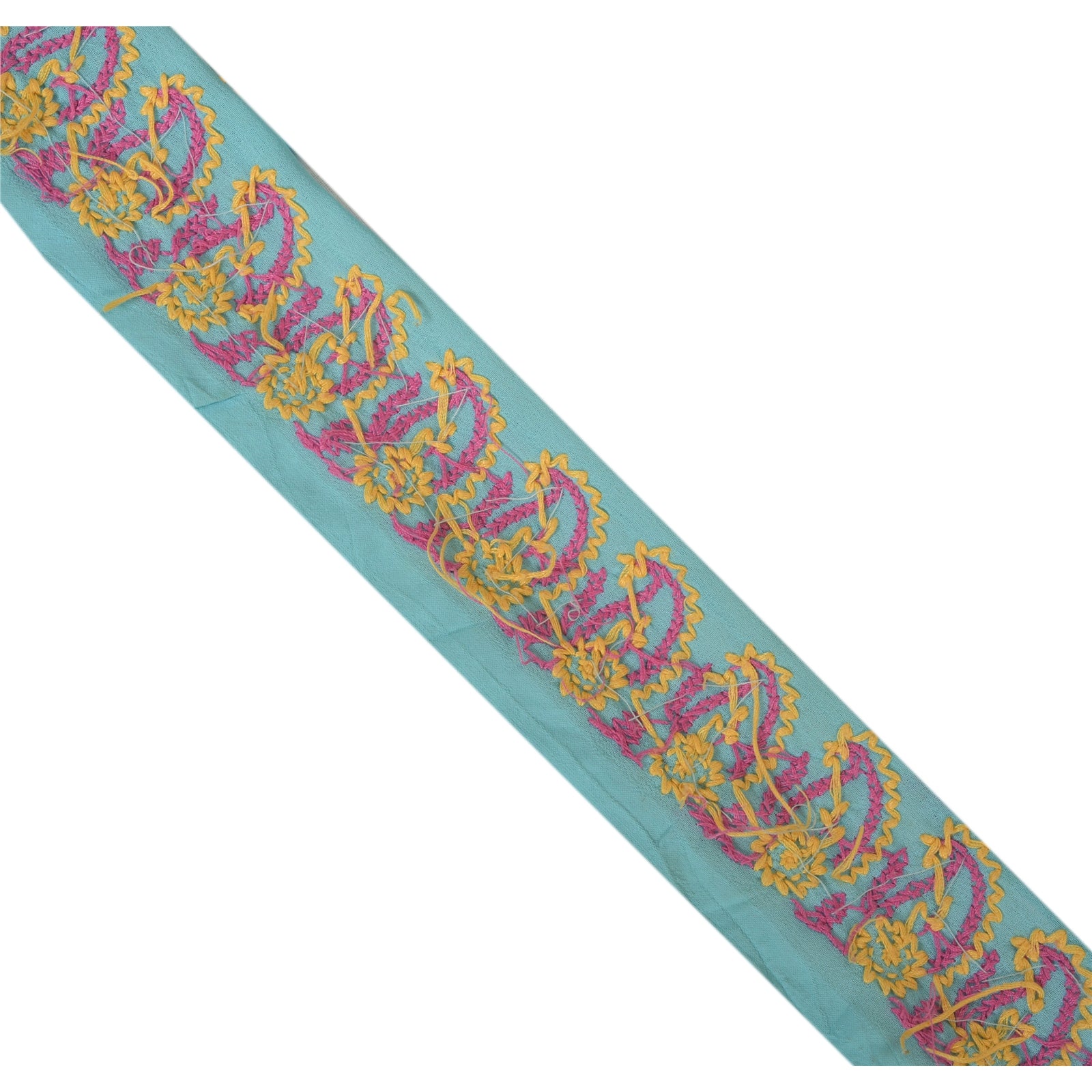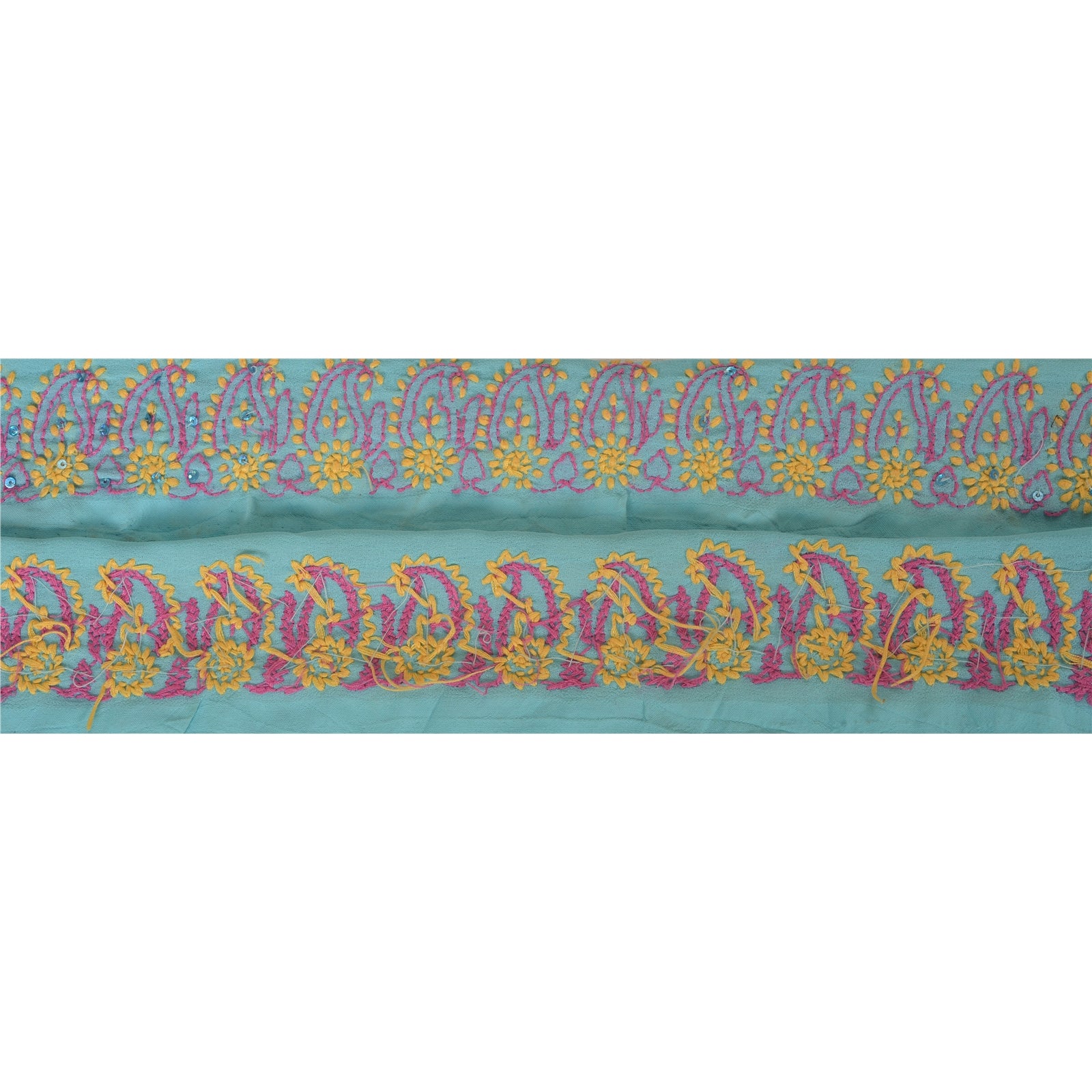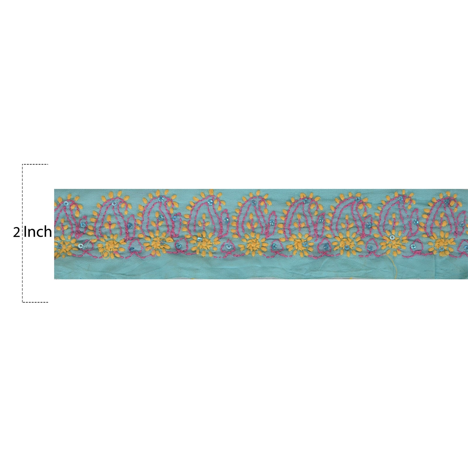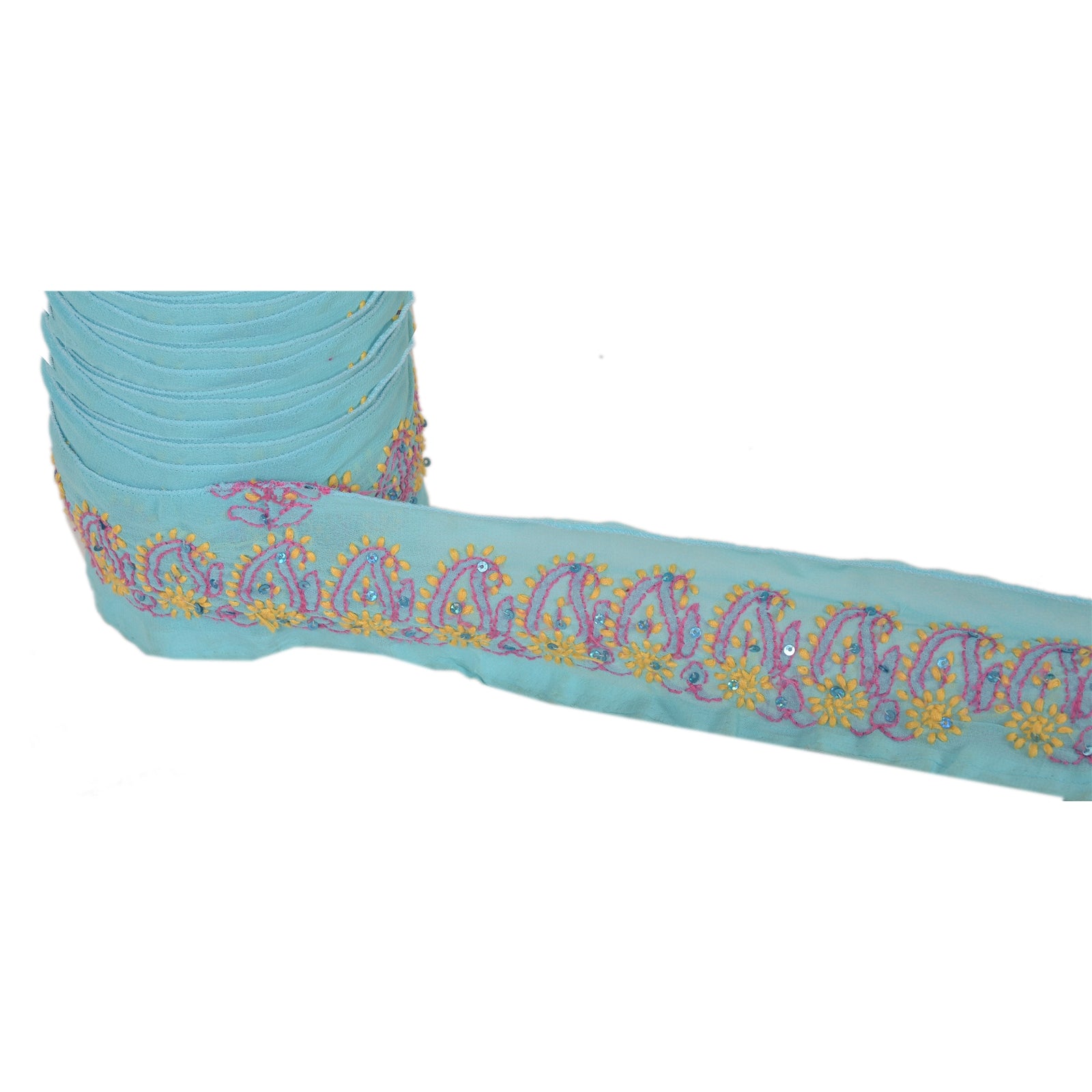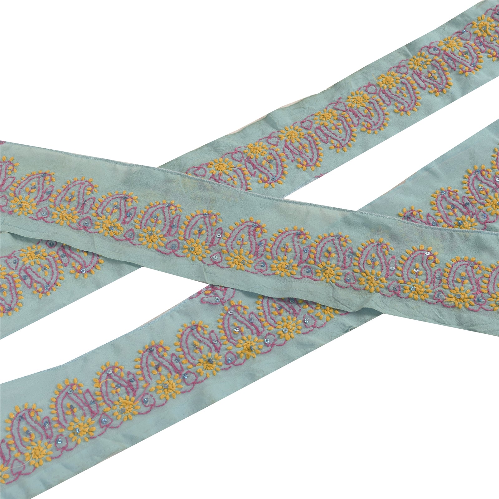 Sanskriti Vintage Chikankari Sari Border Hand Embroidered 1 YD Sewing Blue Lace