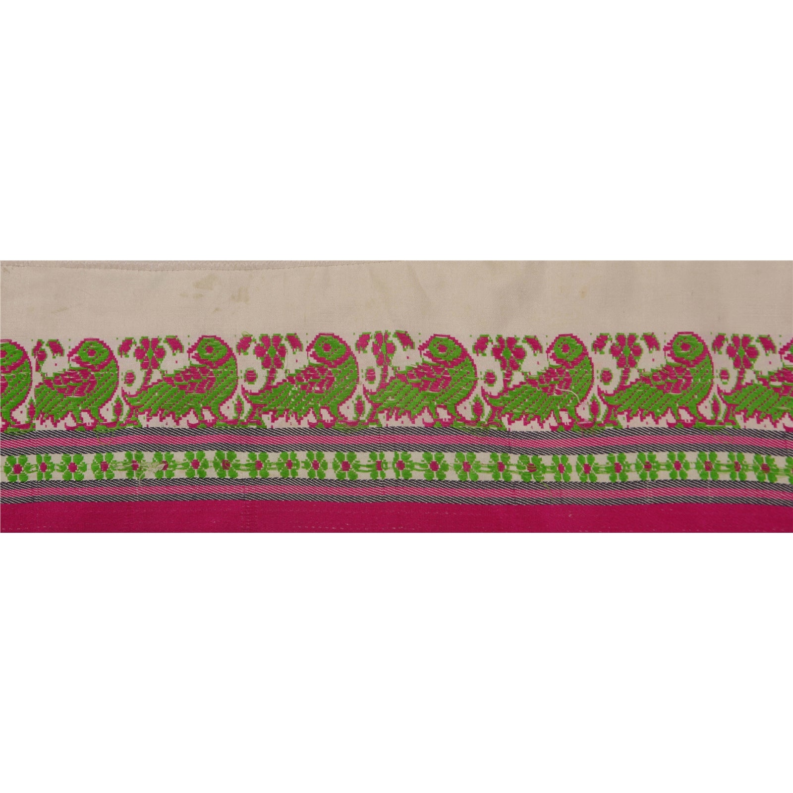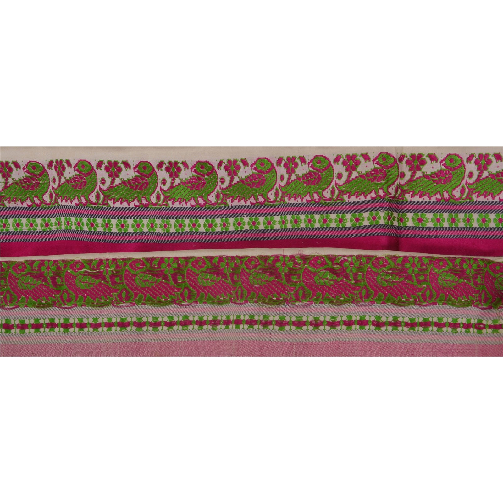 THE ITEM COLOR OR SHADE MAY BE DARKER OR LIGHTER THAN THE PICTURE. Graceful pure silk woven sari border in cream & pink color highlighting woven work. Border has beautiful floral & parrot painstakingly pink, green, blue weaving work. WOW!! an awesome one of a kind versatile border. 1 Quantity = 1 Yard Shipping Note: 'International buyers please note: Import duties, taxes, and charges are not included in the item price or postage cost. These charges are the buyer's responsibility. Please check with your country's customs office to determine what these additional costs will be prior to bidding or buying. Buyer will pay custom duty/tax. It is calculated and charged differently by every country. As a seller I do not have any control over it. VAT or sales tax is calculated by the platform at the time of checkout. Customs charge is payable at the time of delivery.' B-14018