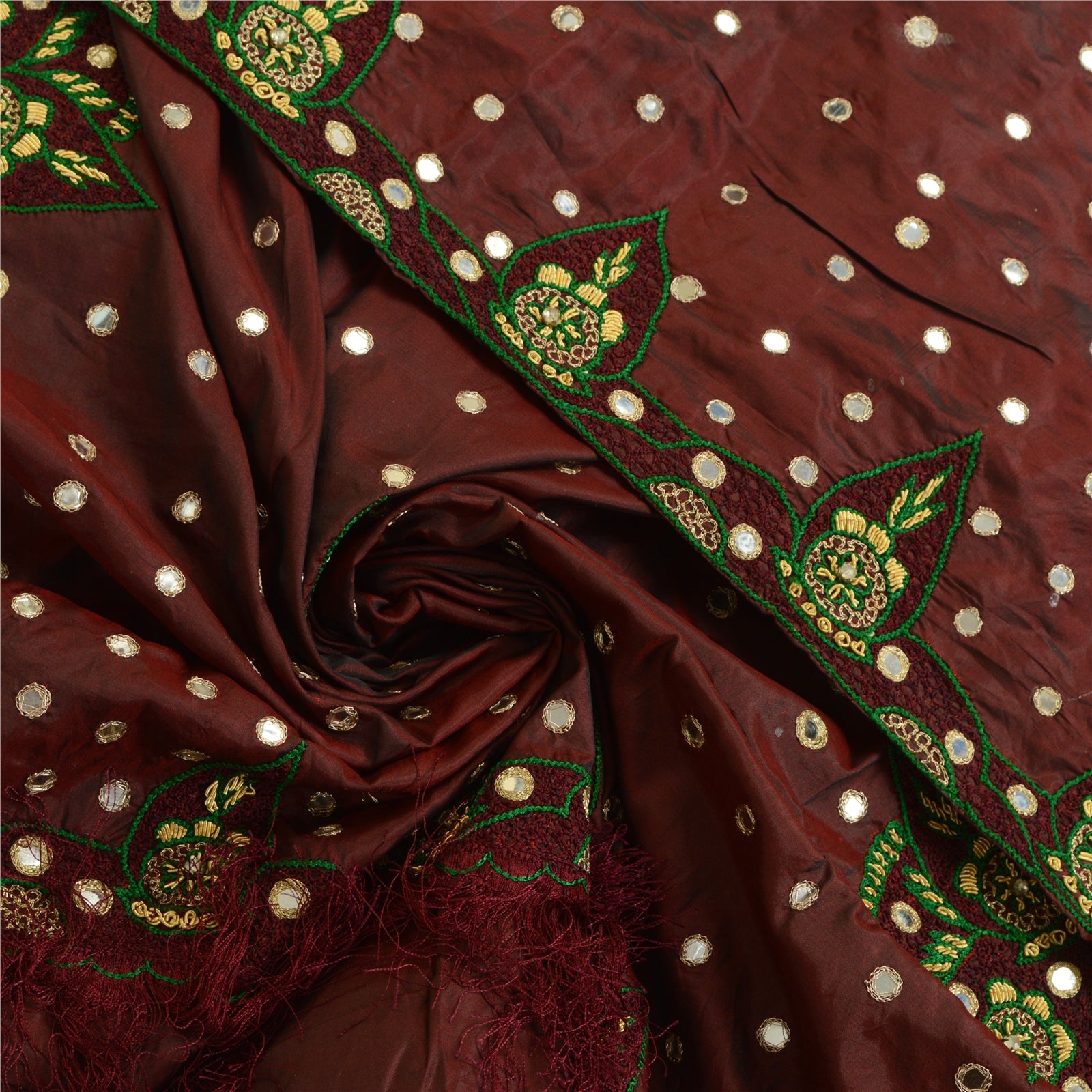 'THE ITEM COLOR OR SHADE MAY BE DARKER OR LIGHTER THAN THE PICTURE.' Lovely dupatta/stole in dark red color blend silk base fabric. Full hand made antique design dupatta beaded with golden zari/zardozi work all over the dupatta/stole. Antique finish golden zardozi work is done in floral design all over. The border of the stole has an antique design giving it as a carving look which is beaded in zardozi and mirror work. Green/maroon thread, AD stones work is used as an outliner of a design and zardozi beads is used to fill the design. Dupatta has matching fringes on both ends of borders. A very traditional dupatta with beautiful craftsmanship which I am sure you will truly appreciate. 'International buyers please note: Import duties, taxes, and charges are not included in the item price or postage cost. These charges are the buyer's responsibility. Please check with your country's customs office to determine what these additional costs will be prior to bidding or buying. Buyer will pay custom duty/tax. It is calculated and charged differently by every country. As a seller I do not have any control over it. VAT or sales tax is calculated by the platform at the time of checkout. Customs charge is payable at the time of delivery.
