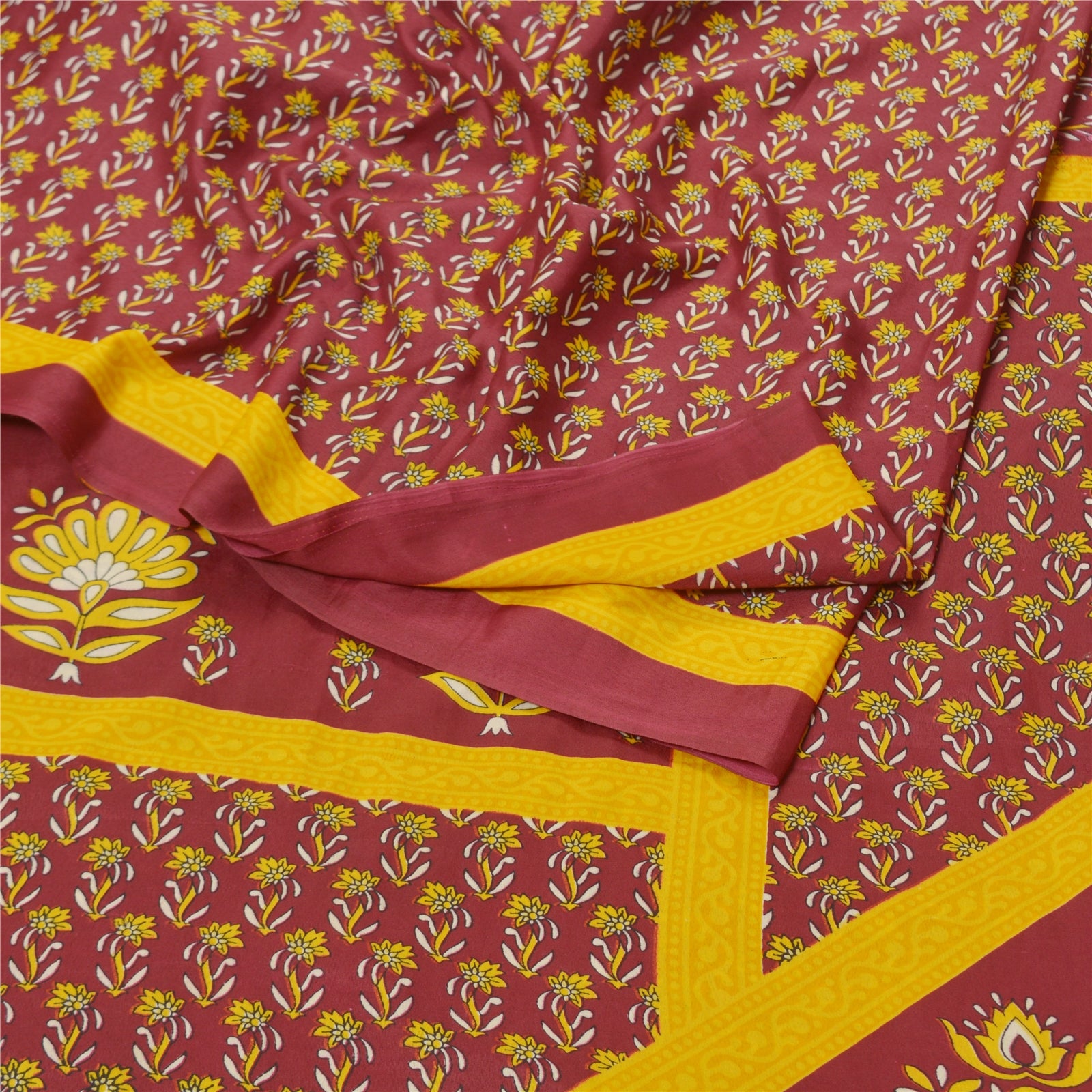 Beautiful dark red & yellow colored printed moss crepe saree. Pallu & Border has printed floral design .Floral design in center part of sari. Moss Crepe- This sari is polyester but it feels like crepe silk.What is special about this saree?Very soft & smooth moss crepe fabric with attractive colorful print pattern is beauty of the saree.This unique vintage saree can be used for various crafting ideas even if you don't want to use it as a sari. Design a dress, use it as a throw, as window dressing, upholstery, sarongs, table linen and much more. Let your creative juices flow and use this decorated fabric in multiple fashion.