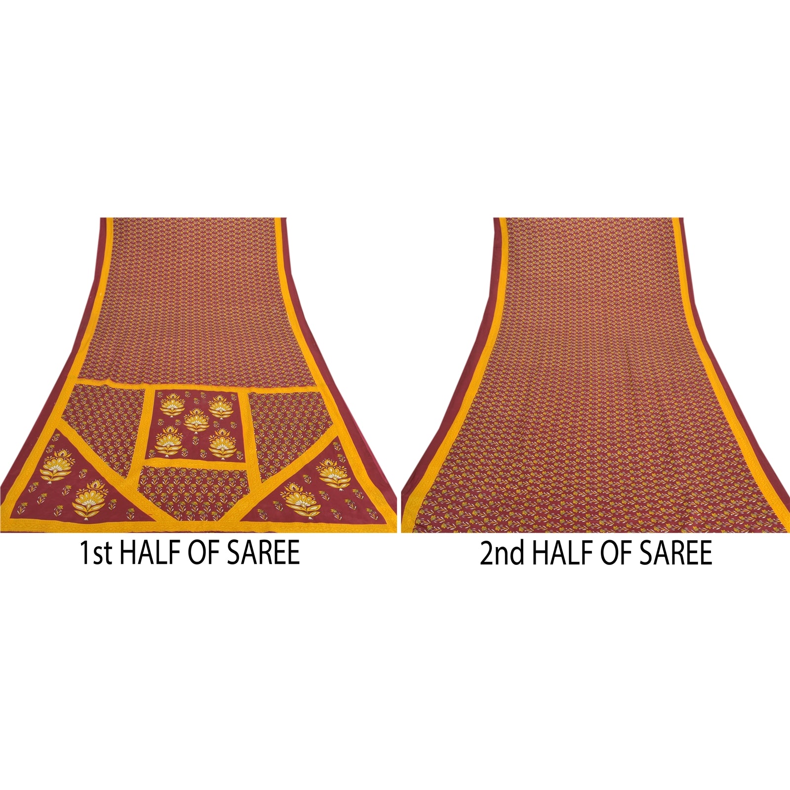 Sanskriti Vintage Dark Red Indian Sarees Moss Crepe Printed Sari Craft Fabric