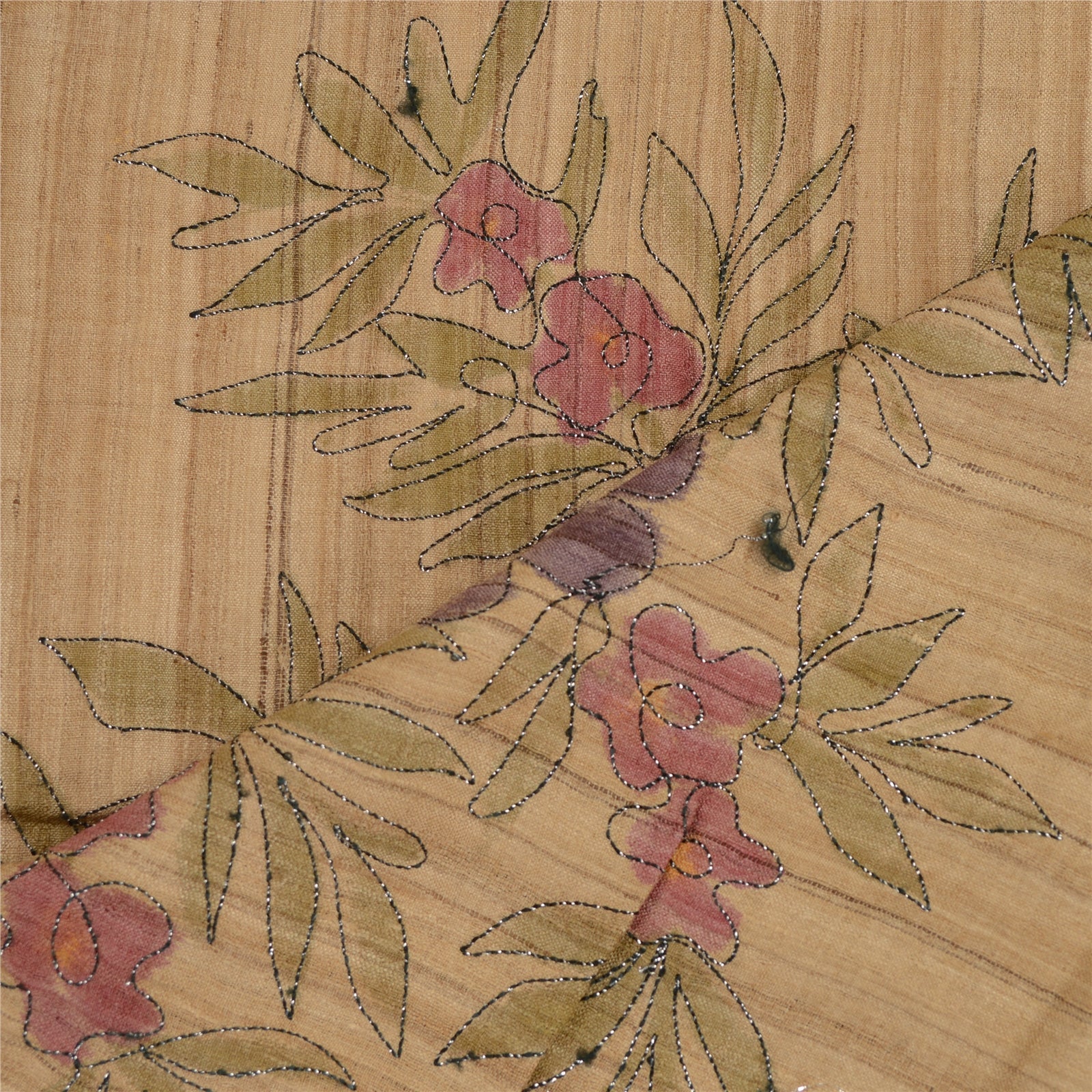 Elegant cream colored blend silk handloom hand embroidered printed dupatta/stole. All over dupatta has printed floral design with silver/black thread work is really enhancing beauty of the dupatta/stole. Dupatta has matching fringes on both ends of borders. This dupatta/stole can be used for various crafting ideas too. Use it for dress designing, as a throw, as window dressing, upholstery, table linen and much more. Let your creative juices flow.