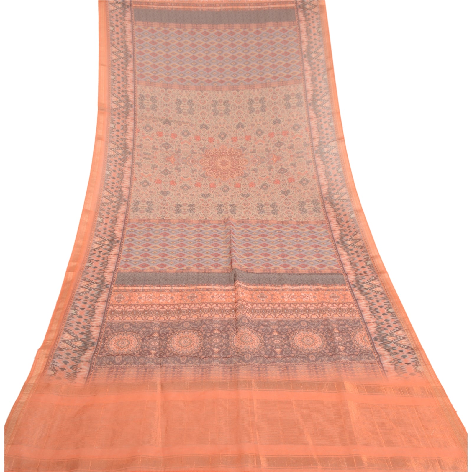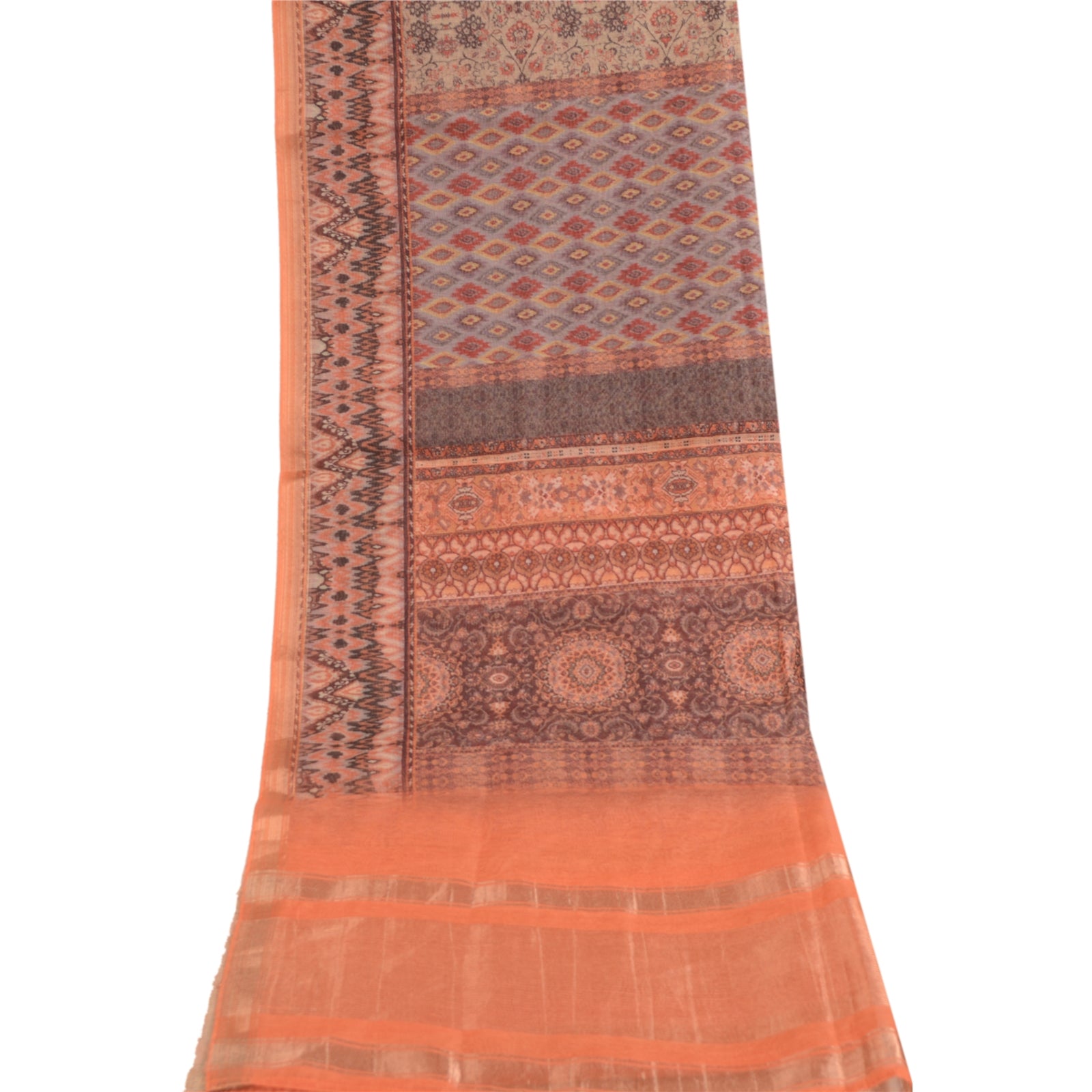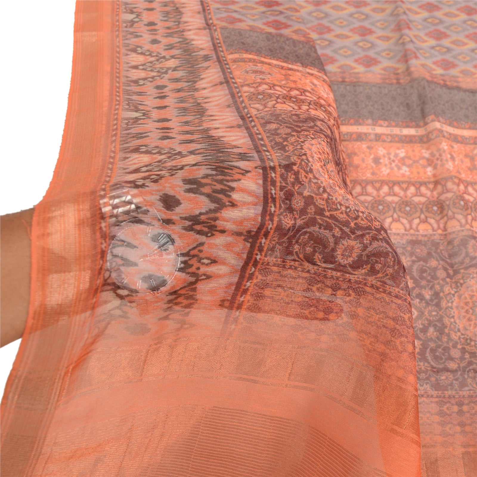Sanskriti Vintage Dupatta Long Stole Chanderi Orange Hijab Printed Scarves