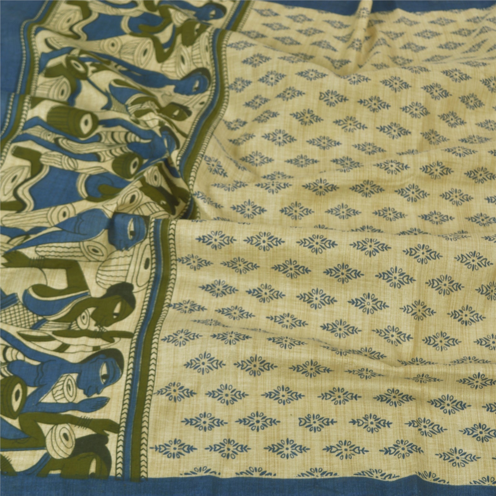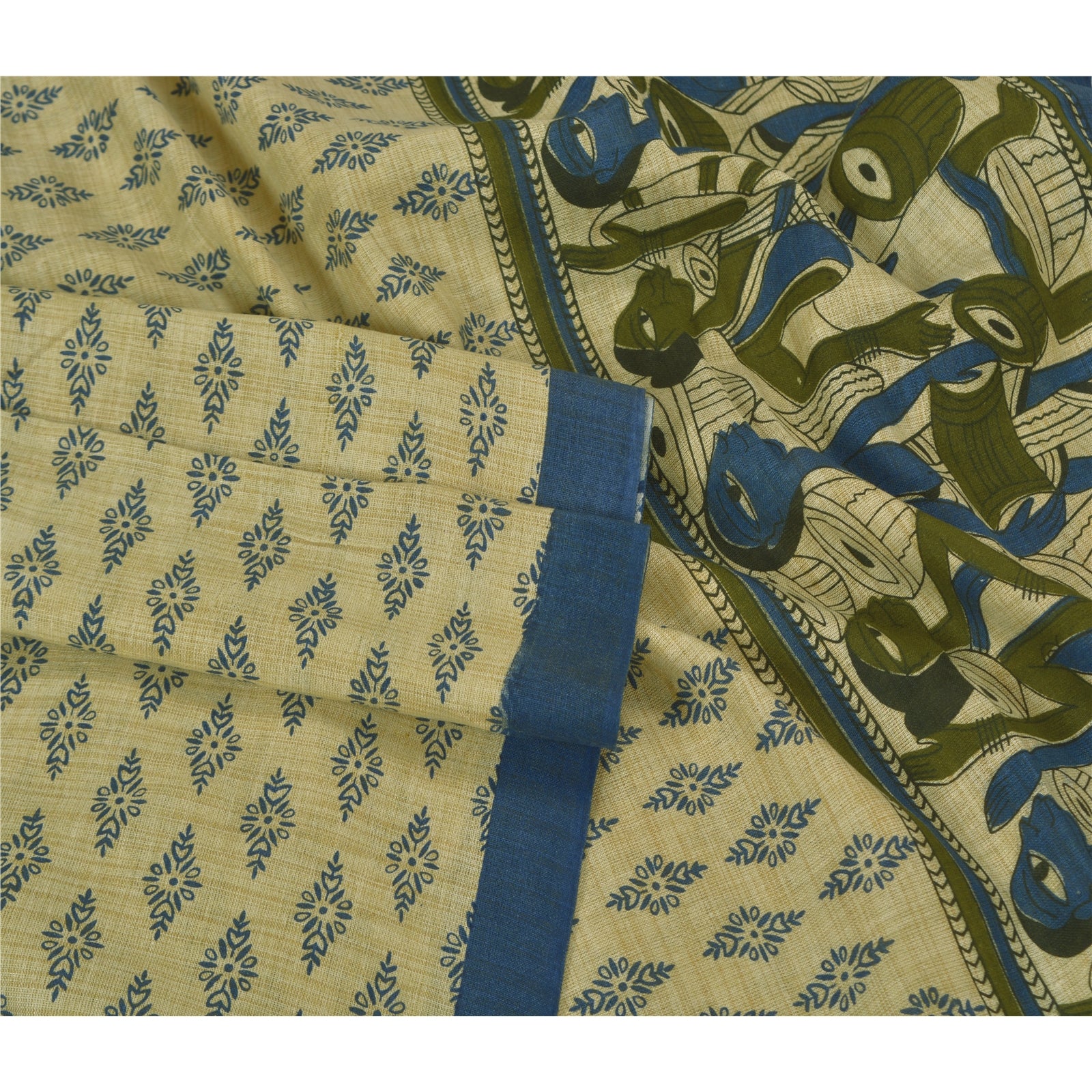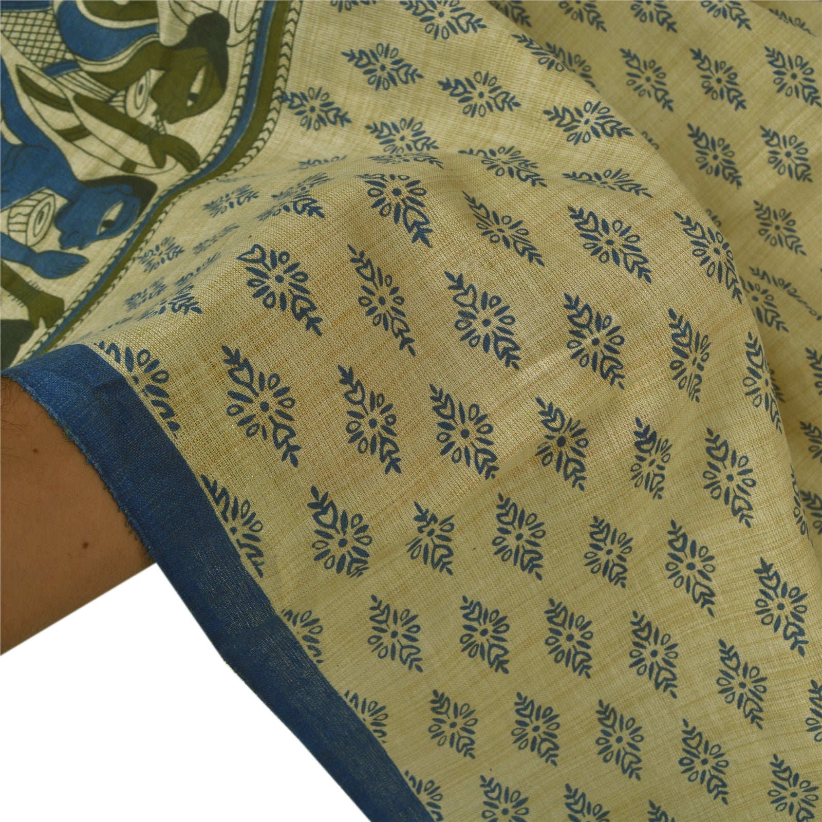 Sanskriti Vintage Dupatta Long Stole Pure Cotton Ivory Block Printed Human Hijab
