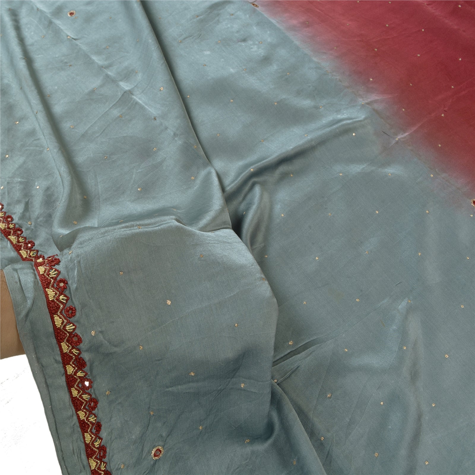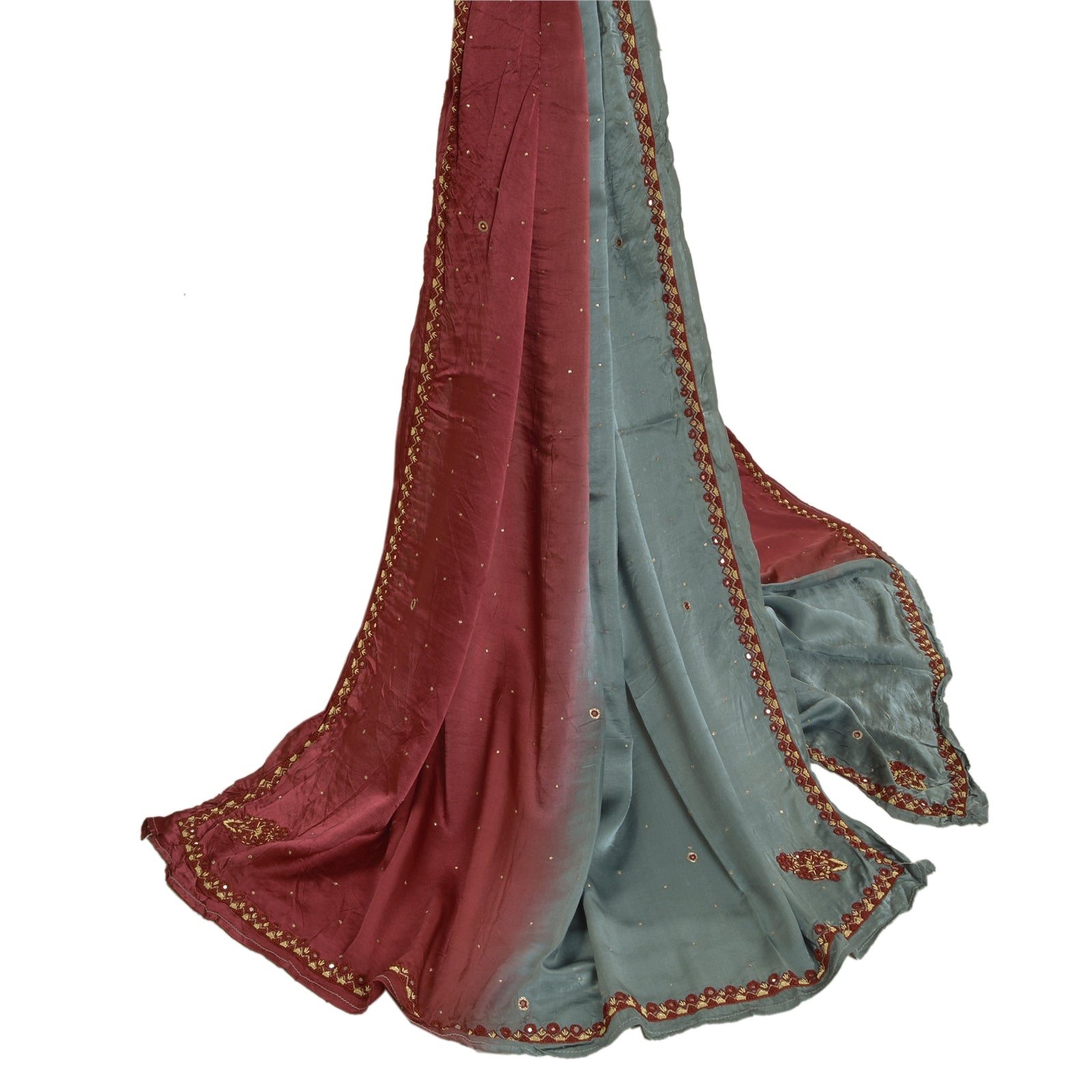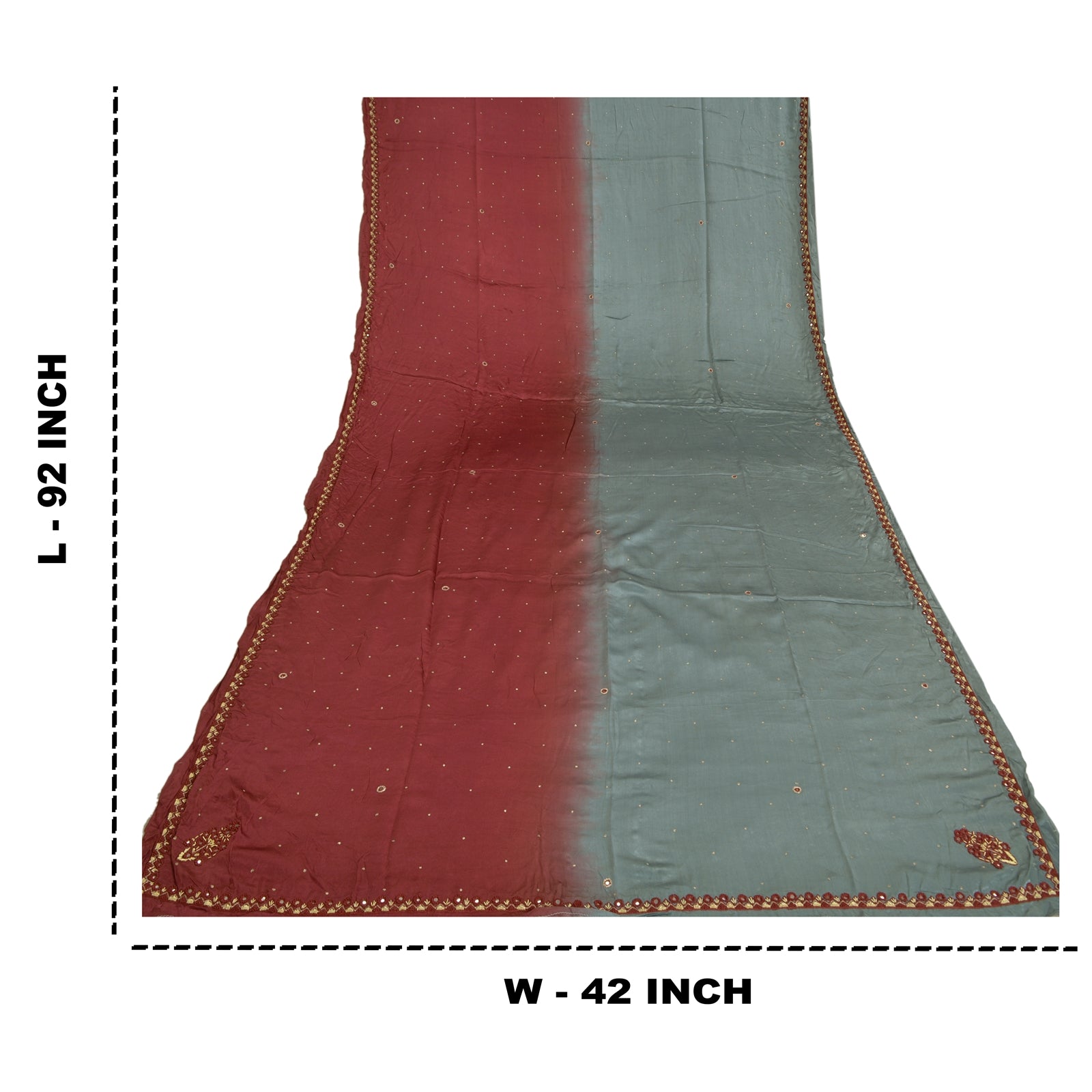 Sanskriti Vintage Dupatta Long Stole Pure Satin Silk Grey Hand Beaded Scarves