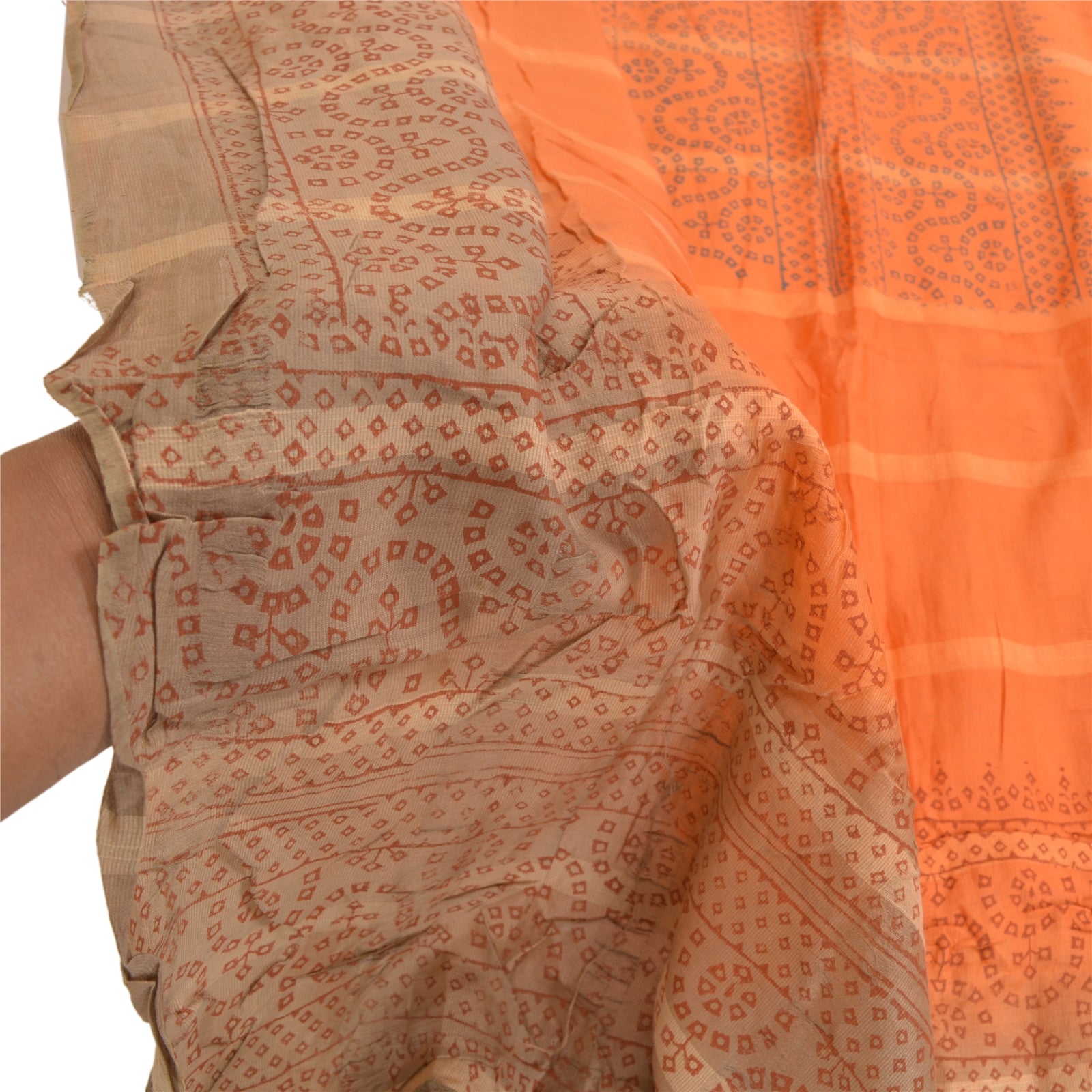 Sanskriti Vintage Dupatta Long Stole Pure Silk Orange Veil Block Printed Hijab