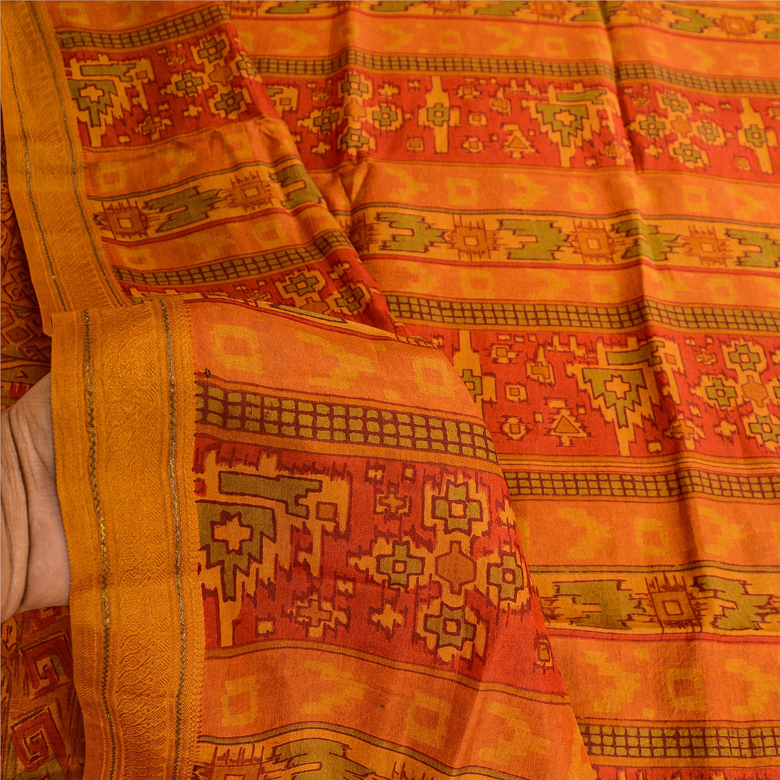 Beautiful dusty red colored printed pure silk saree. Pallu & border has printed floral design. Floral design in center part of saree. What is special about this saree? Fabulous design is really enhancing the beauty of the saree.This unique vintage saree can be used for various crafting ideas even if you don't want to use it as a sari. Design a dress, use it as window,dressing, upholstery, sarongs, throw, dress making and table linen much more. Let your creative juices flow and use this decorated Sustainable Fabric in multiple fashion. Saree has mild stain on it. Please note - Buyers from Australia are required to pay postage. Registered air mail to Australia is temporarily suspended due to the pandemic. Once it goes back to normal we'll revert to free shipping. For now, we are using Aramex and DHL to ship orders. These services are expensive but faster compared to regular mail. Thank you for your support. If you are buying in bulk we will refund whatever excess is left. Contact us after that purchase. For USA buyers - Single item ships via registered air mail, buy 1 more to get FedEx.