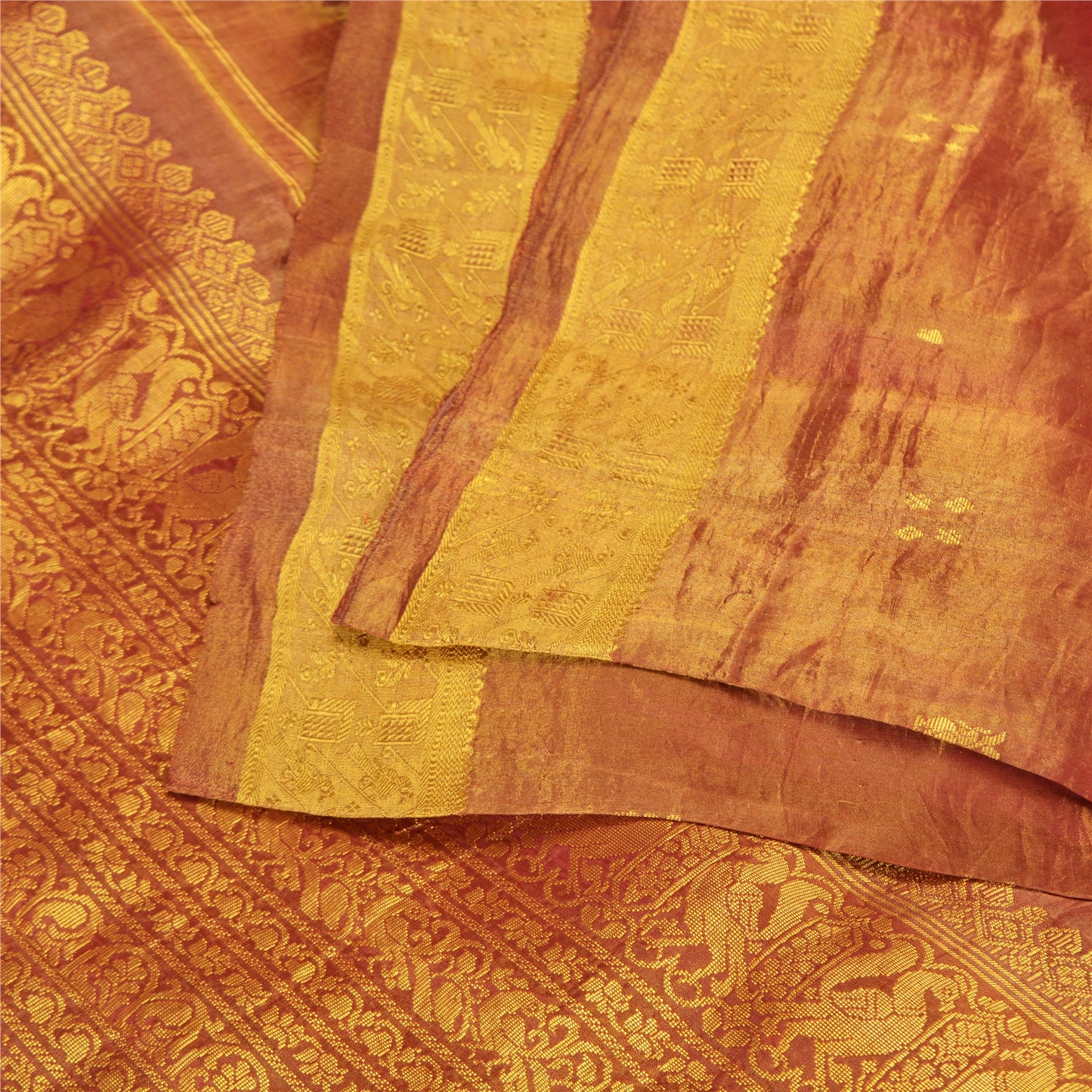 Sanskriti Vintage Golden Red Sarees Pure Silk Woven Brocade/Banarasi Sustainable Fabric Sari