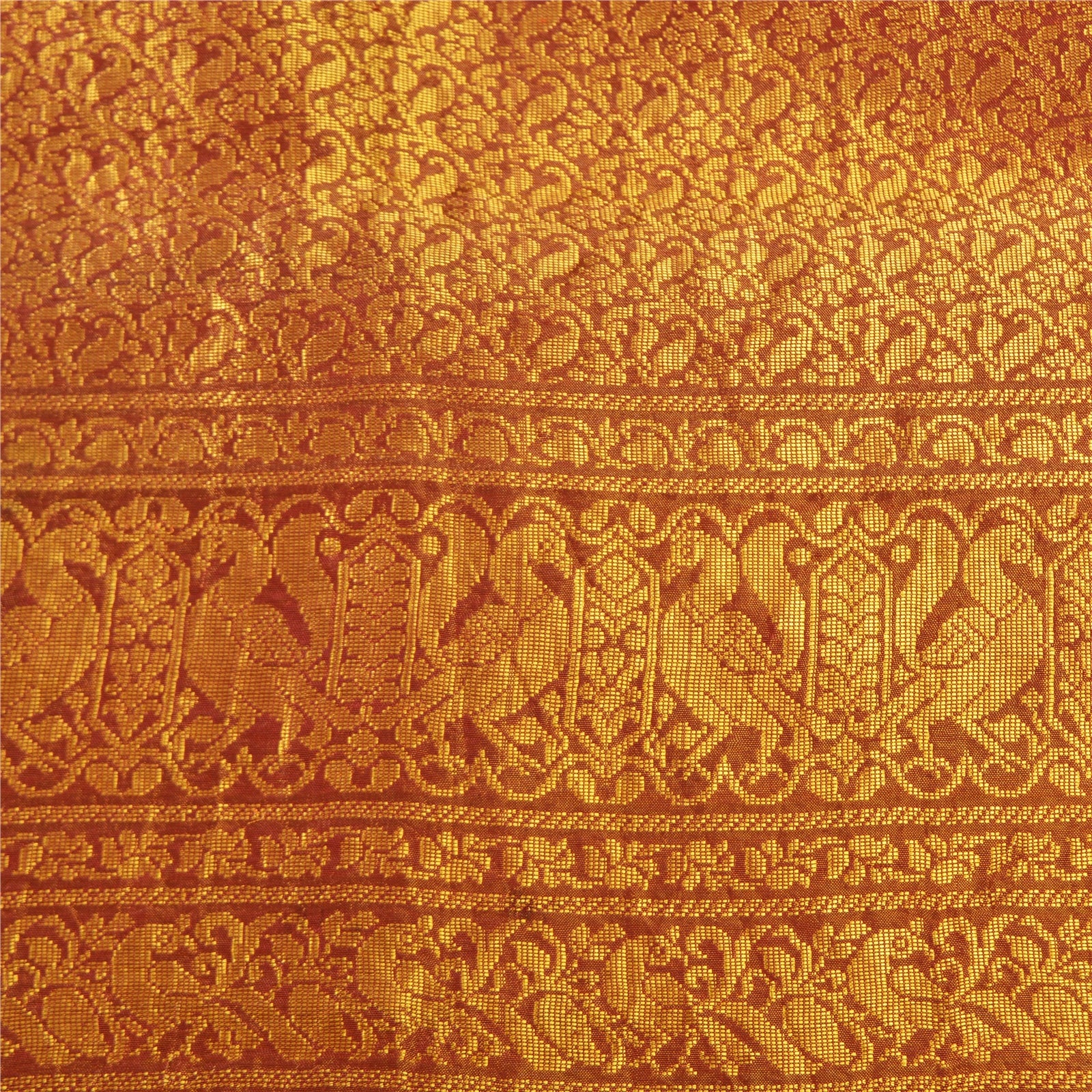Antique Piece!! Traditionally golden red colored 100% pure silk woven brocade/banarasi saree. Pallu & border features floral, paisley & peacock design with pure metallic golden zari work. Also you can see similar woven zari work with floral design in center part of saree. This saree can be used as it is and also for various crafting ideas too like you can use it for dress designing, table linen and much more. Let your creative juices flow! Perfect for festive seasons!! International buyers please note: Import duties, taxes, and charges are not included in the item price or postage cost. These charges are the buyer's responsibility. Please check with your country's customs office to determine what these additional costs will be prior to bidding or buying. Buyer will pay custom duty/tax. It is calculated and charged differently by every country. As a seller I do not have any control over it. VAT or sales tax is calculated by the platform at the time of checkout. Customs charge is payable at the time of delivery.