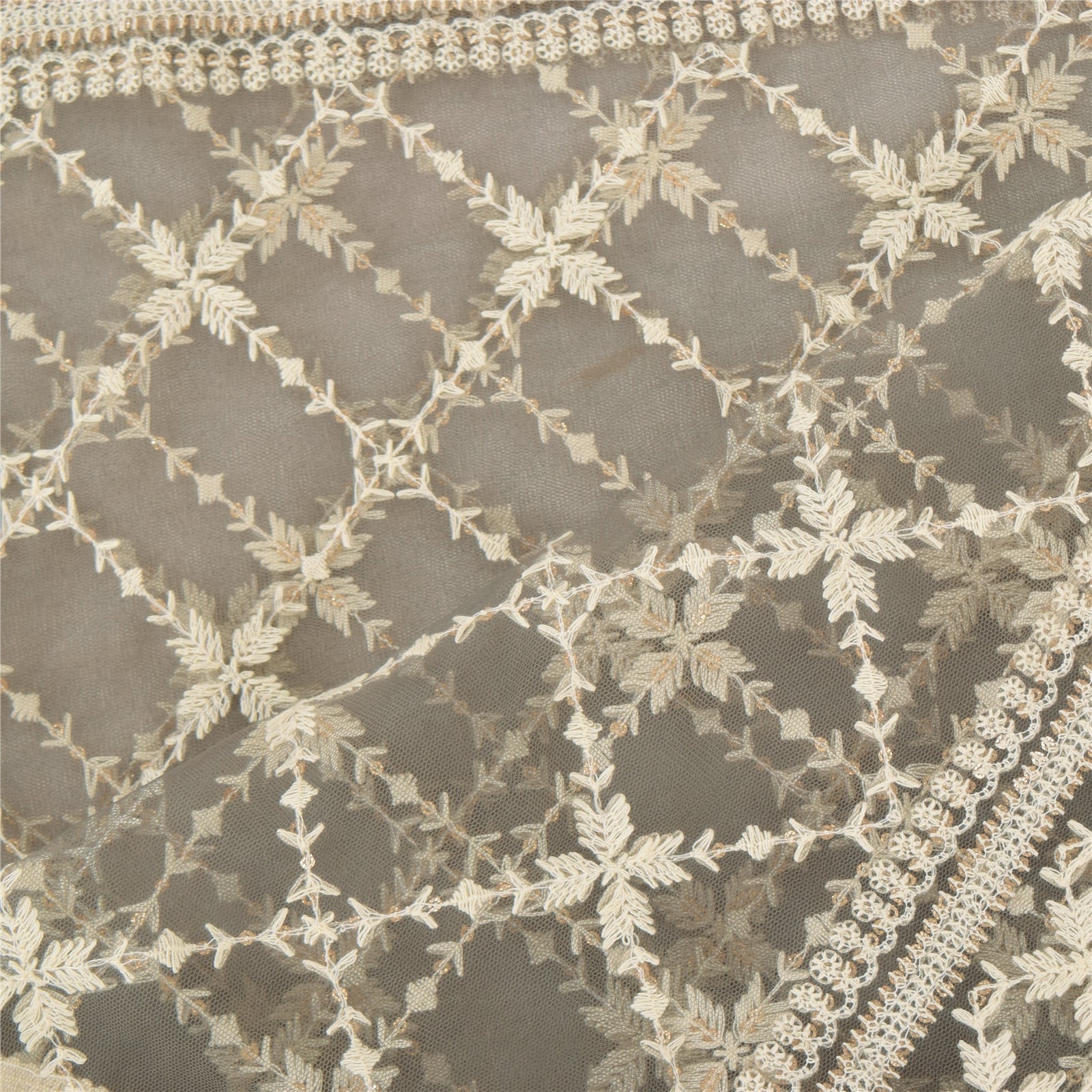 Sanskriti Vintage Gray Dupatta Long Stole Net Mesh Embroidered Premium Wrap Veil