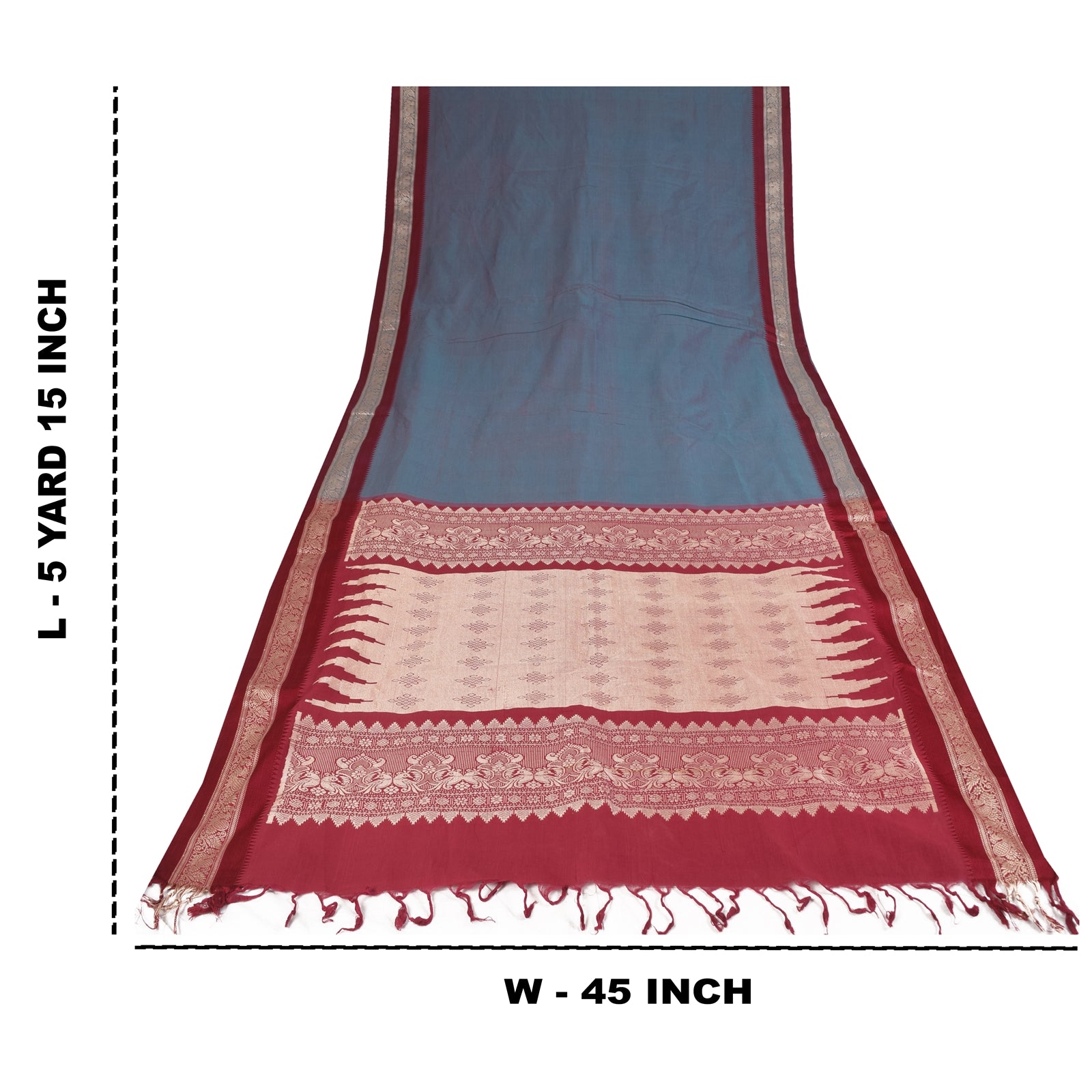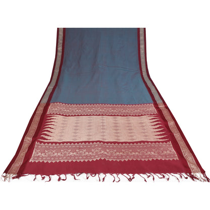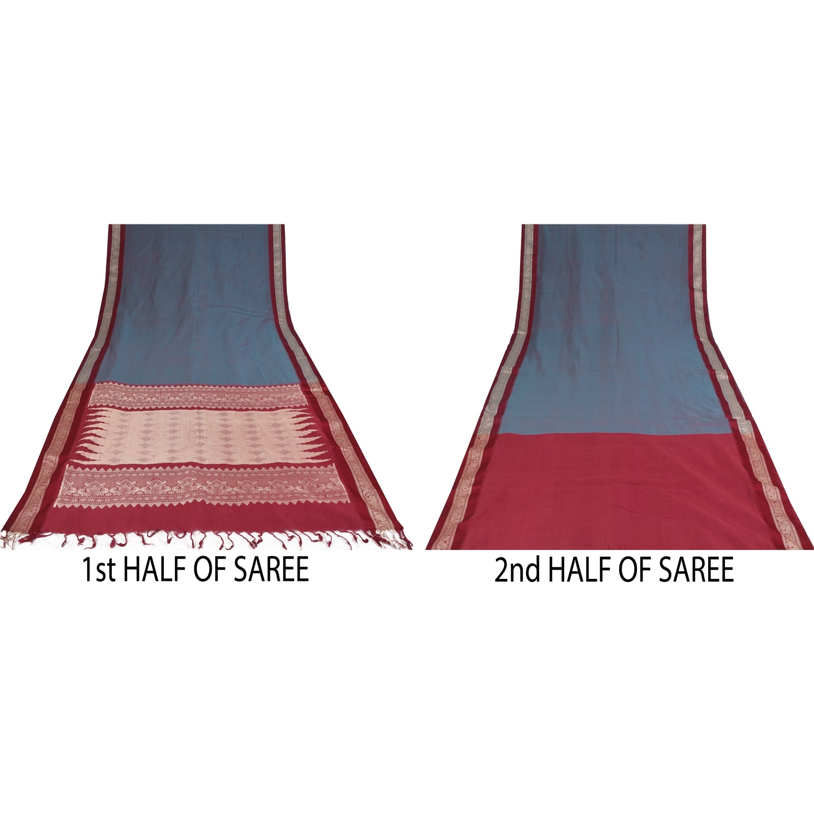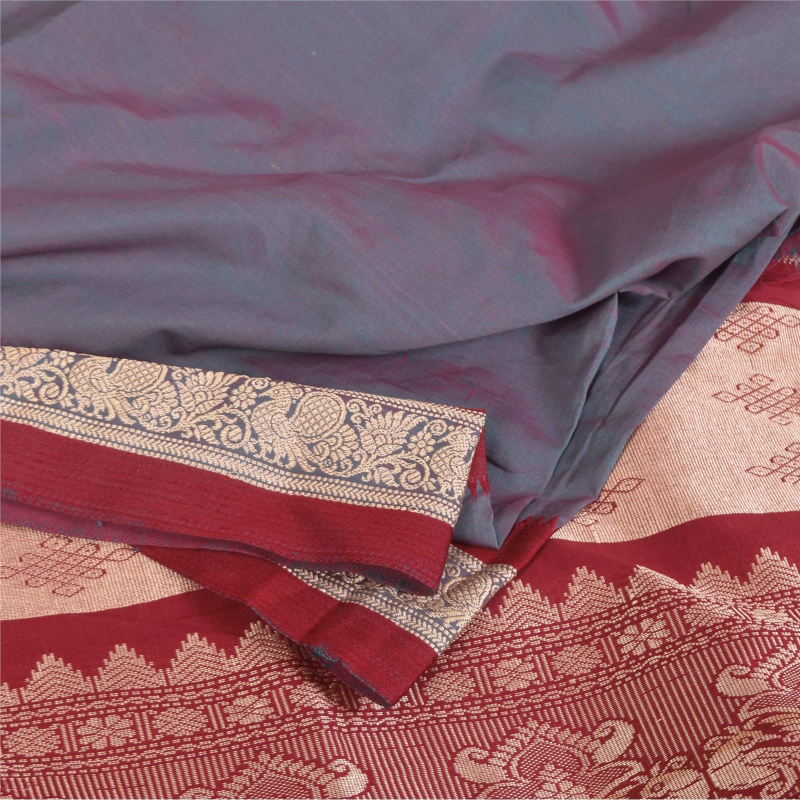 Sanskriti Vintage Gray Sarees Blend Cotton Woven Premium Sari 5+ yd Craft Sustainable Fabric