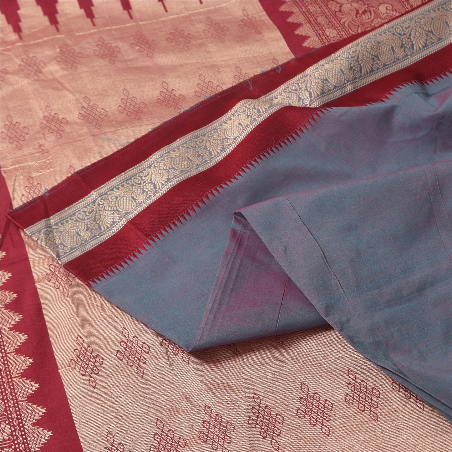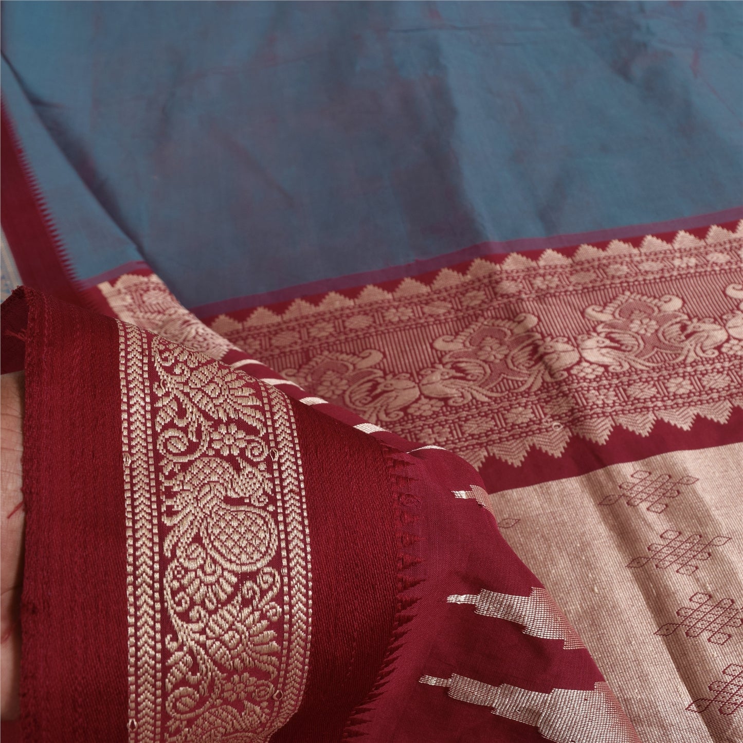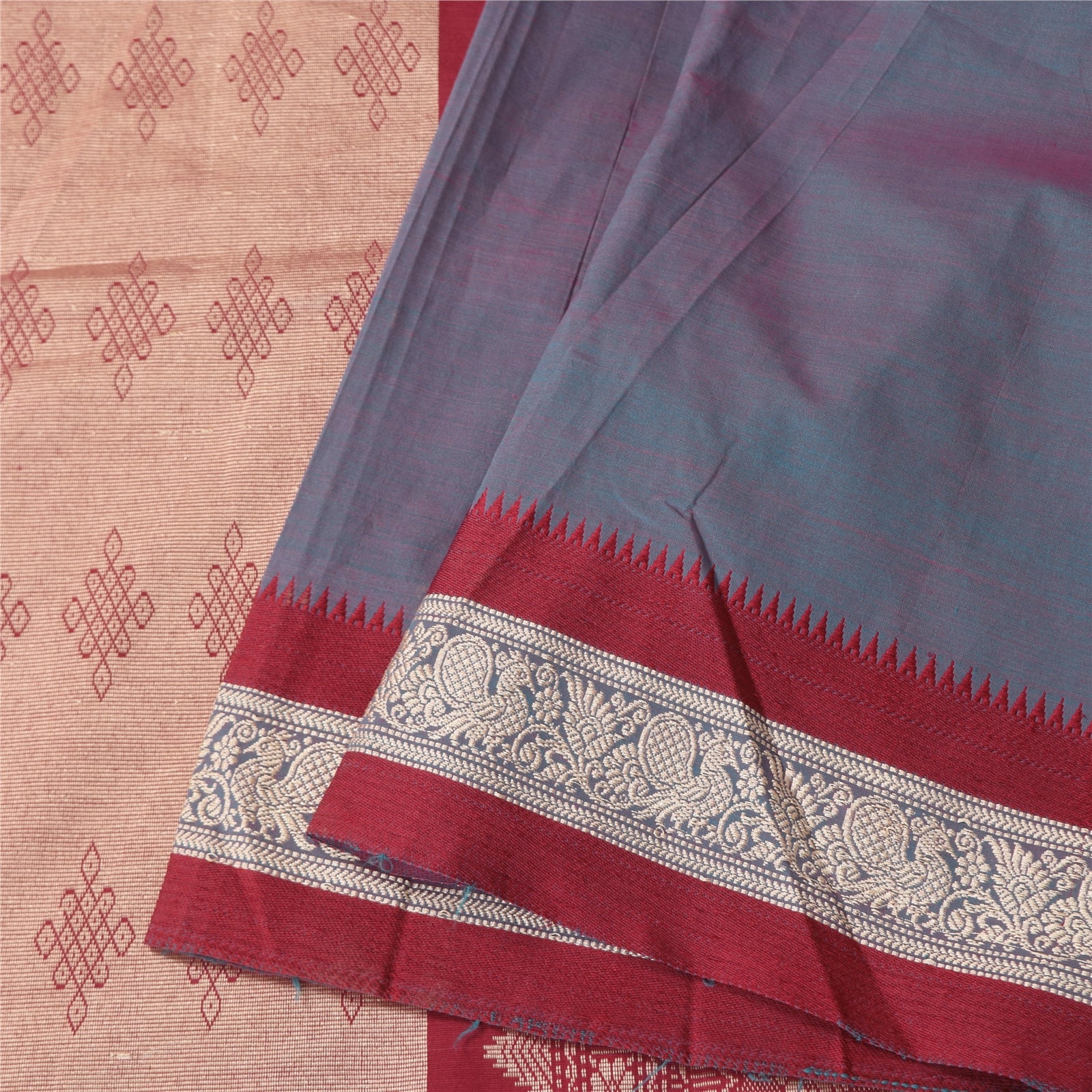Sanskriti Vintage Gray Sarees Blend Cotton Woven Premium Sari 5+ yd Craft Sustainable Fabric
