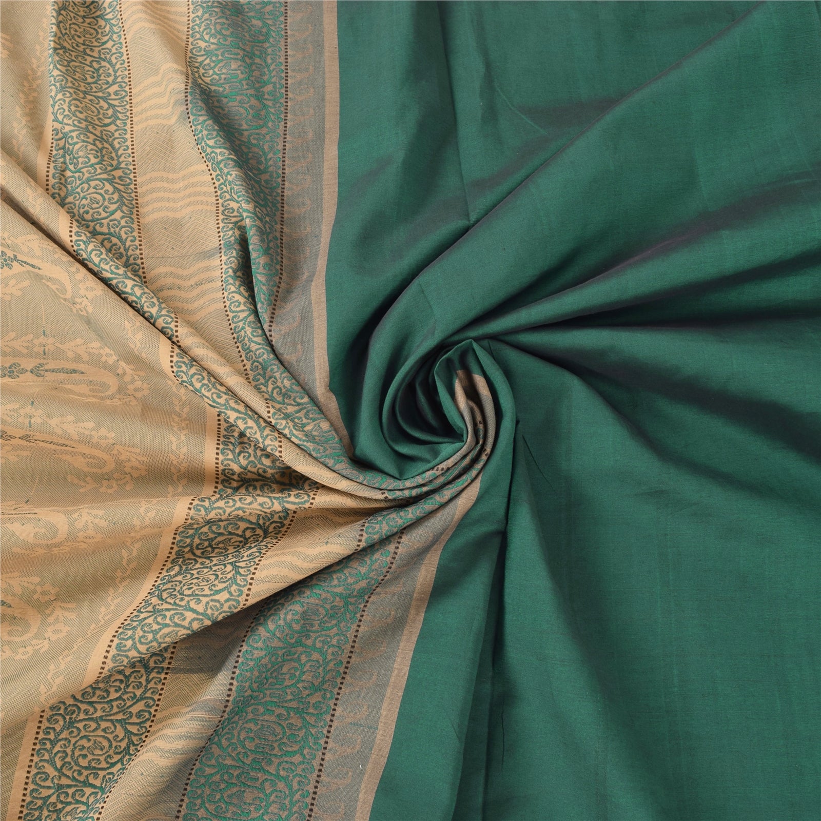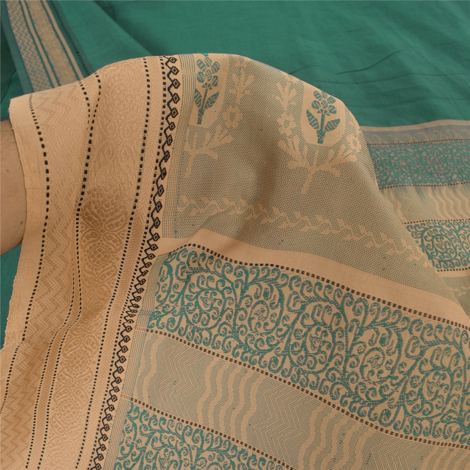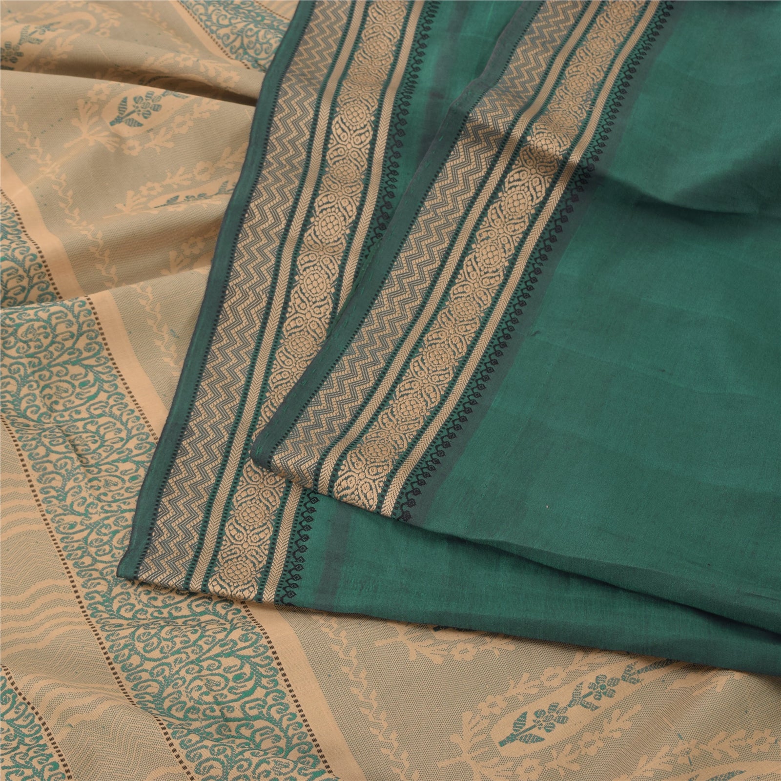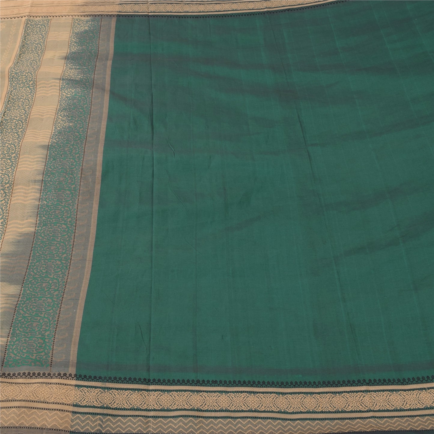 Sanskriti Vintage Green/Cream Sarees Pure Cotton Woven Ethnic Sari Craft Sustainable Fabric