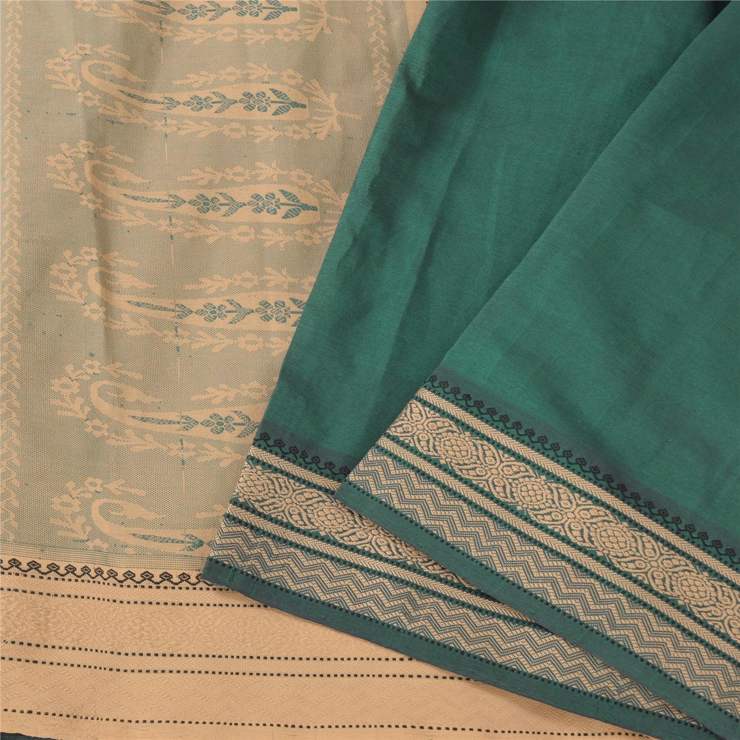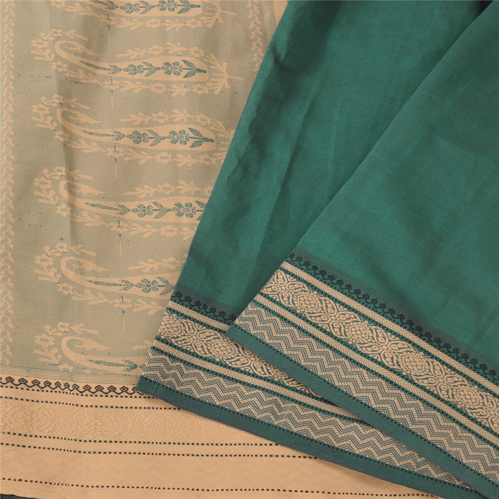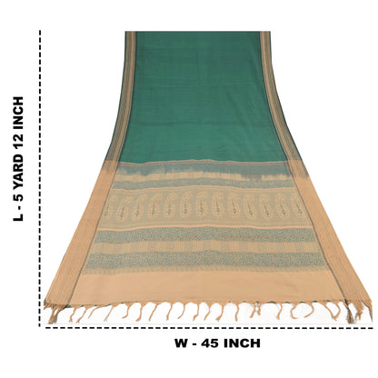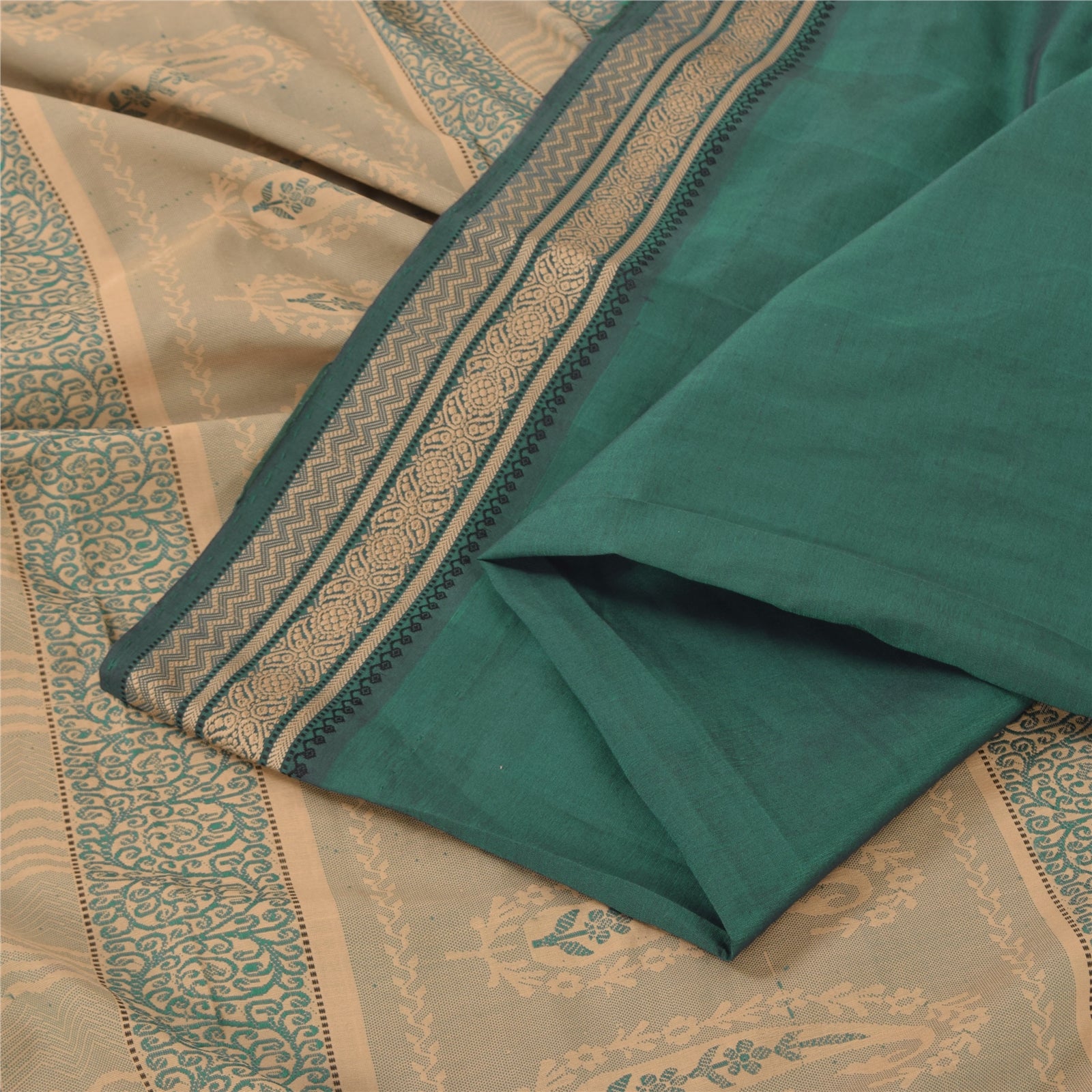 Sanskriti Vintage Green/Cream Sarees Pure Cotton Woven Ethnic Sari Craft Sustainable Fabric
