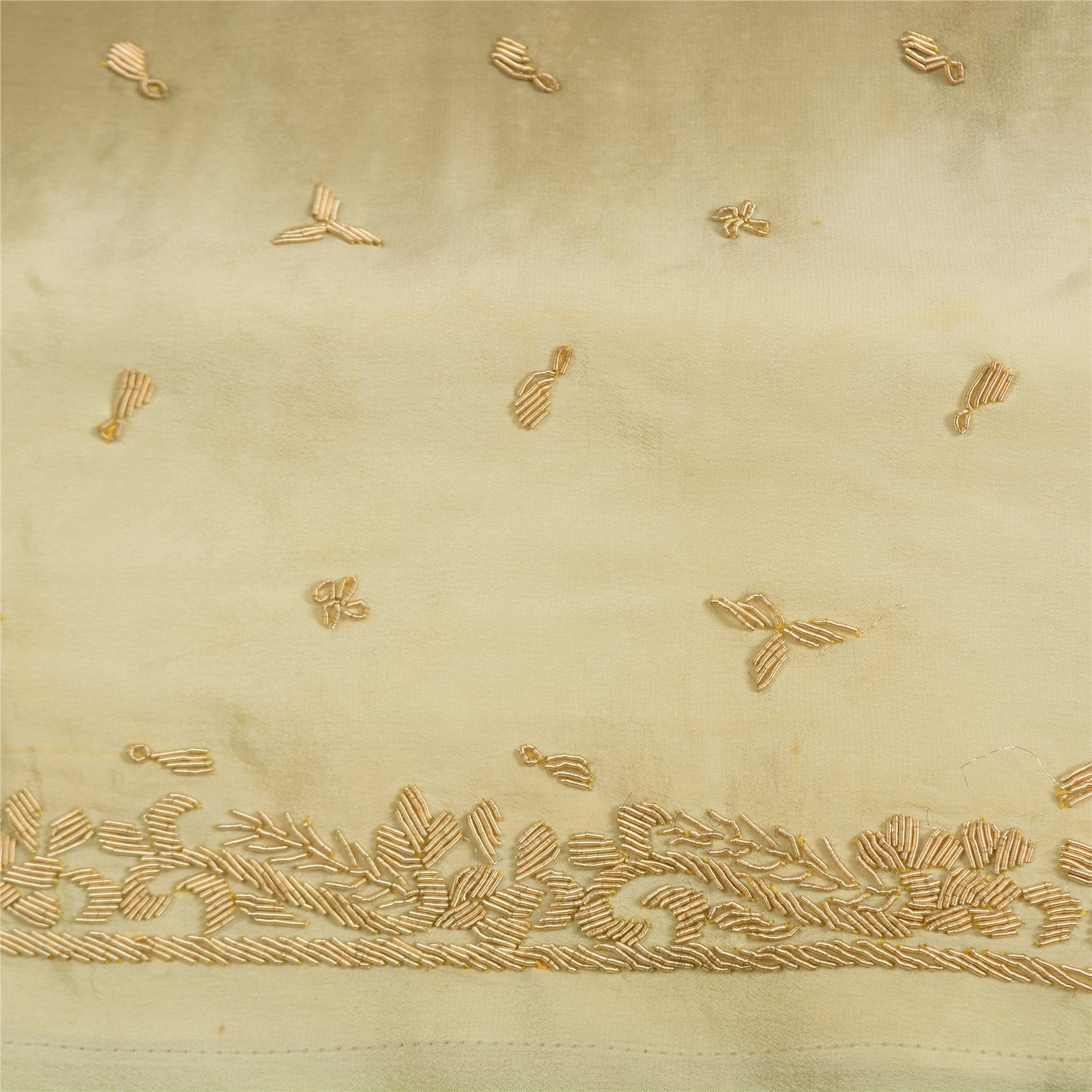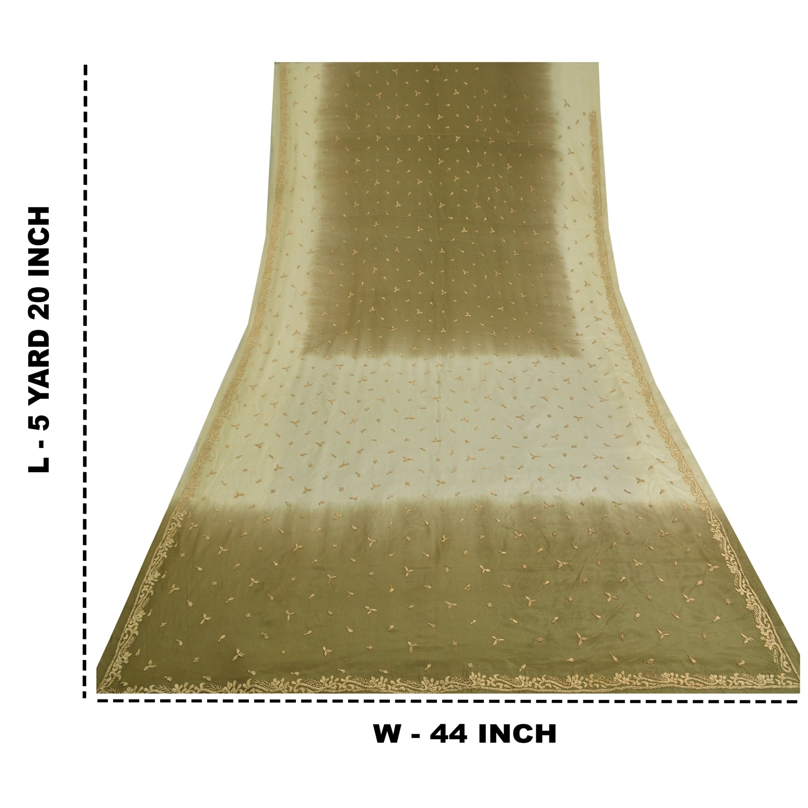 'THE ITEM COLOR OR SHADE MAY BE DARKER OR LIGHTER THAN THE PICTURE.' Beautiful shade of green & ivory colored pure crepe silk hand embroidered sari/Sustainable Fabric. Pallu & border has golden metallic zardozi work with floral design. The center of the saree has similar zardozi motifs. As the item is Vintage, some minor stains and defects are expected. This saree can be used for various crafting ideas too. Use it for dress designing, as a throw, as window dressing, upholstery, table linen and much more. Let your creative juices flow. 'International buyers please note: Import duties, taxes, and charges are not included in the item price or postage cost. These charges are the buyer's responsibility. Please check with your country's customs office to determine what these additional costs will be prior to bidding or buying. Buyer will pay custom duty/tax. It is calculated and charged differently by every country. As a seller I do not have any control over it. VAT or sales tax is calculated by the platform at the time of checkout. Customs charge is payable at the time of delivery.'