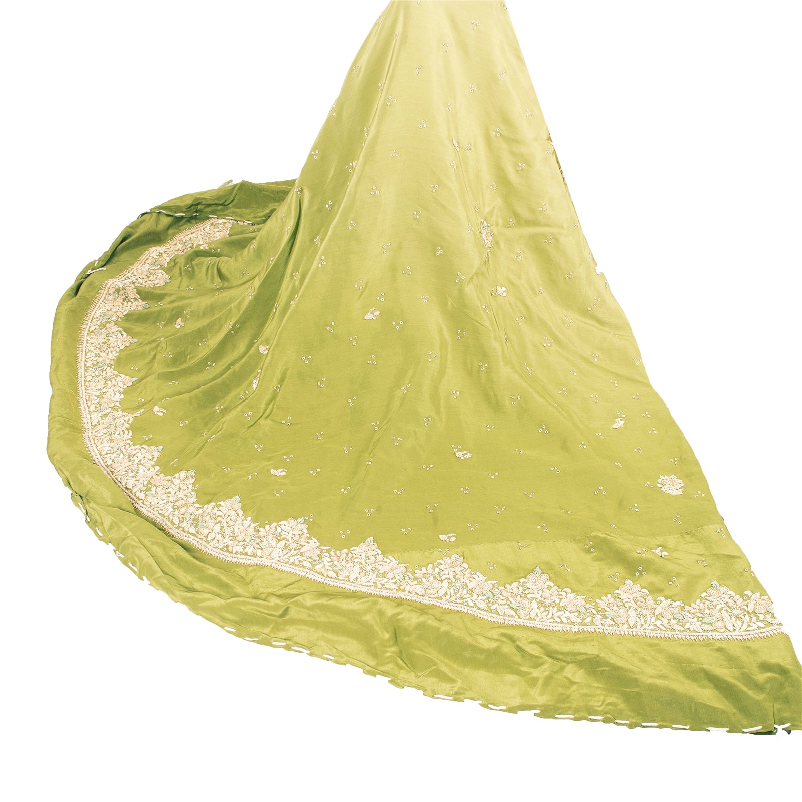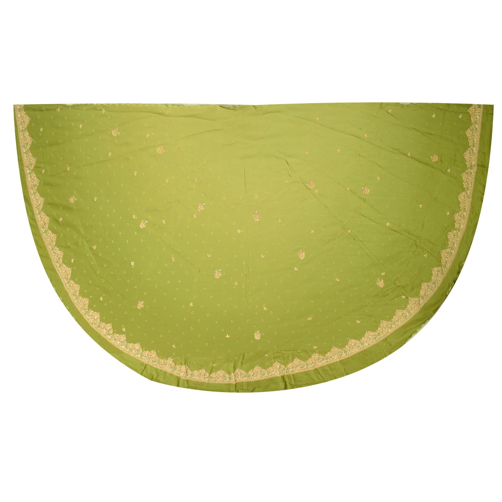 Sanskriti Vintage Green Long Unstitched Lehenga Pure Crepe Hand Embroidery Zari