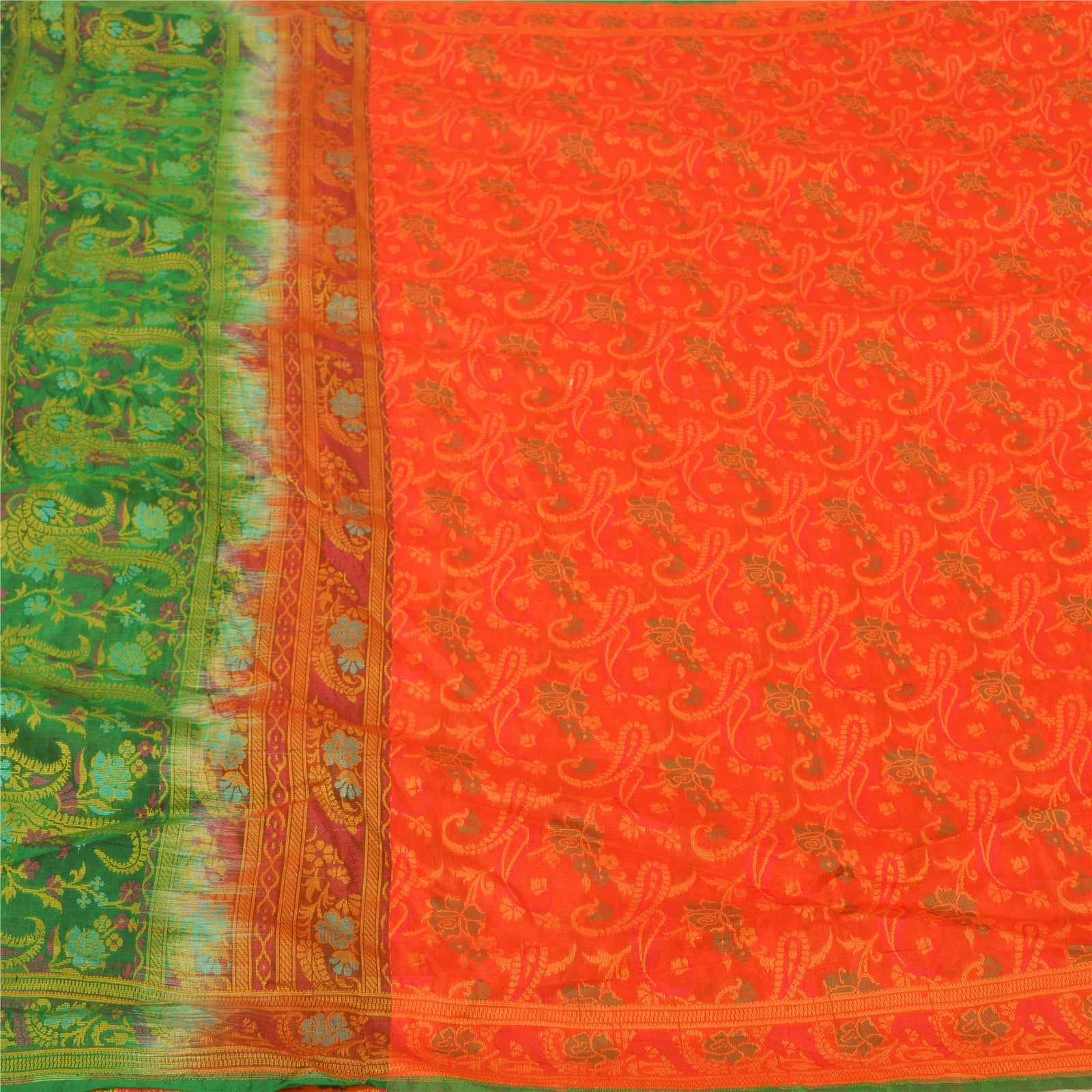 Sanskriti Vintage Green/Orange Indian Sarees Pure Silk Woven Premium Sari Sustainable Fabric