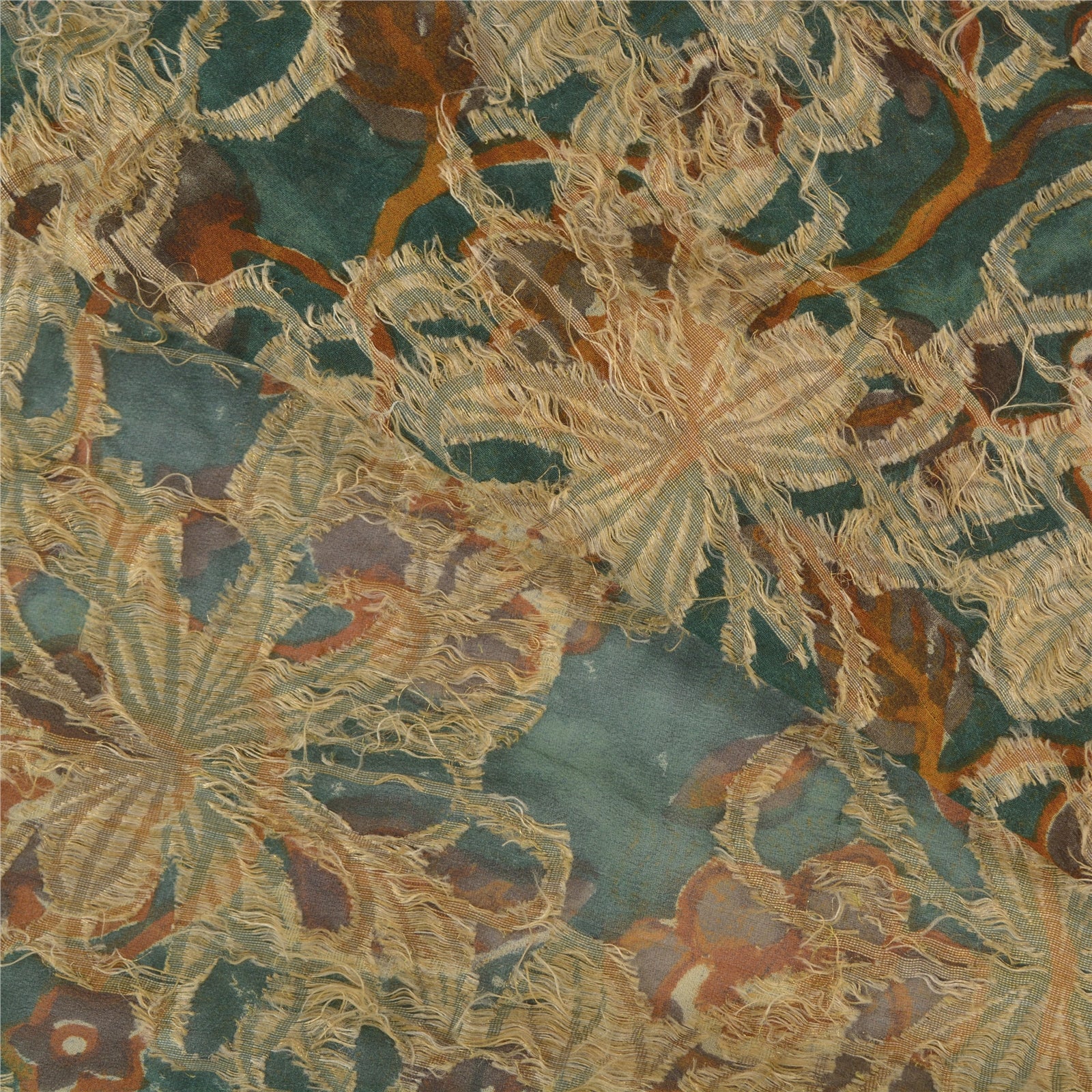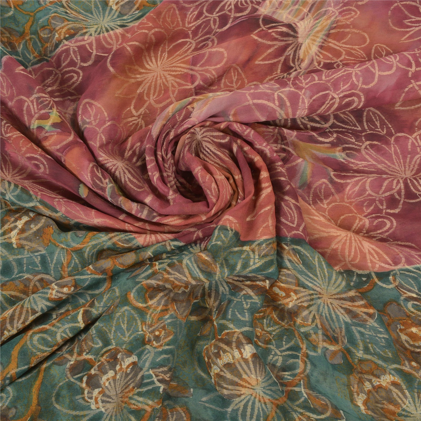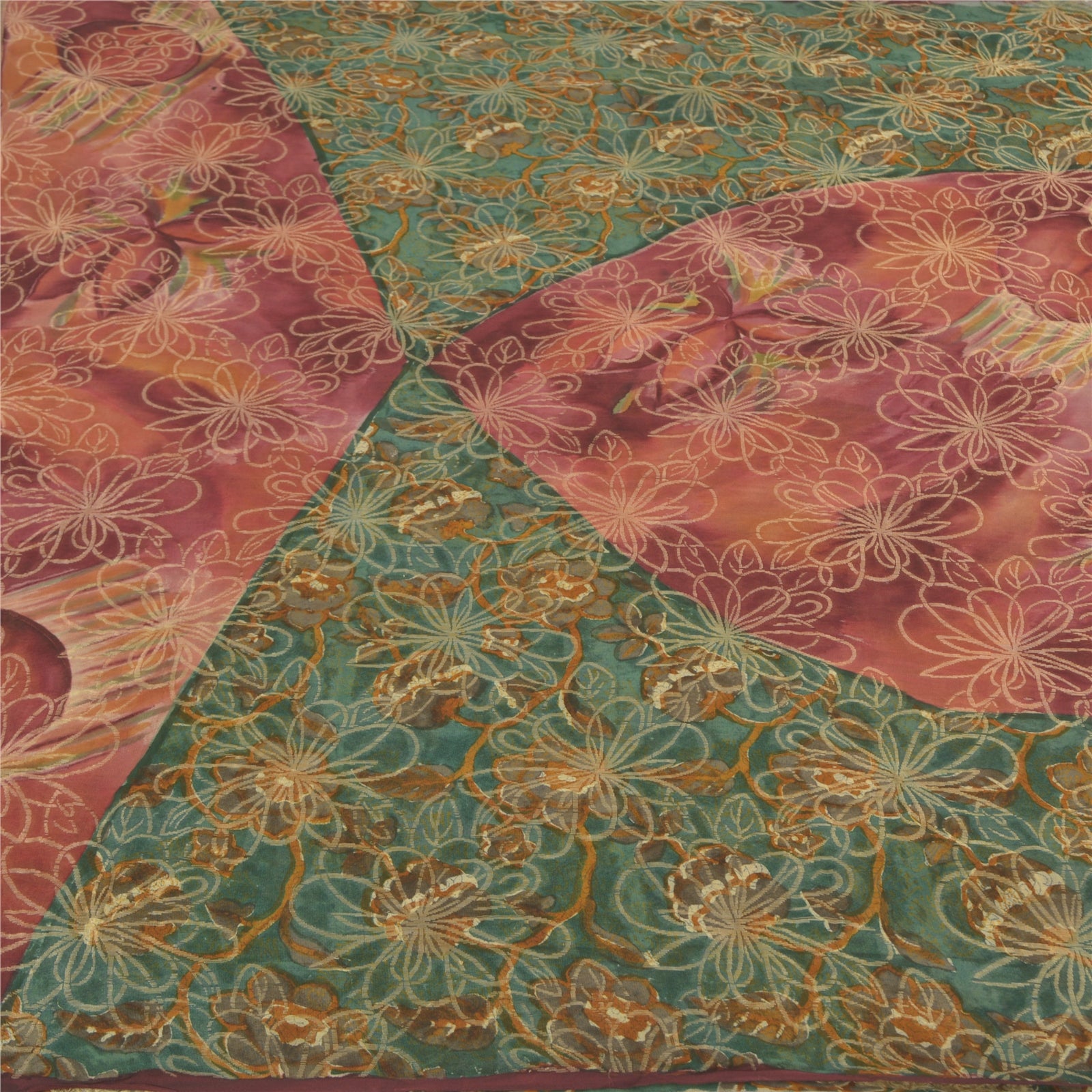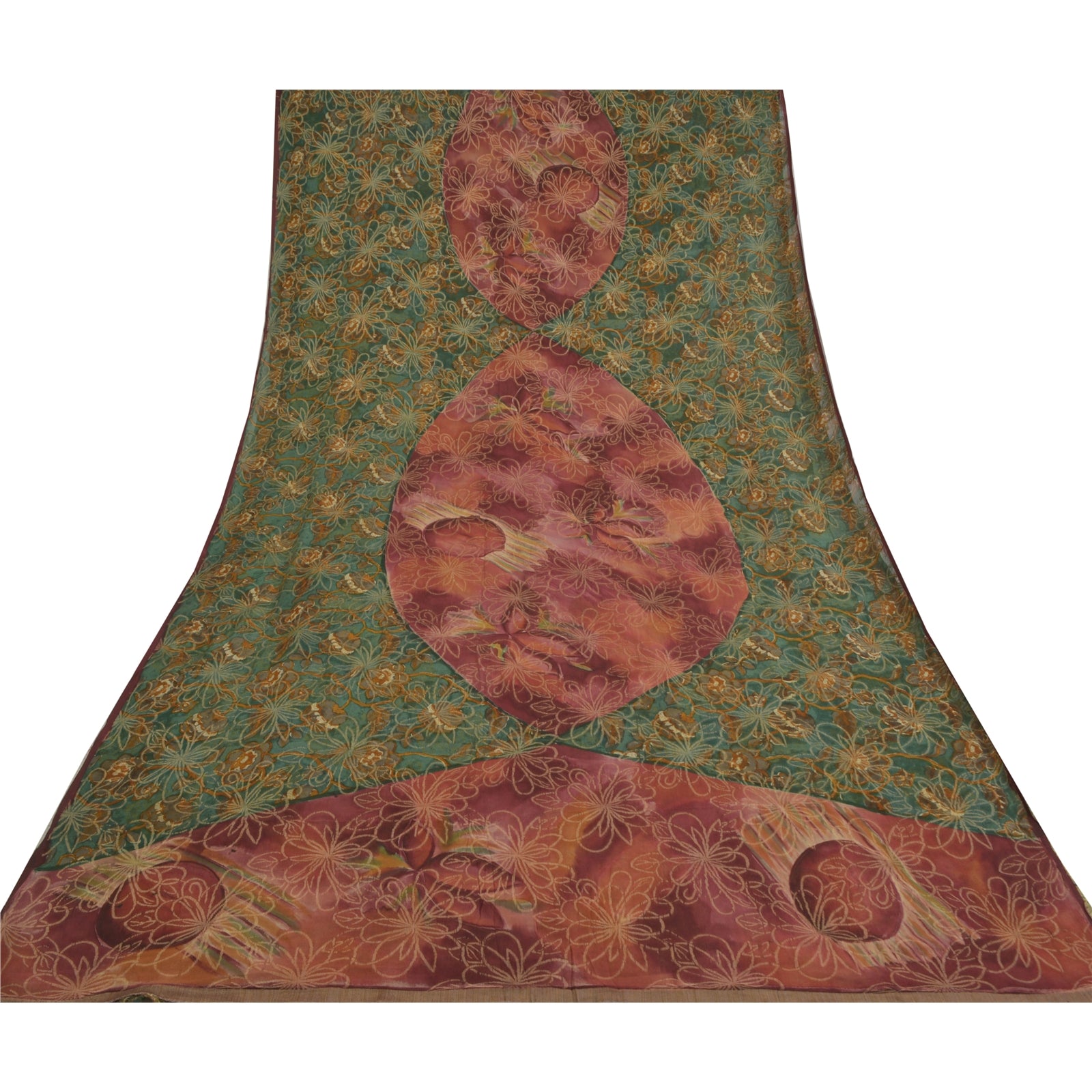 Beautiful green & shade of red colored pure georgette silk hand-woven sari. Pallu & Border has floral pattern with cream woven work. The center of the saree has similar woven floral pattern. This saree can be used for various crafting ideas too. Use it for dress designing, as a throw, as window dressing, upholstery, table linen and much more. Let your creative juices flow.