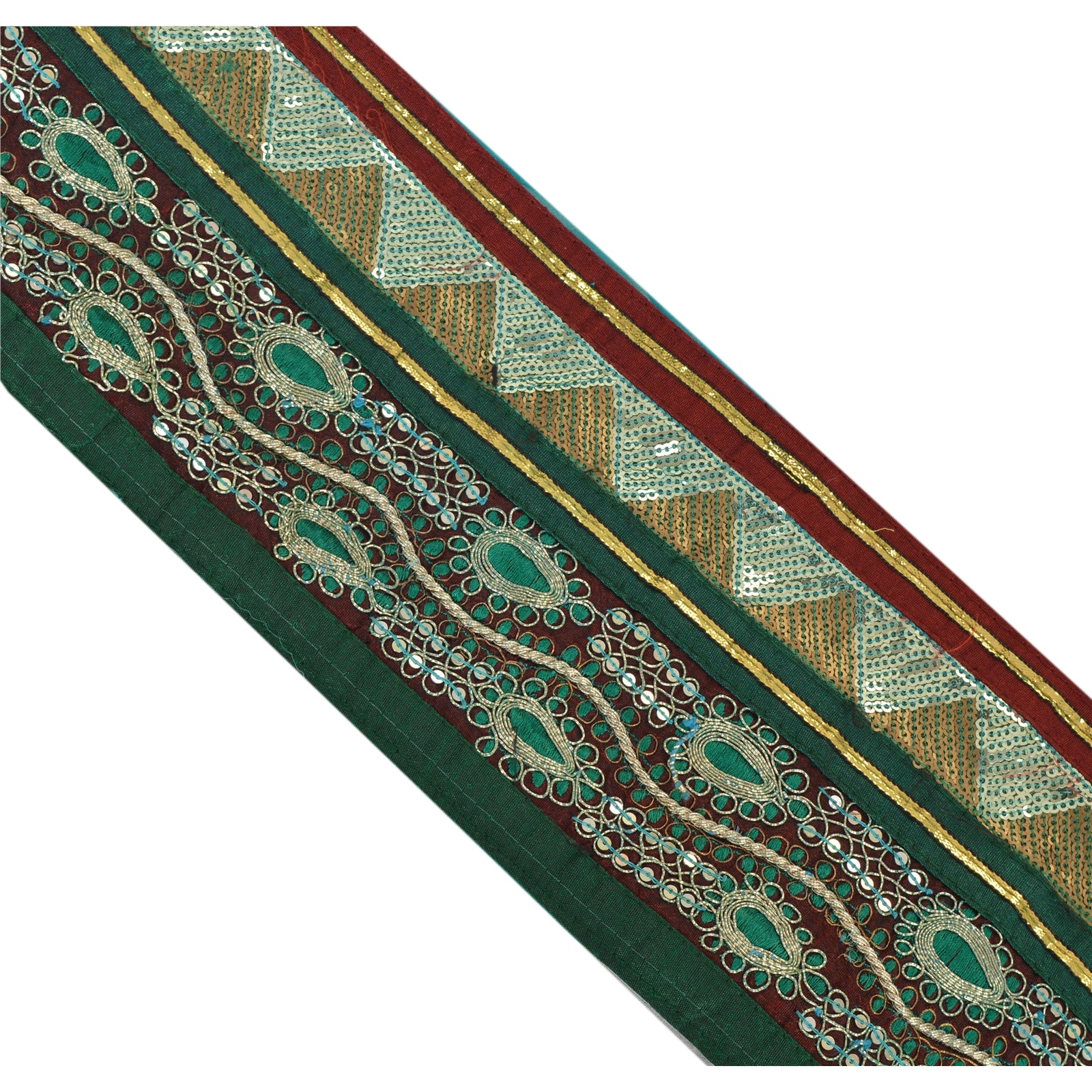 Sanskriti Vintage Green Sari Border Hand Beaded Indian Craft Trim 1 Yd Lace