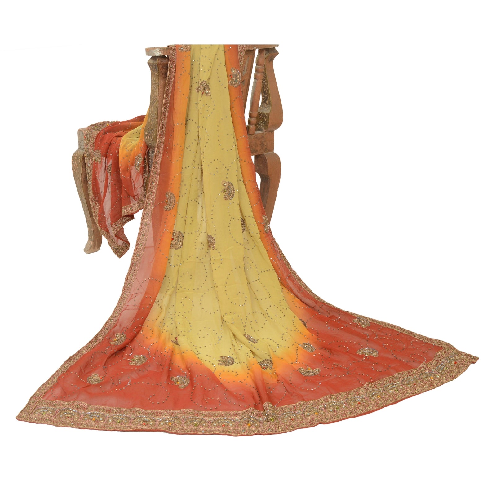 'THE ITEM COLOR OR SHADE MAY BE DARKER OR LIGHTER THAN THE PICTURE.' An exquisite hand beaded dupatta difficult to express in words. Base fabric is 100% pure georgette silk in green & dark red color. On borders is adorned with pure metallic zari/zardozi, brown beads, blue/golden & multi color rhinestone work is highlighting the look of the dupatta. All over the dupatta similar work with veil design. Dupatta has orange/brown color on 4 sides of border look wonderful. The quality of zari work is amazing, its a pure metallic zari. International buyers please note: Import duties, taxes, and charges are not included in the item price or postage cost. These charges are the buyer's responsibility. Please check with your country's customs office to determine what these additional costs will be prior to bidding or buying. Buyer will pay custom duty/tax. It is calculated and charged differently by every country. As a seller I do not have any control over it.VAT or sales tax is calculated by the platform at the time of checkout. Customs charge is payable at the time of delivery.' HD-5234