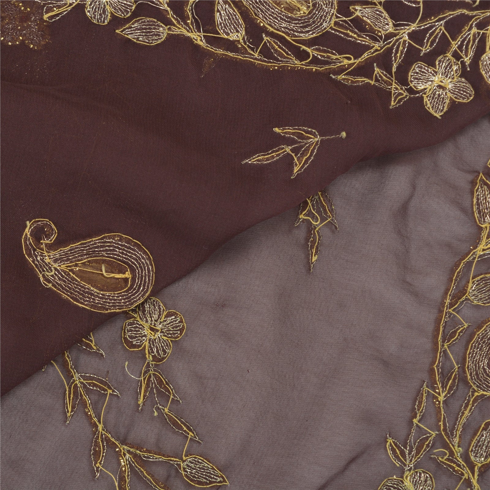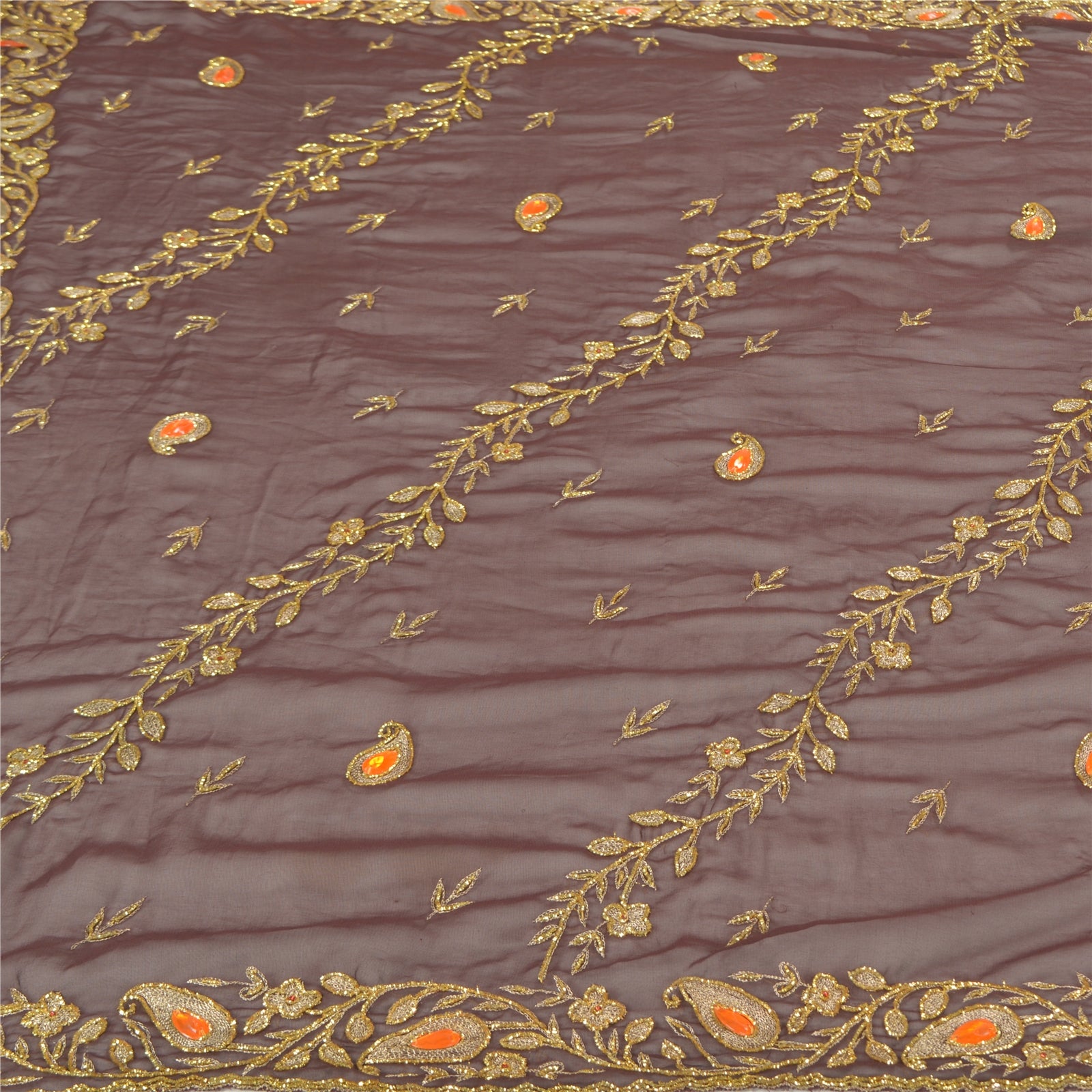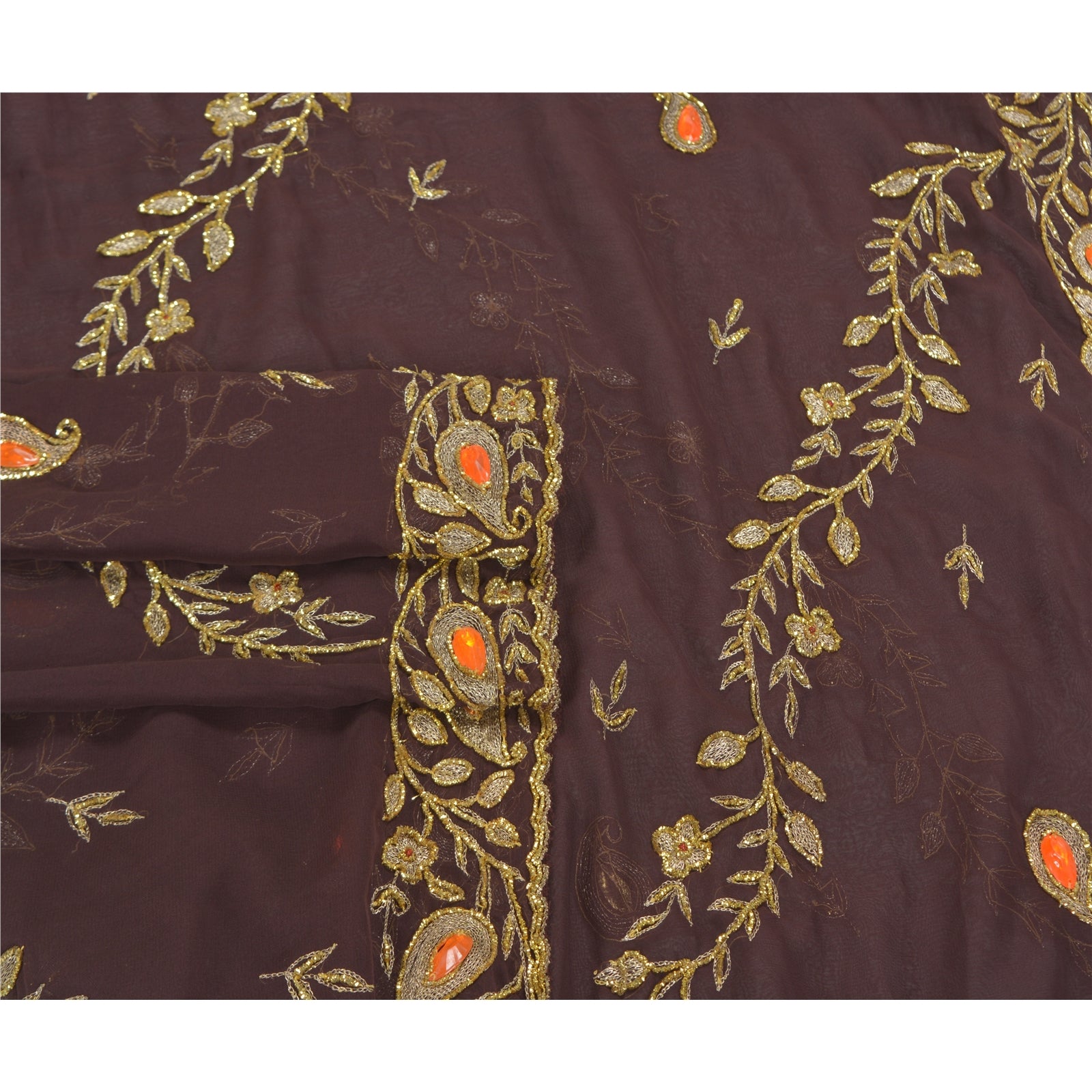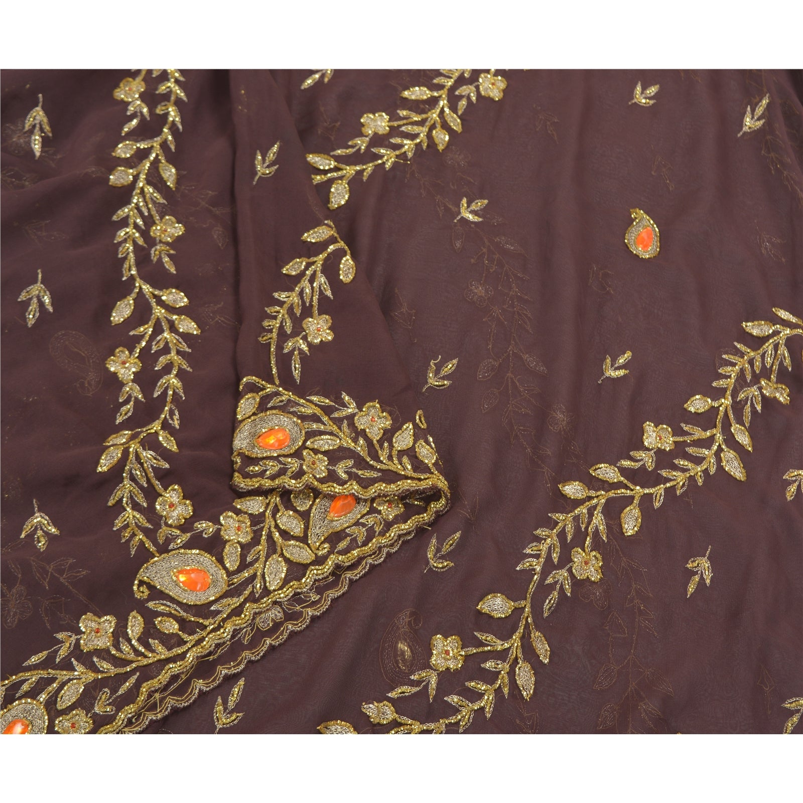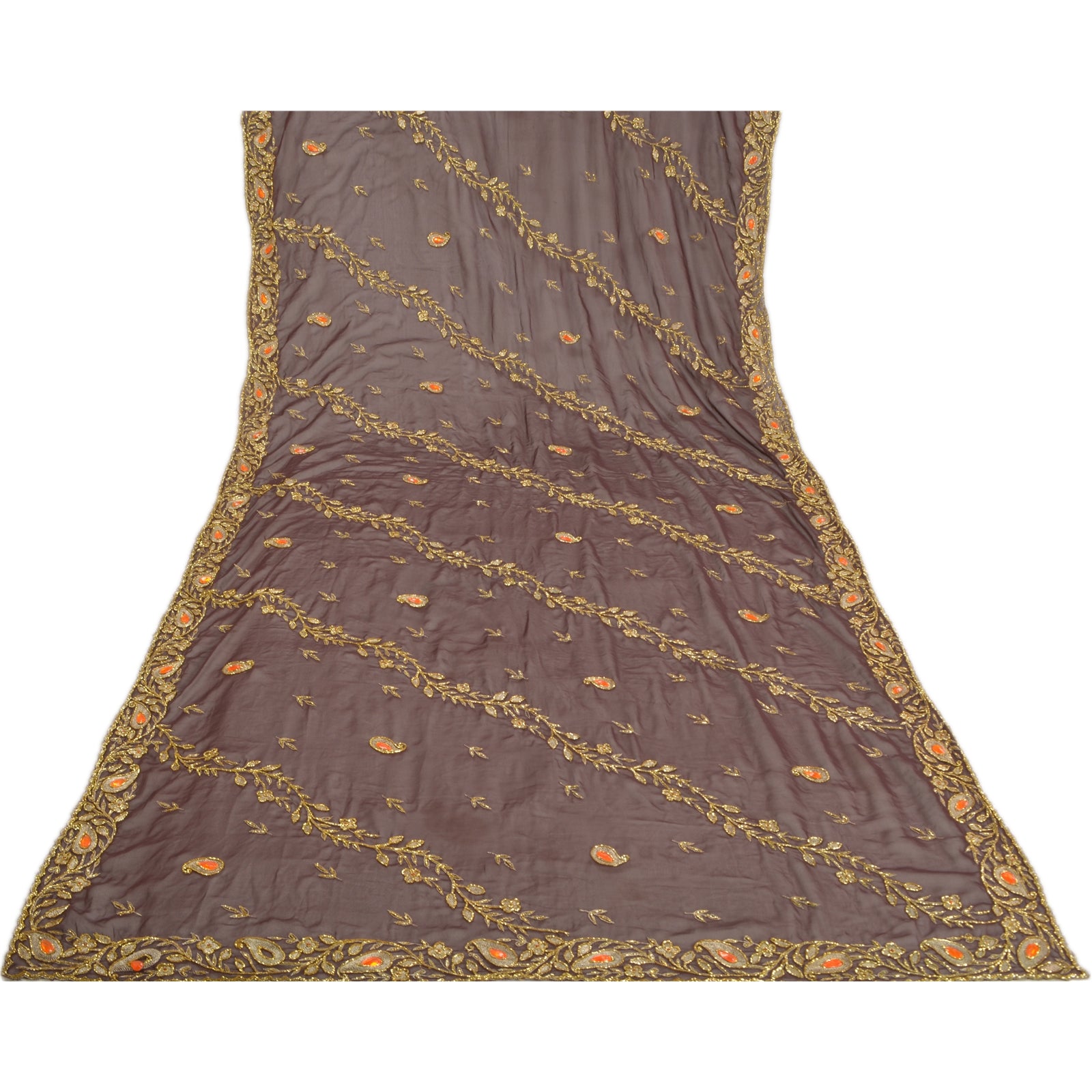 One Of A Kind Item. Stunning Very Heavy Dupatta 100% Pure Chiffon Silk Hand Embroidered Dupatta/Stole In Shade Of Brown Color Sustainable Fabric. The center part of the dupatta has floral & paisley design with dabka work. Border feature is floral & paisley design embellished with metallic golden zari/dabka work, red glass beads, orange rhinestones work is main highlight of the dupatta. Rhinestone work is giving a fabulous look to the dupatta. Awesome one !!! For USA buyers - Single item ships via registered air mail, buy 1 more to get FedEx.